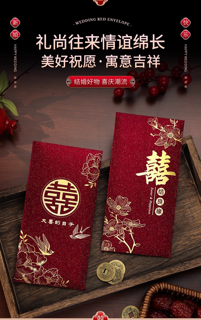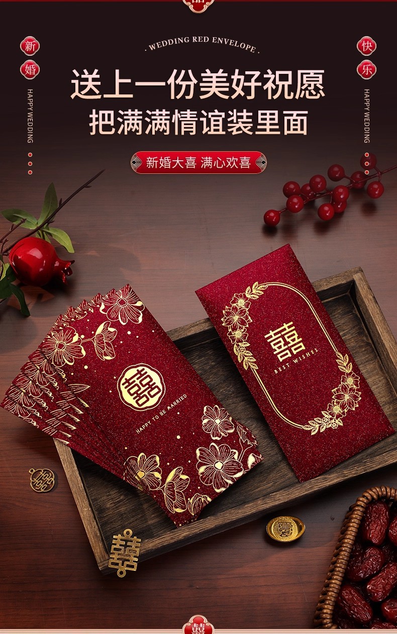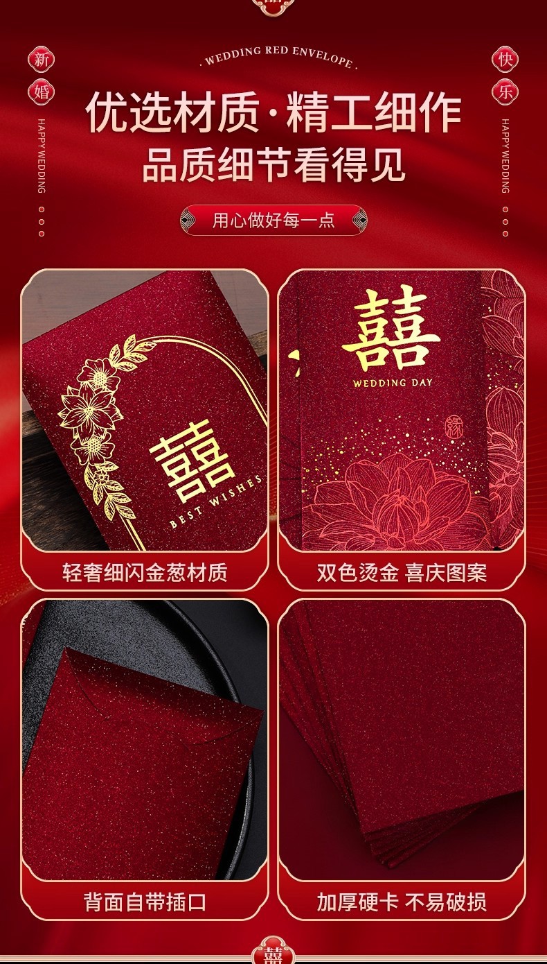 2026新款千元磨砂烫金结婚红包金葱红包袋创意新年压岁红包袋批发