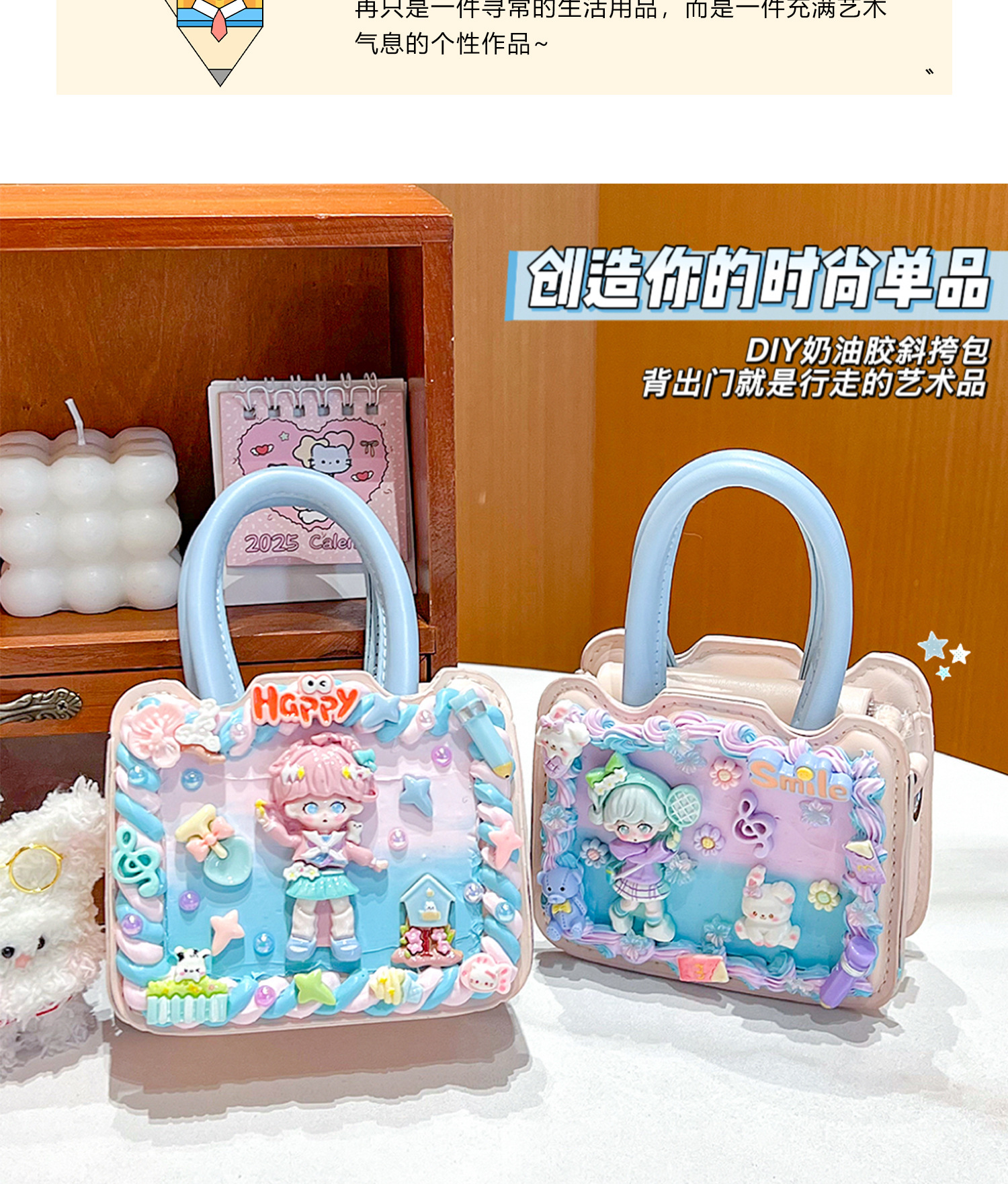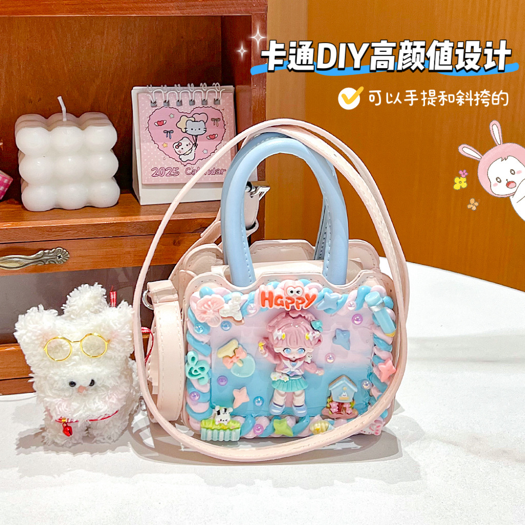 儿童奶油胶diy手提斜挎果冻包手工材料包女孩收纳小包包益智玩具