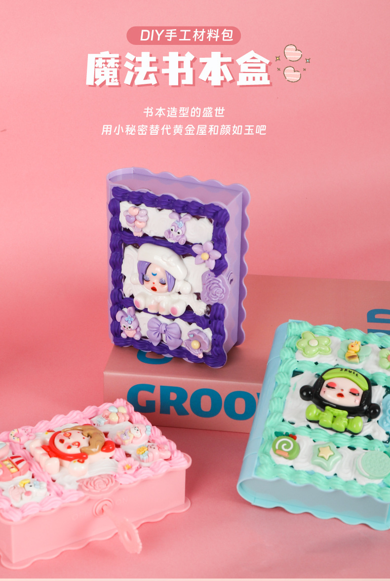魔法书本造型带锁饰品收纳盒 女孩手工DIY益智桌面文具整理百宝箱
