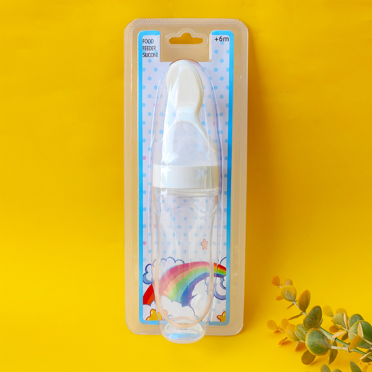 英文纸卡装宝宝辅食奶瓶米糊瓶挤压勺婴儿喂养勺吸盘米糊喂养奶瓶