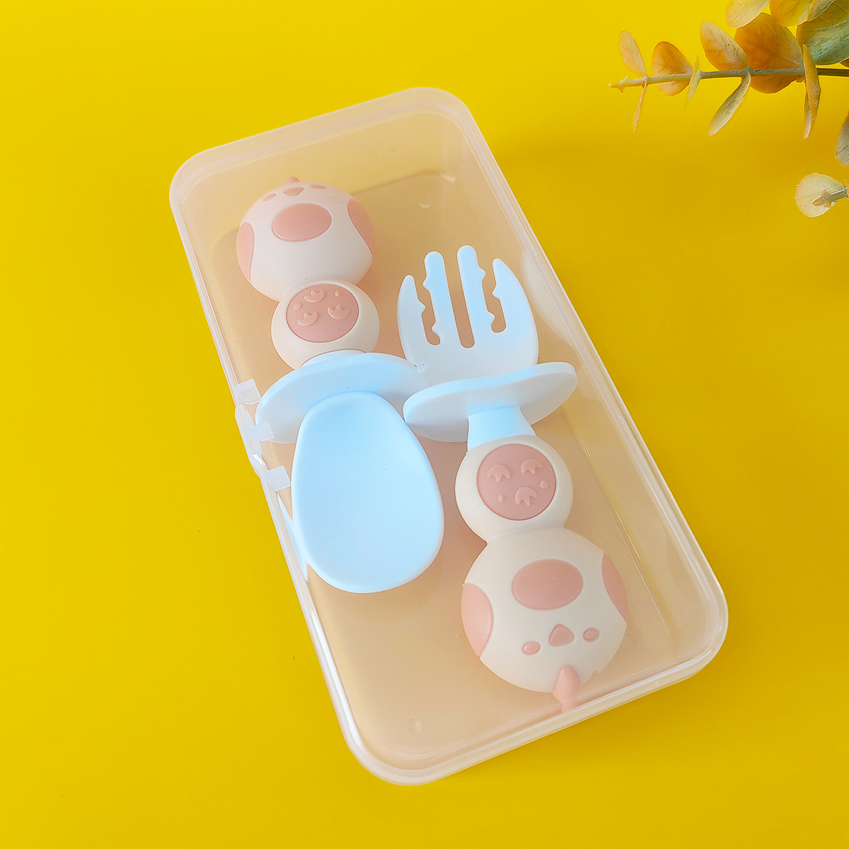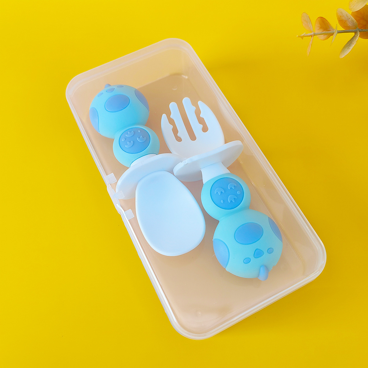 婴儿叉勺盒装学习勺吃饭训练叉勺宝宝自主进食辅食勺双色短柄叉勺