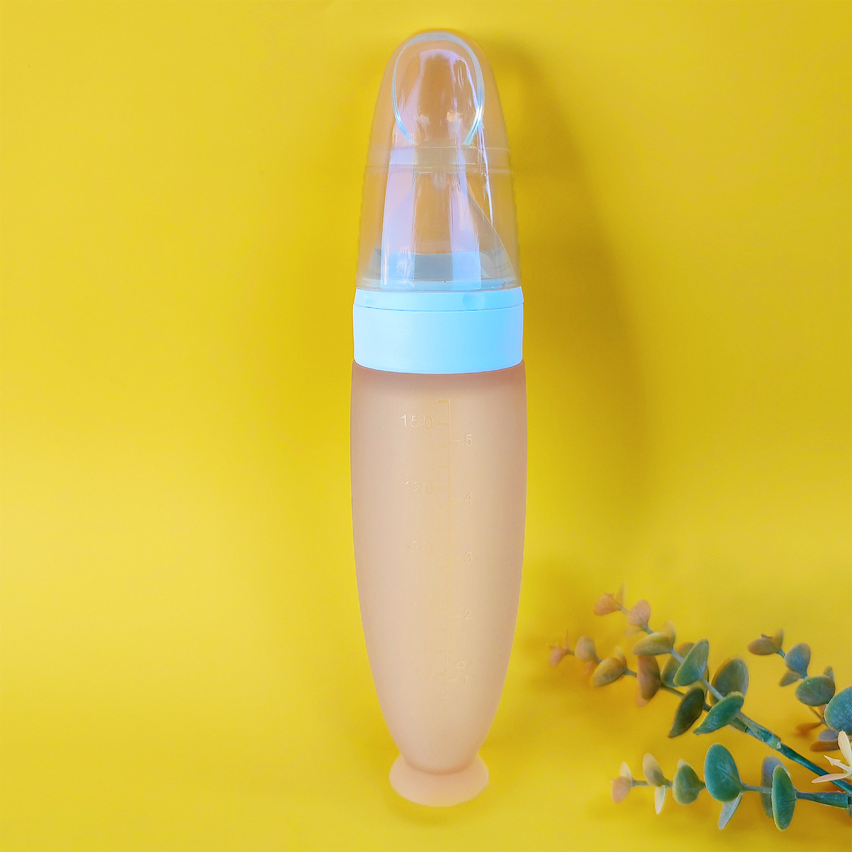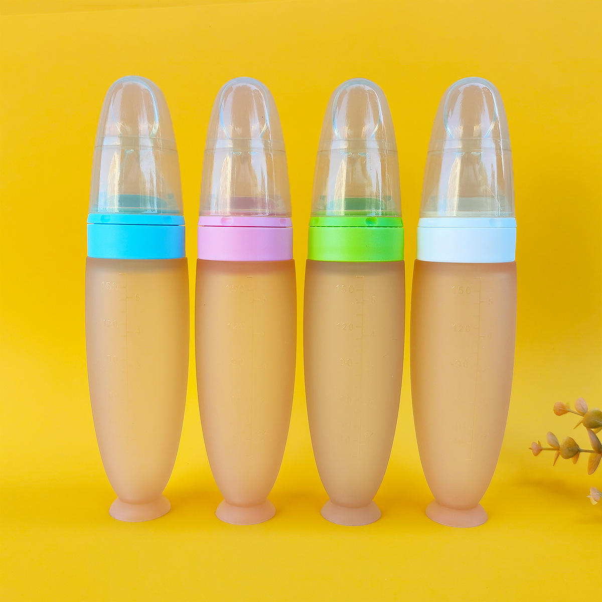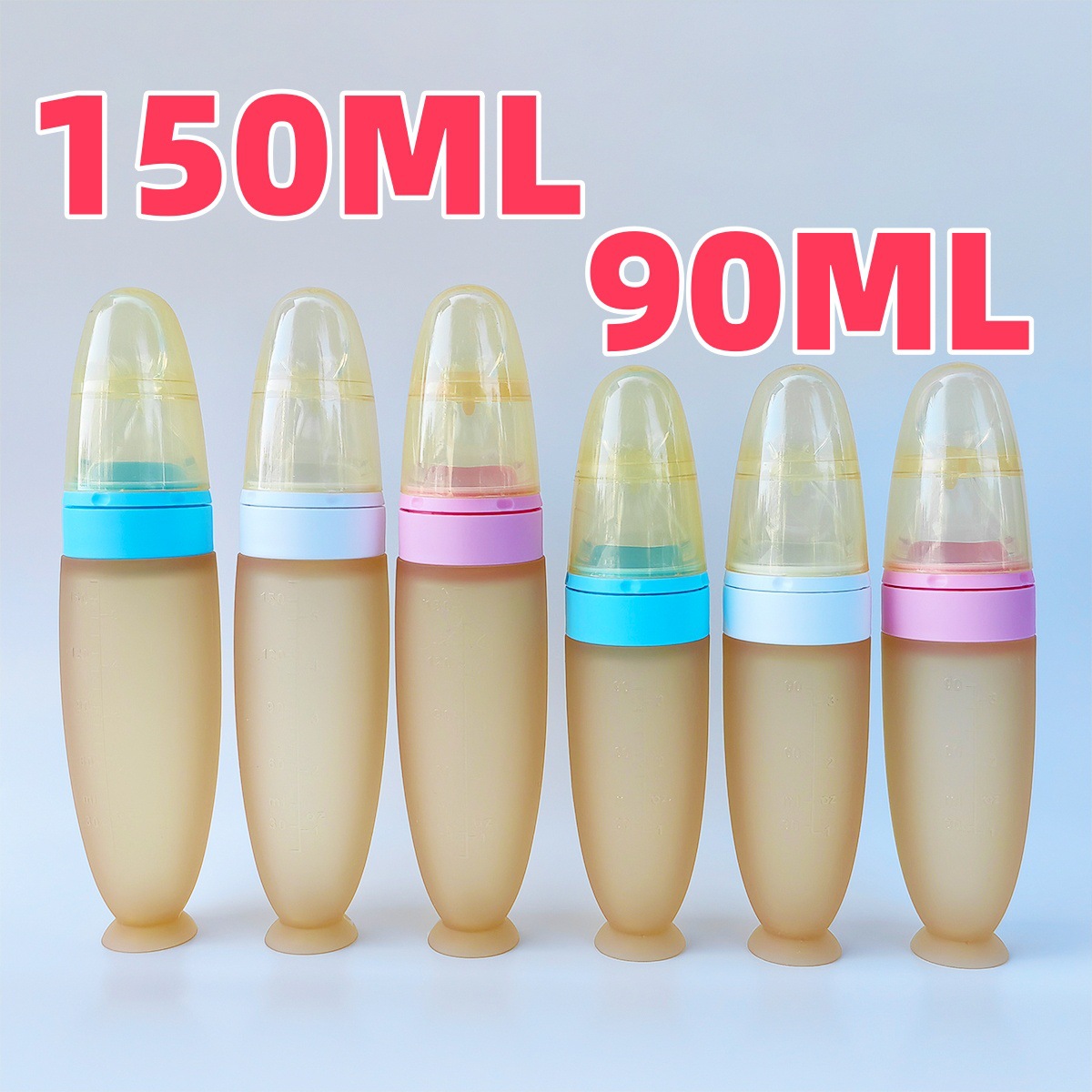 150ML婴幼儿米糊瓶硅胶软勺挤压式果汁瓶辅食勺吸盘硅胶米粉奶瓶