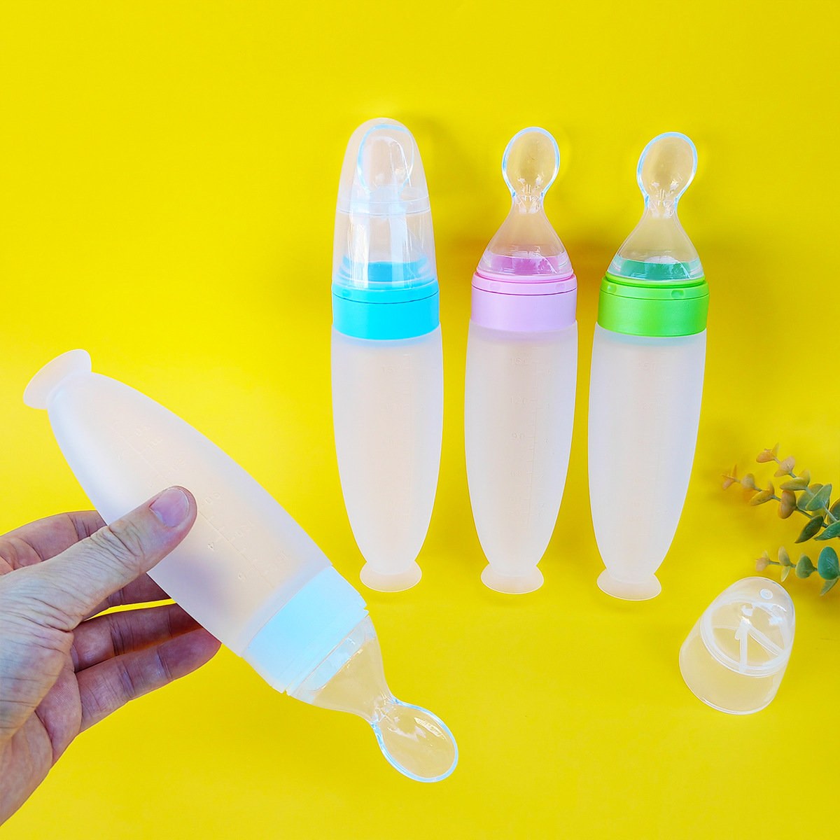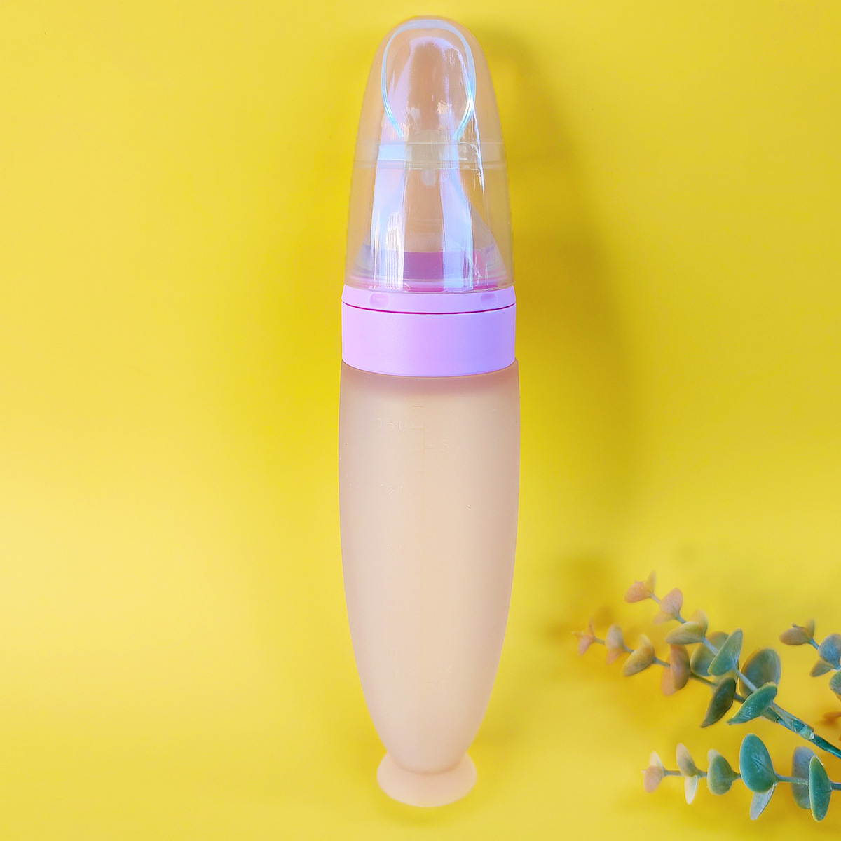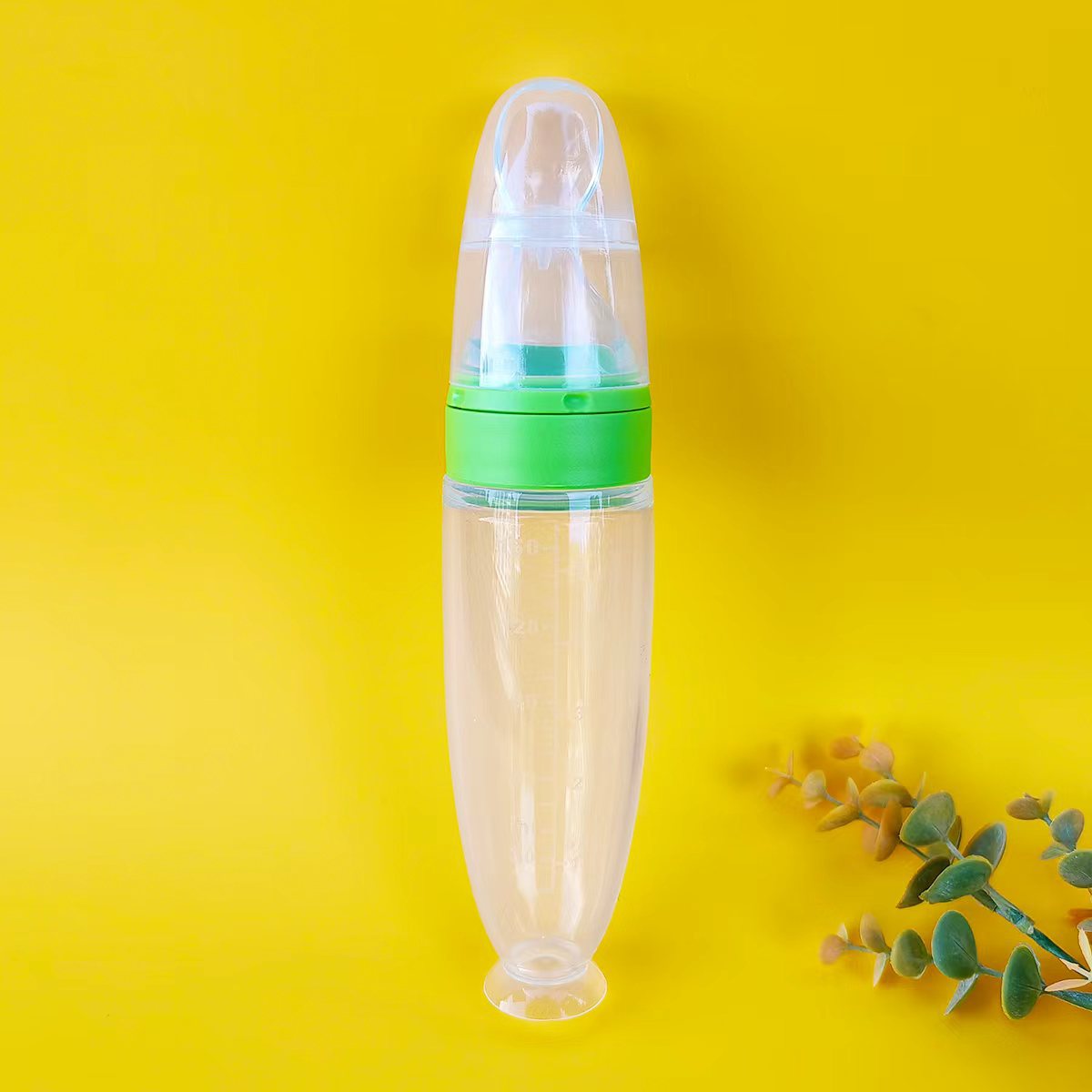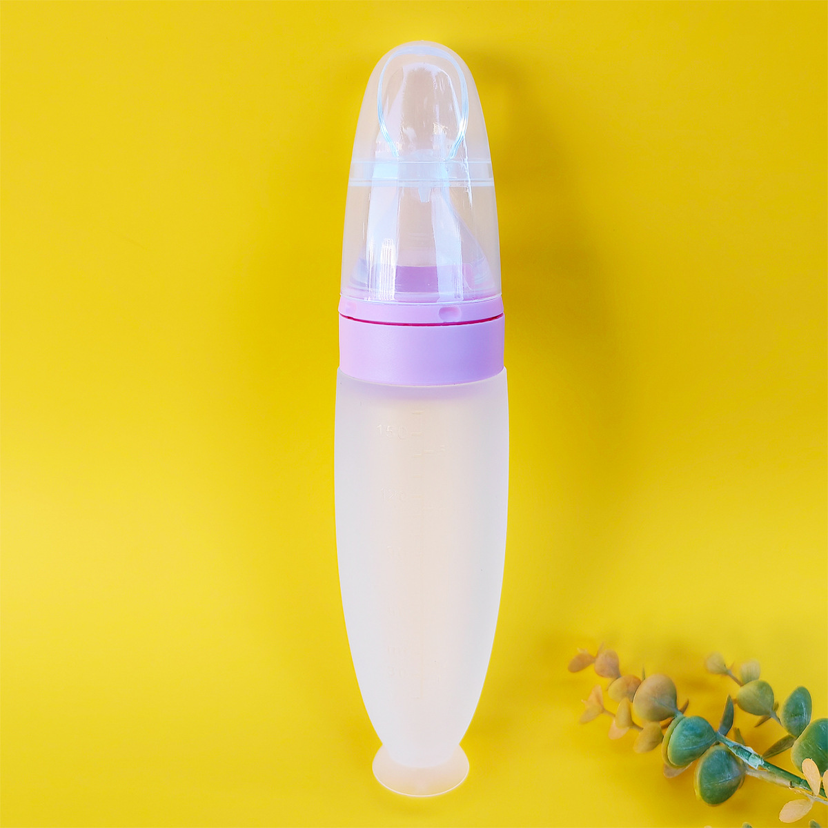 150ML婴幼儿米糊瓶硅胶软勺挤压式果汁瓶辅食勺吸盘硅胶米粉奶瓶