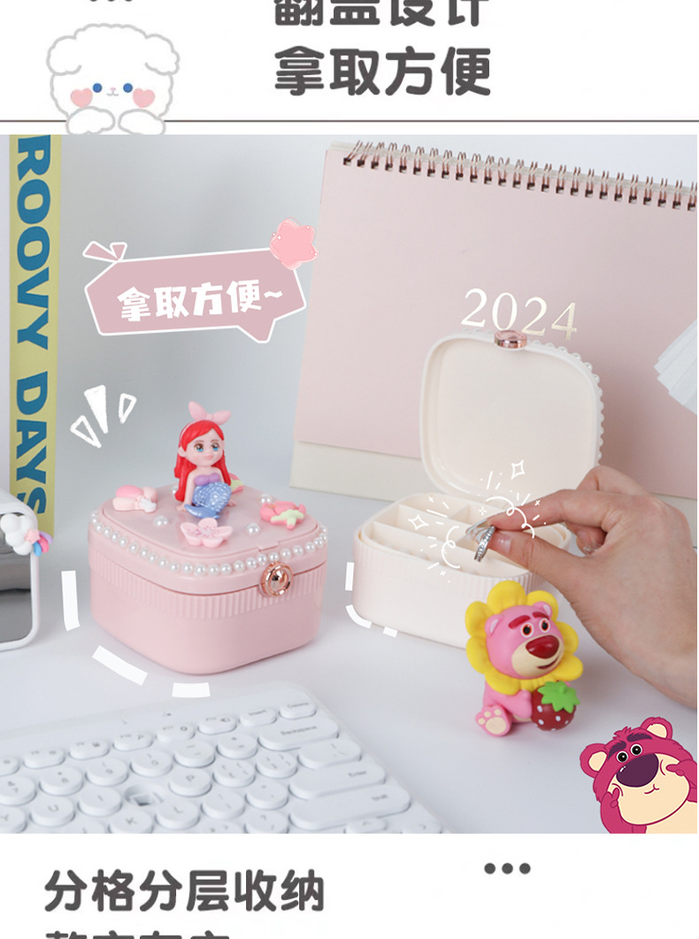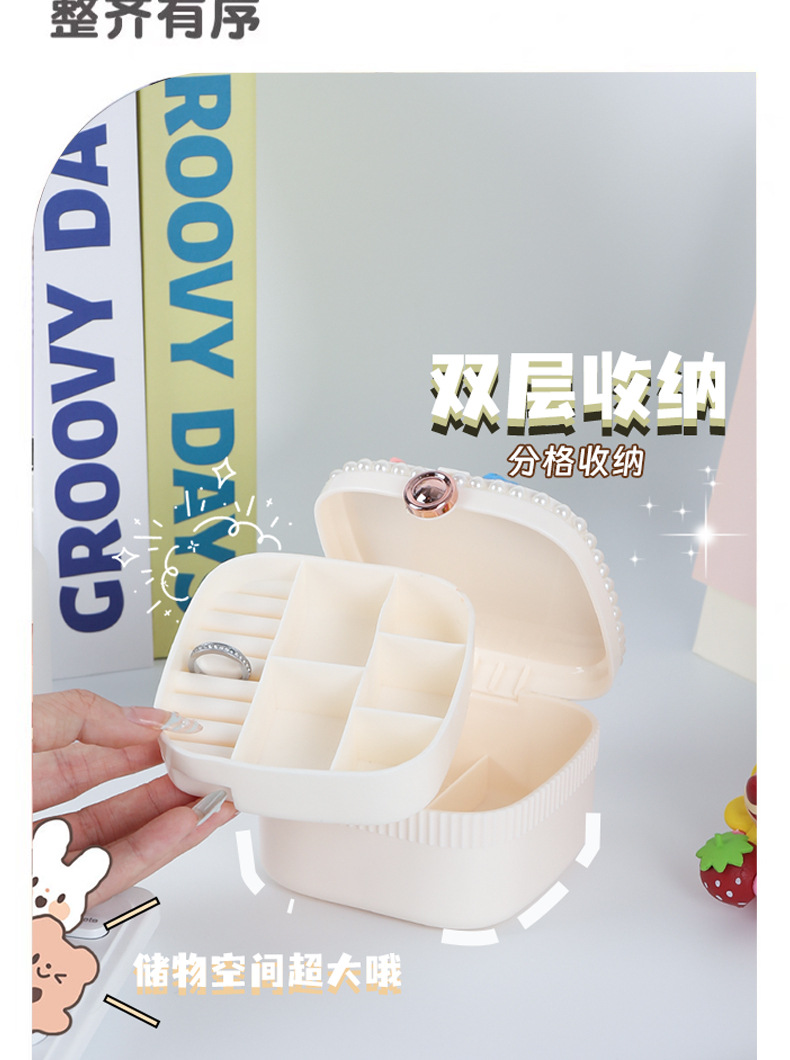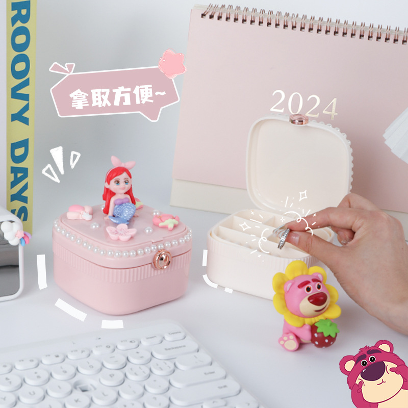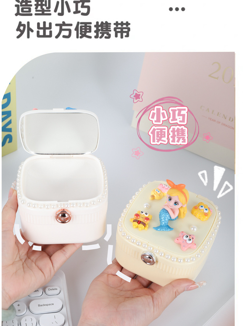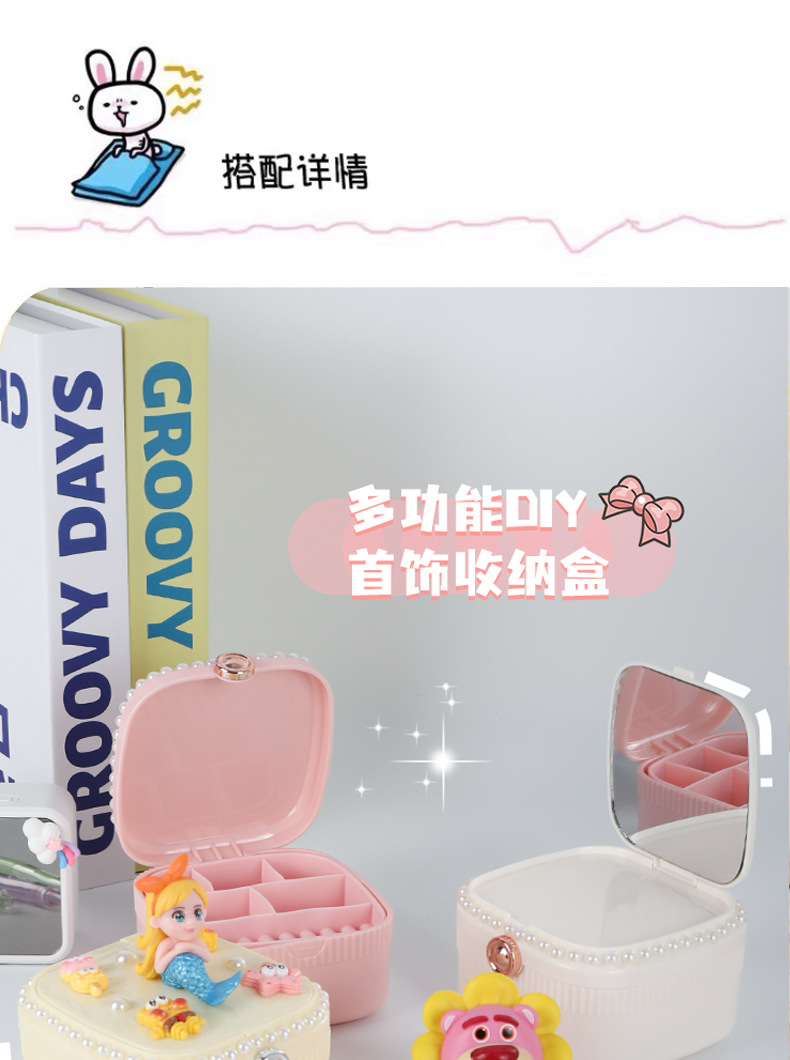 女孩多功能DIY首饰双层收纳盒 化妆桌面小物件收藏盒子自带化妆镜