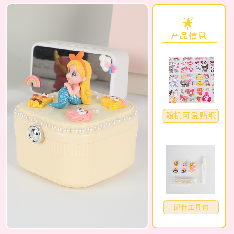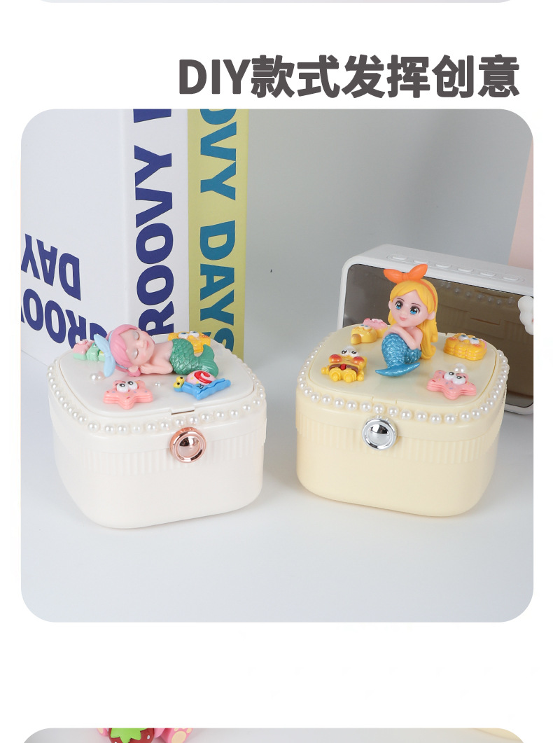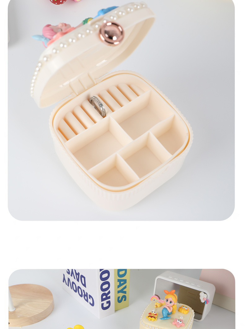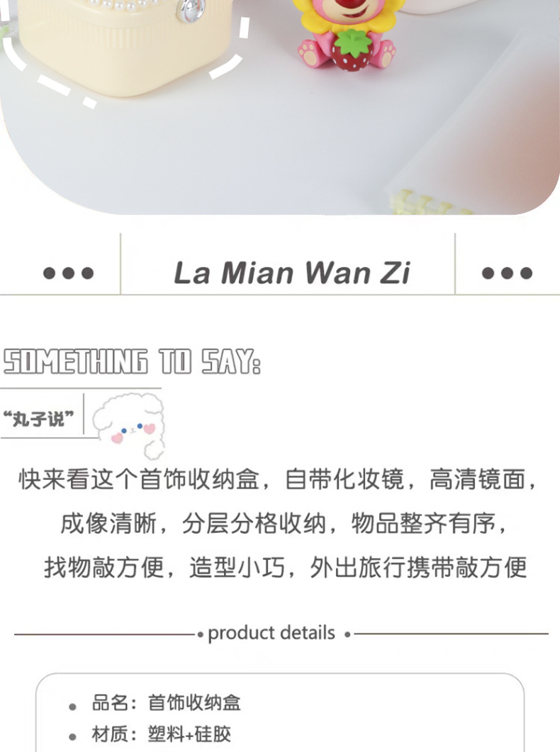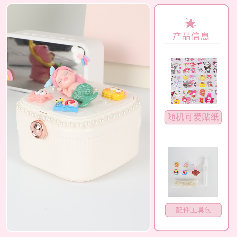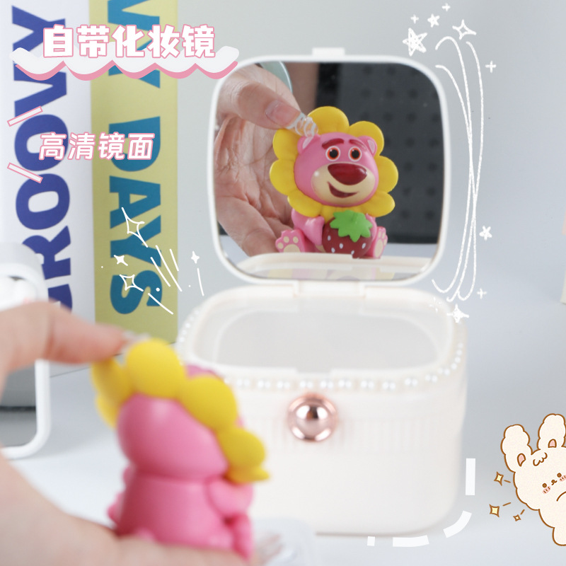 女孩多功能DIY首饰双层收纳盒 化妆桌面小物件收藏盒子自带化妆镜