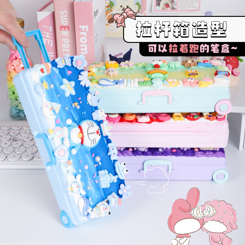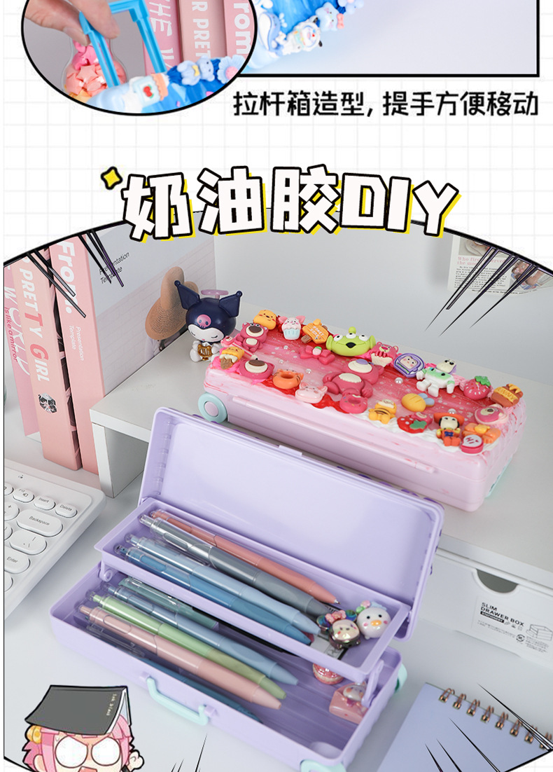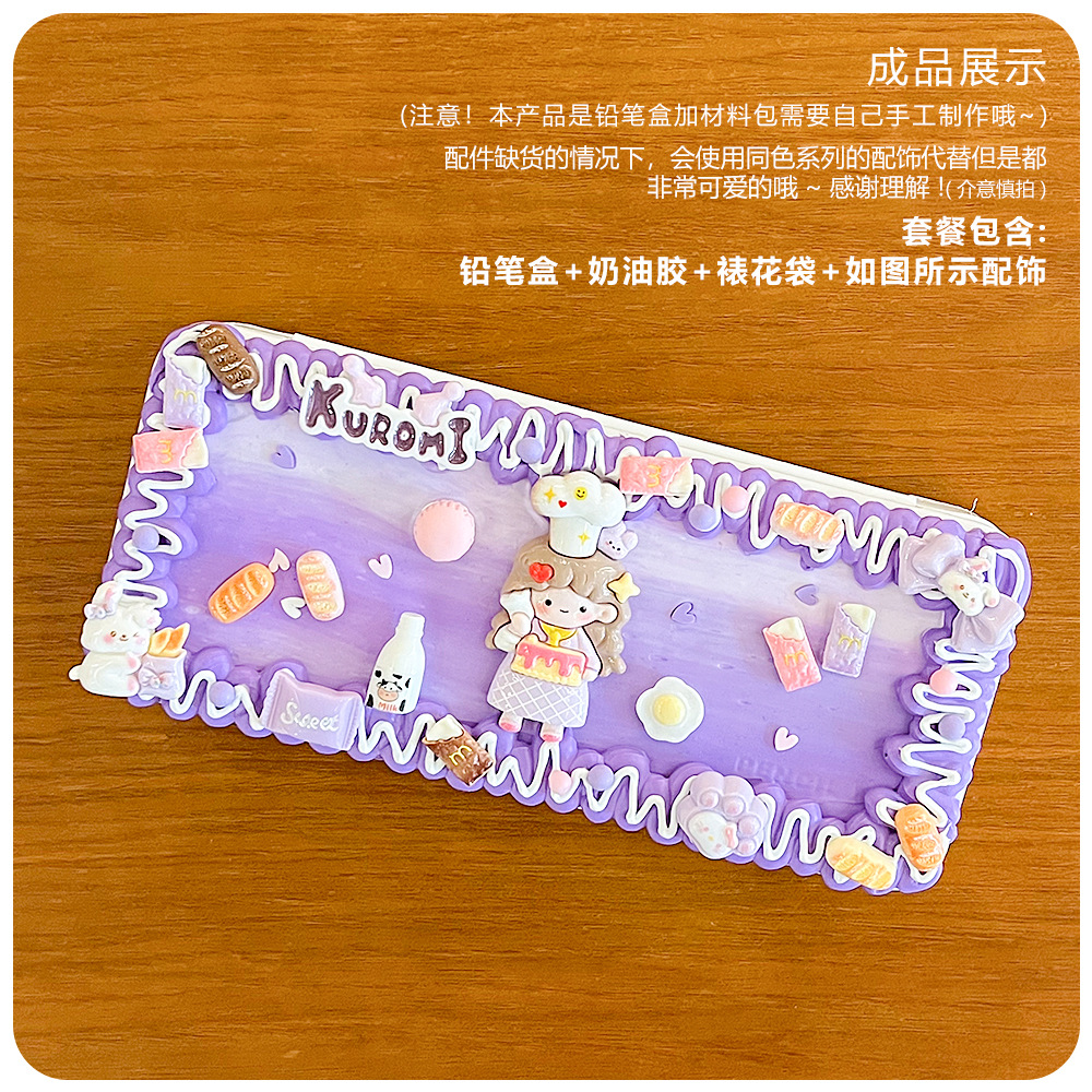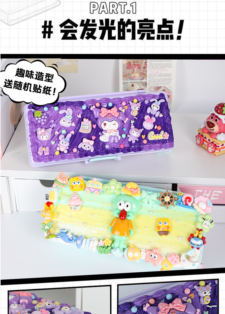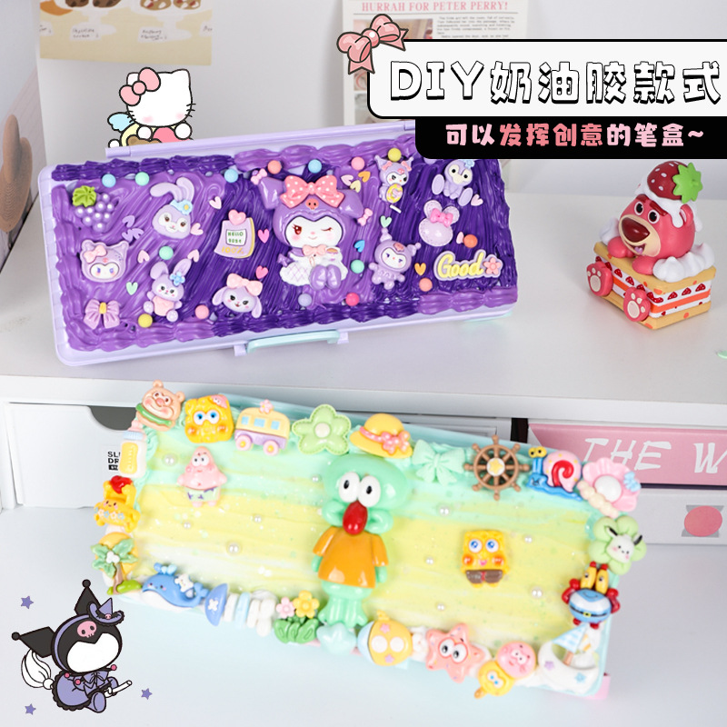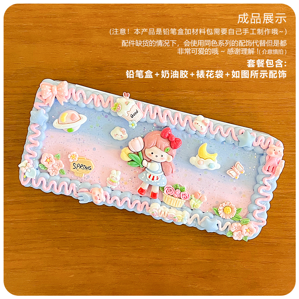 奶油胶diy带轮文具盒男女孩笔袋手工自制小学生双层卡通铅笔盒子