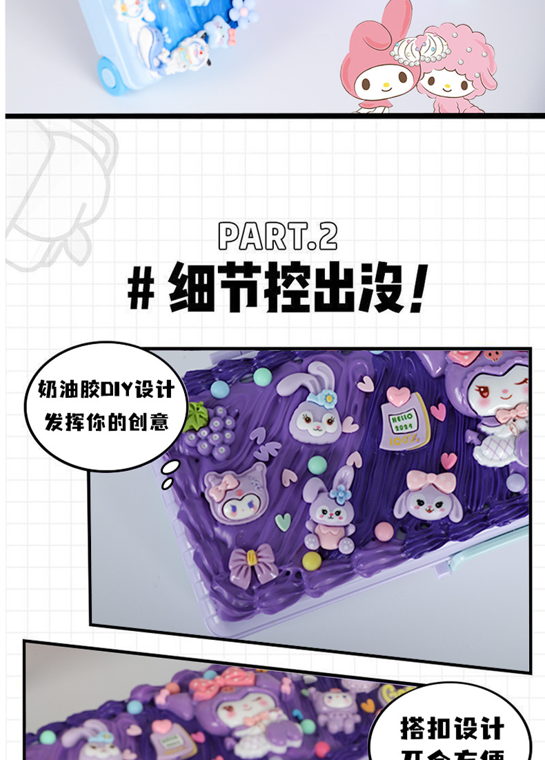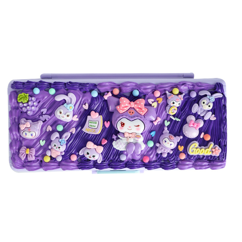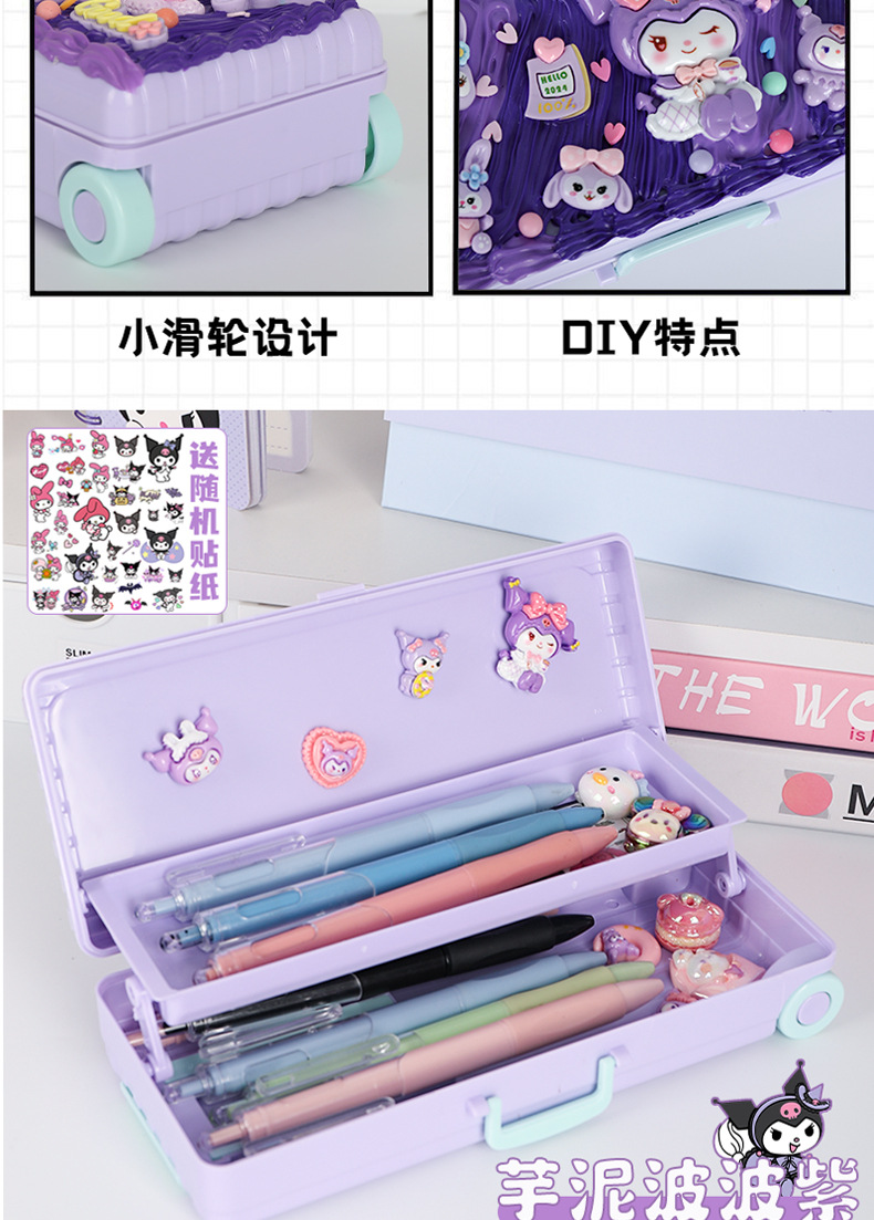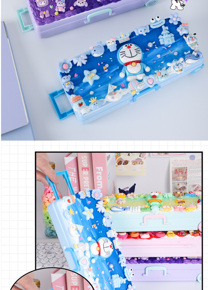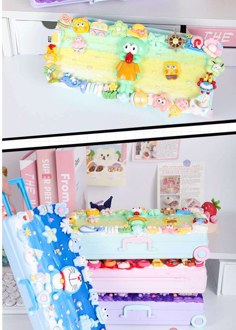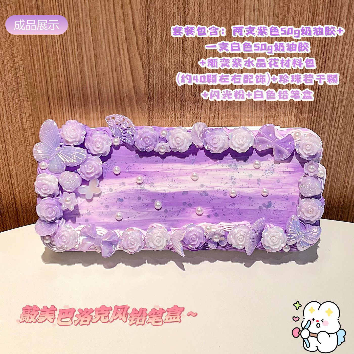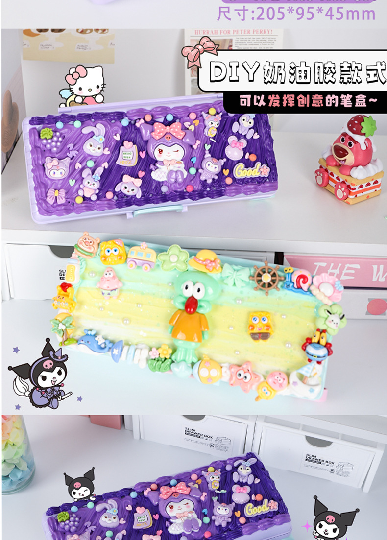 奶油胶diy带轮文具盒男女孩笔袋手工自制小学生双层卡通铅笔盒子