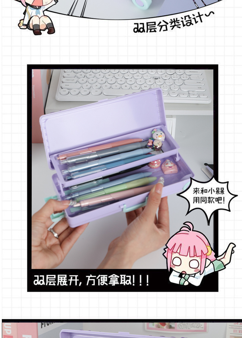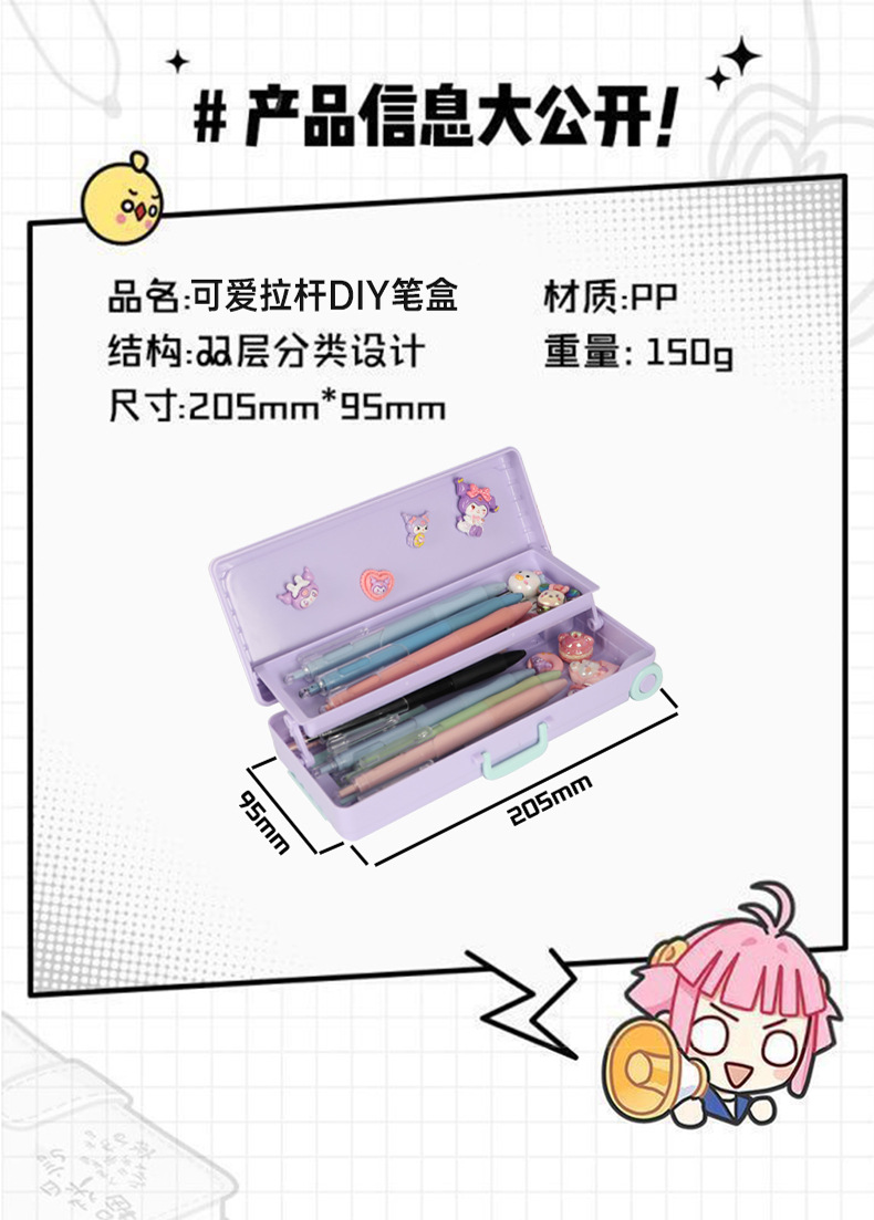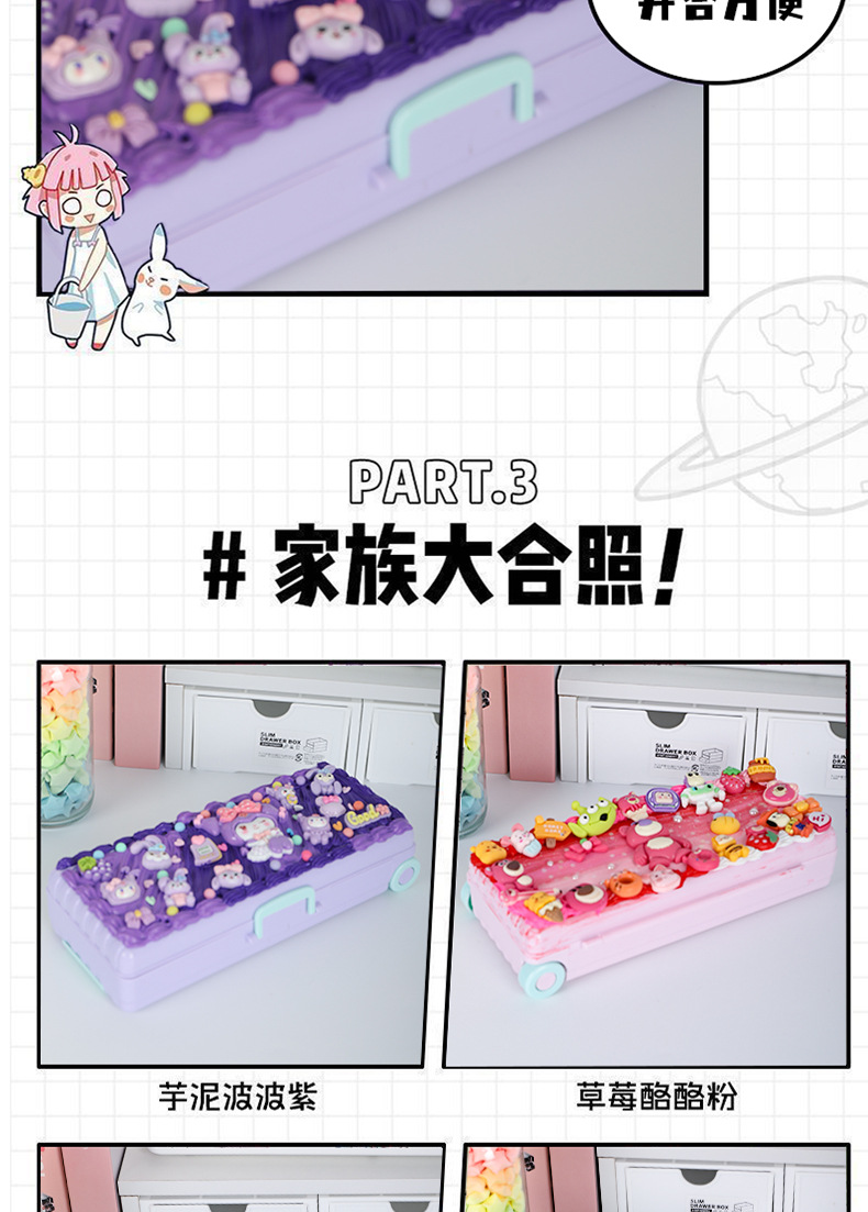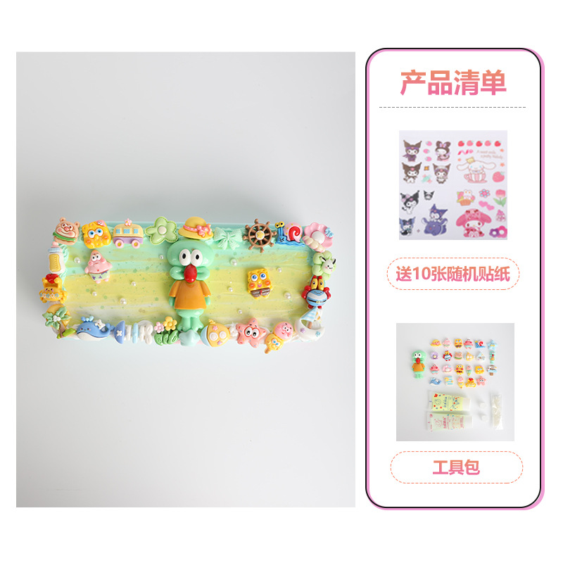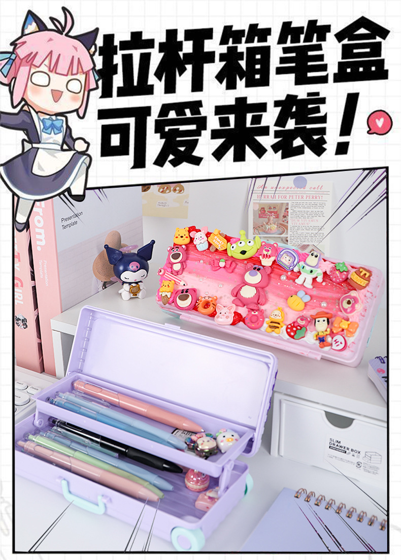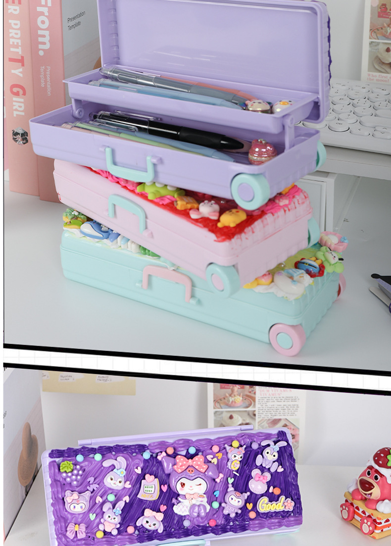 奶油胶diy带轮文具盒男女孩笔袋手工自制小学生双层卡通铅笔盒子