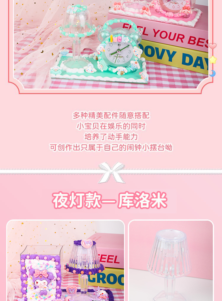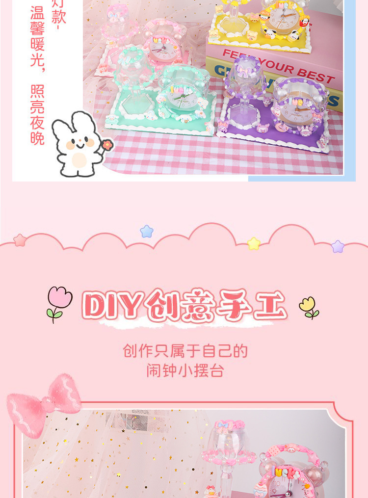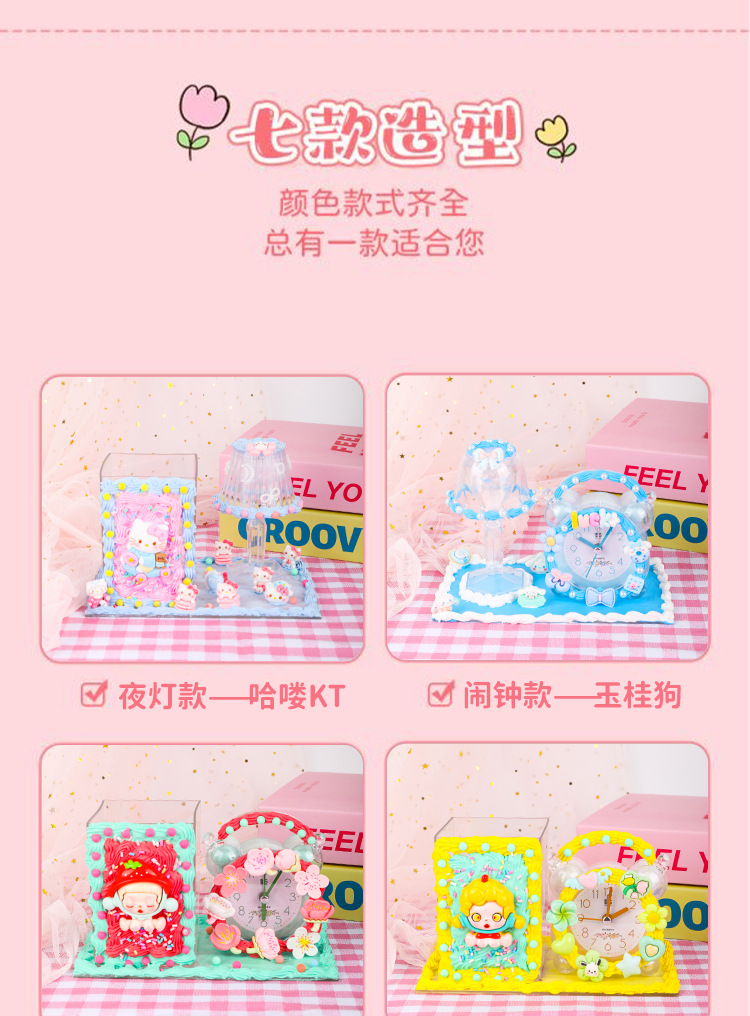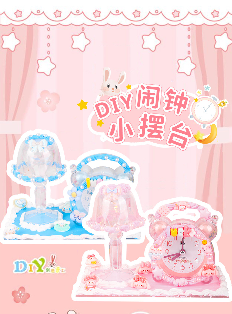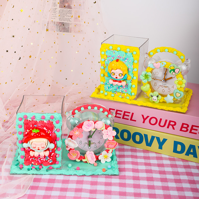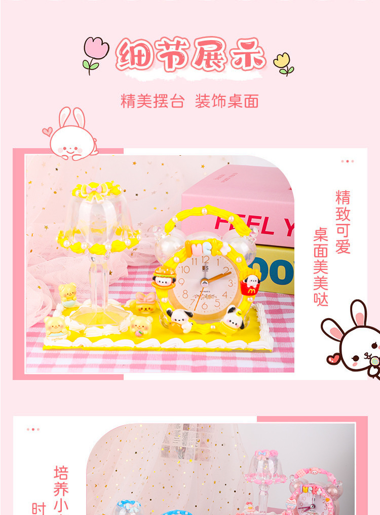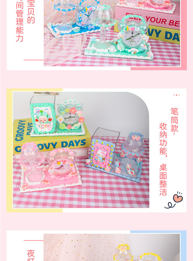 儿童手工奶油胶diy闹钟笔筒小夜灯一体 学生床头摆件益智玩具礼物