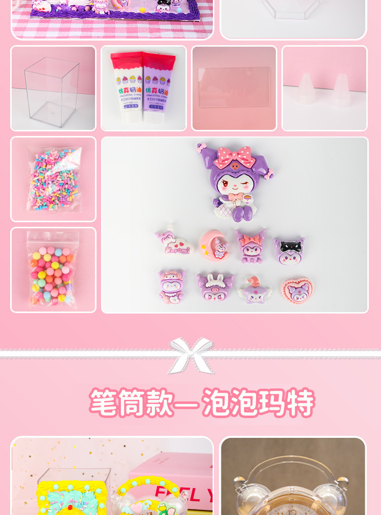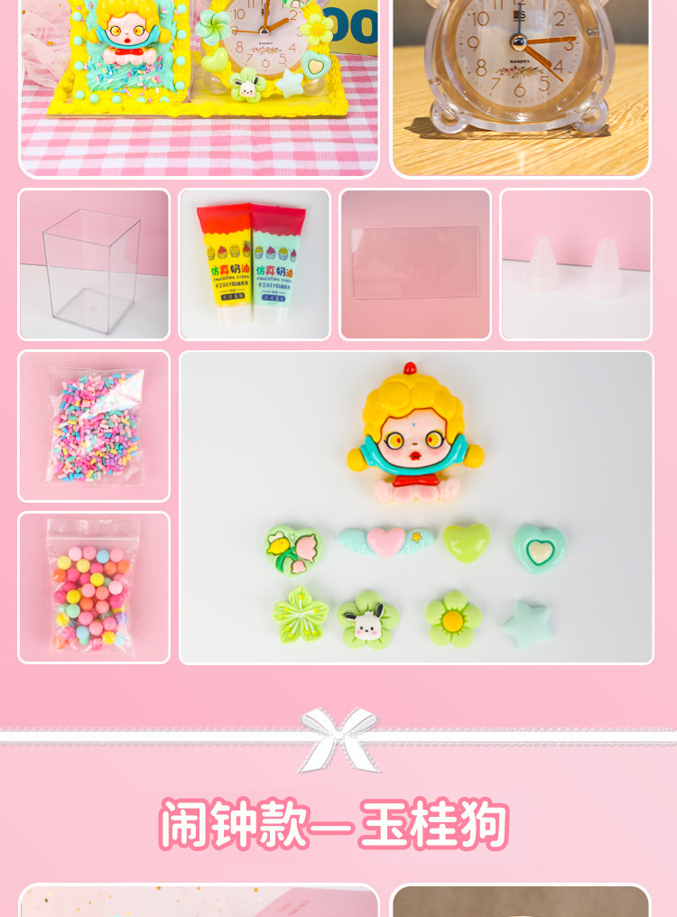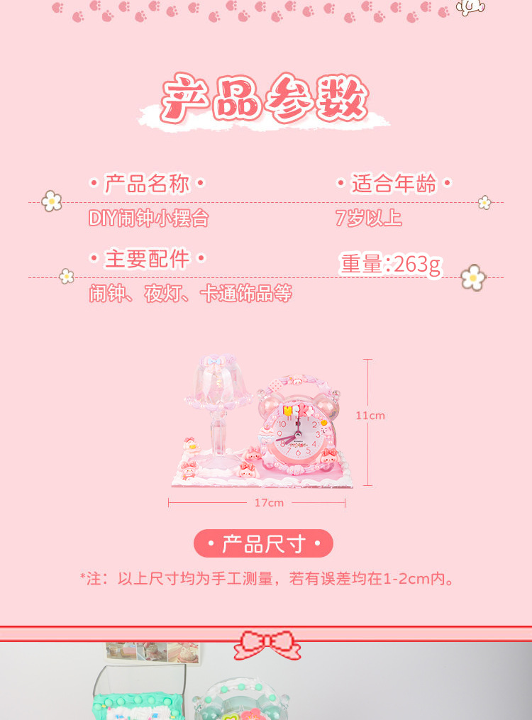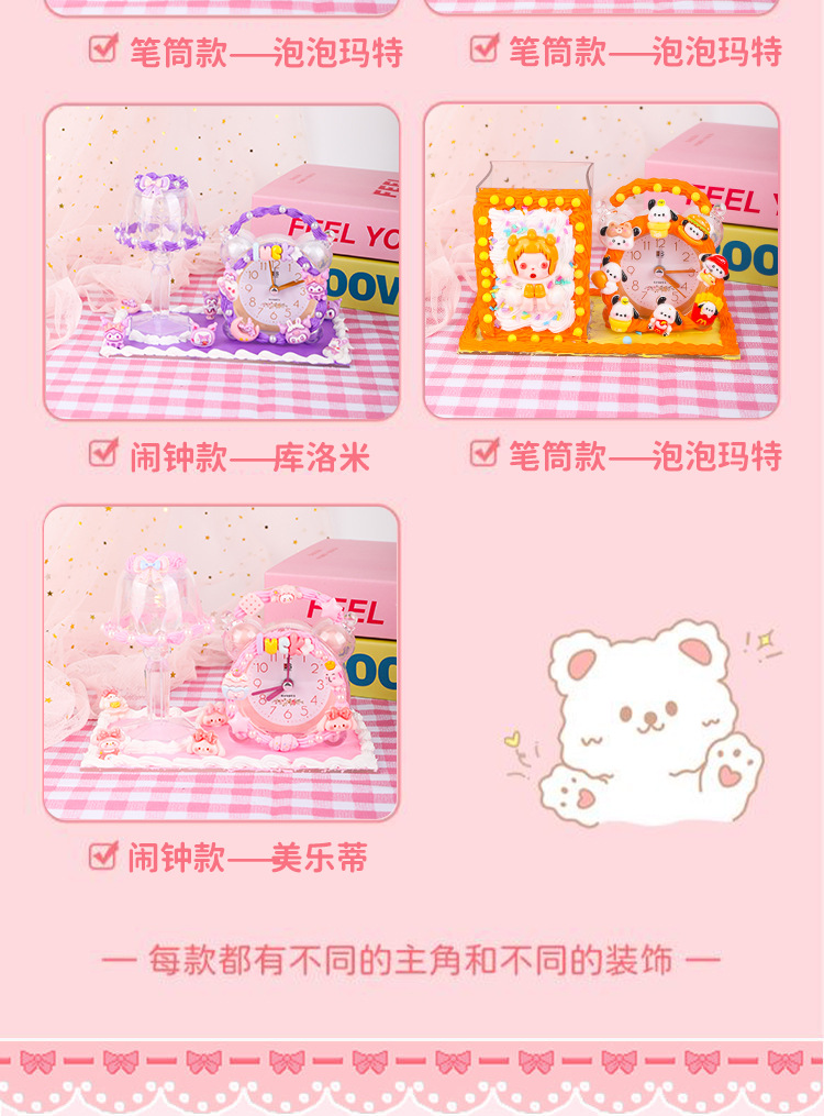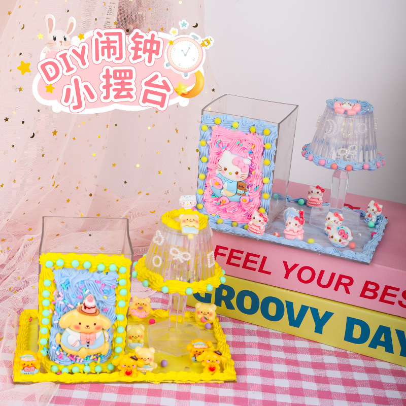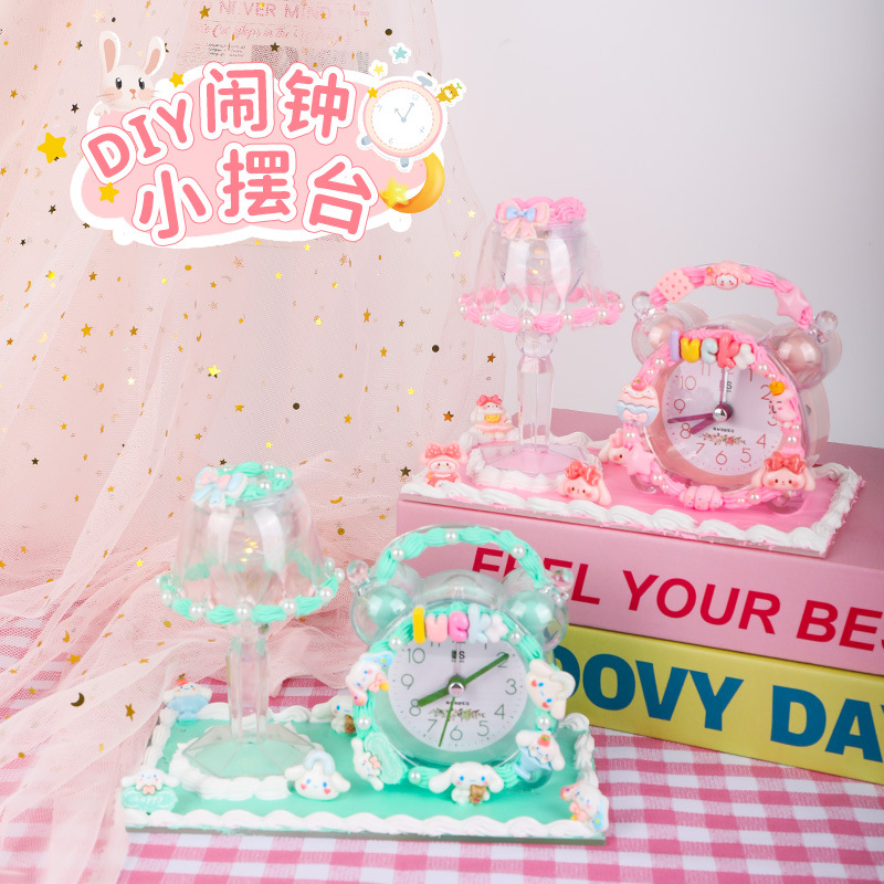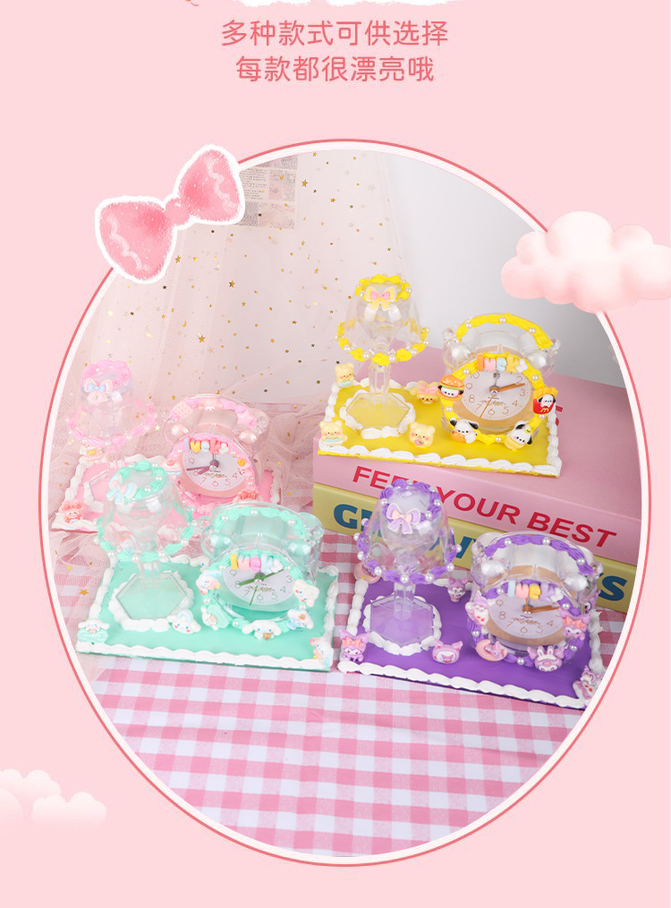儿童手工奶油胶diy闹钟笔筒小夜灯一体 学生床头摆件益智玩具礼物