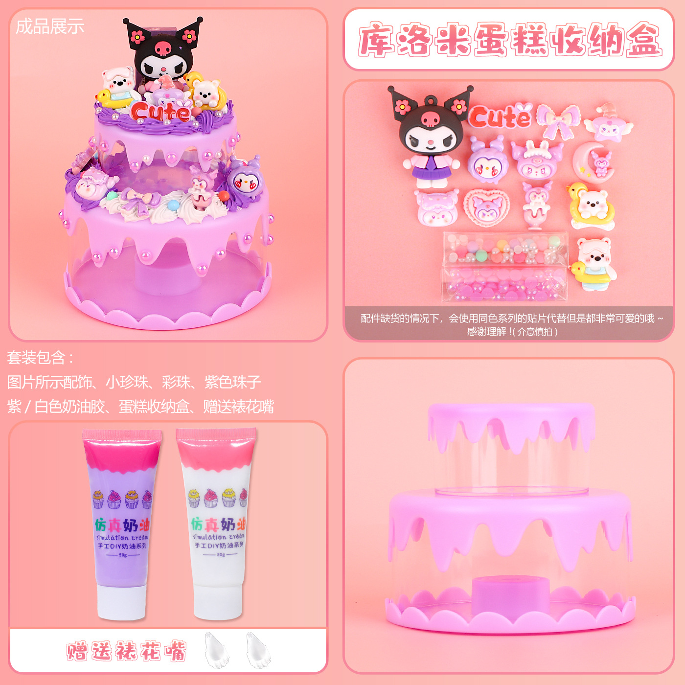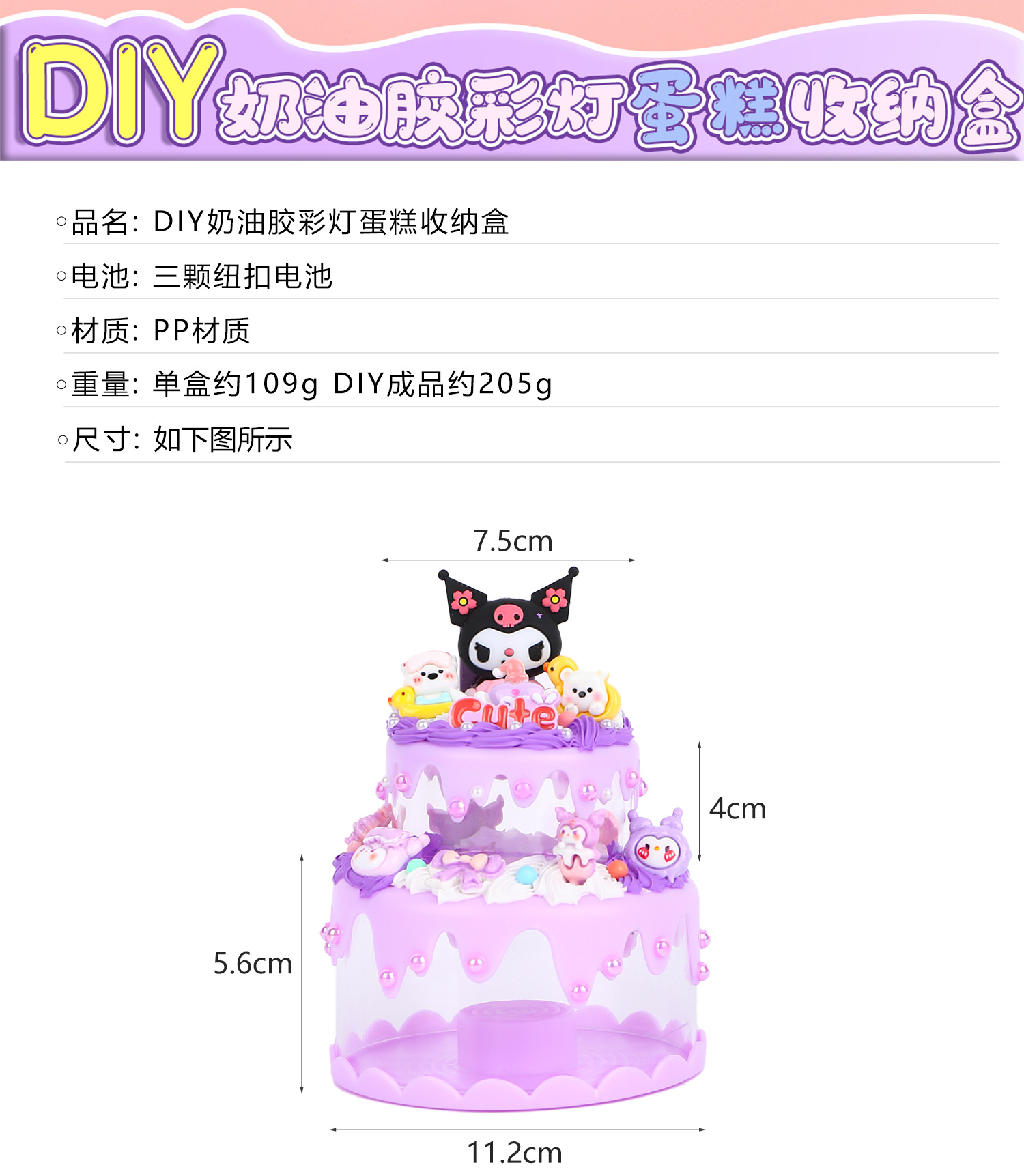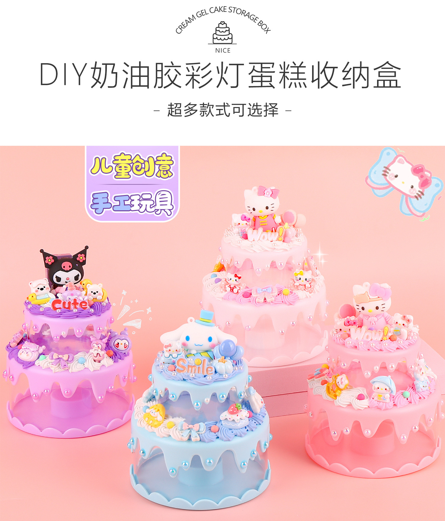 儿童手工奶油胶diy创意电池彩灯蛋糕收纳盒库洛米材料包双人玩具
