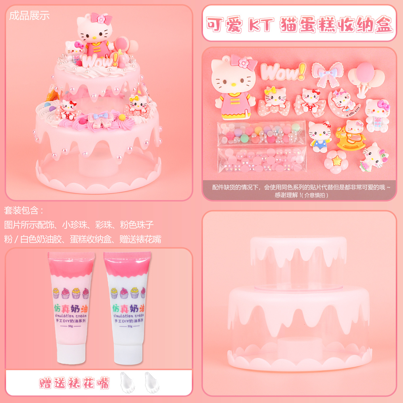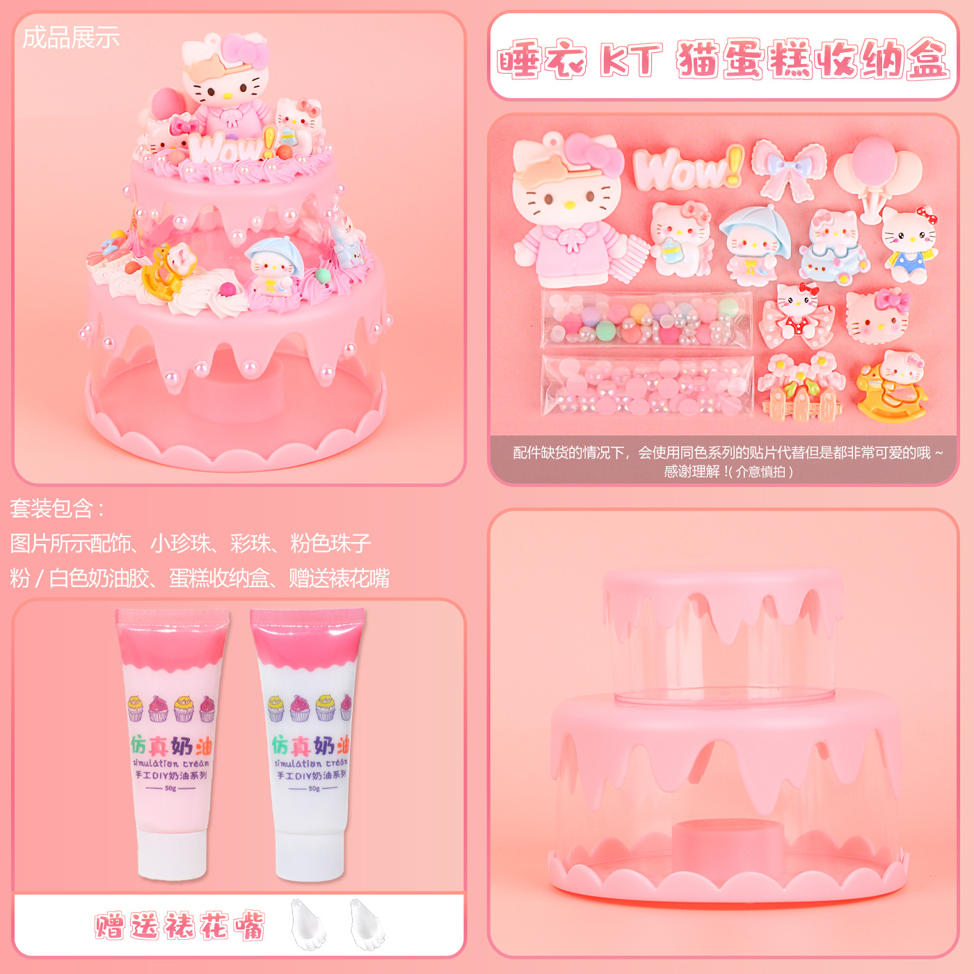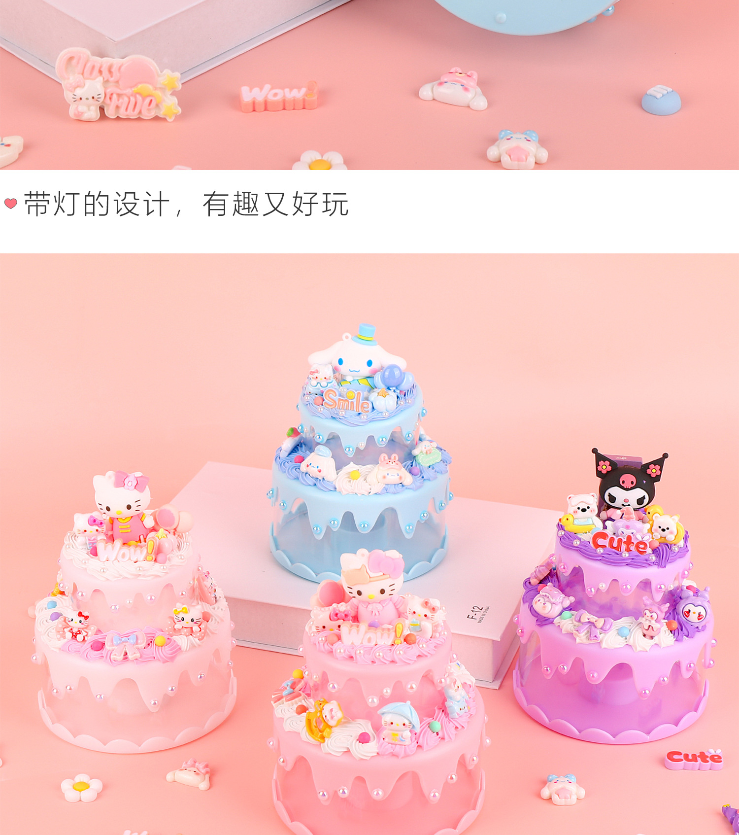 儿童手工奶油胶diy创意电池彩灯蛋糕收纳盒库洛米材料包双人玩具