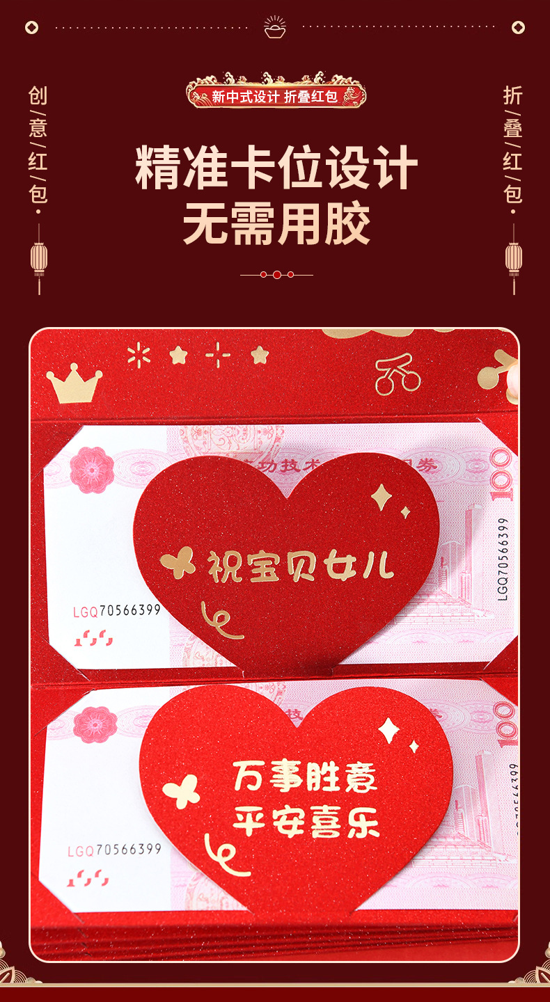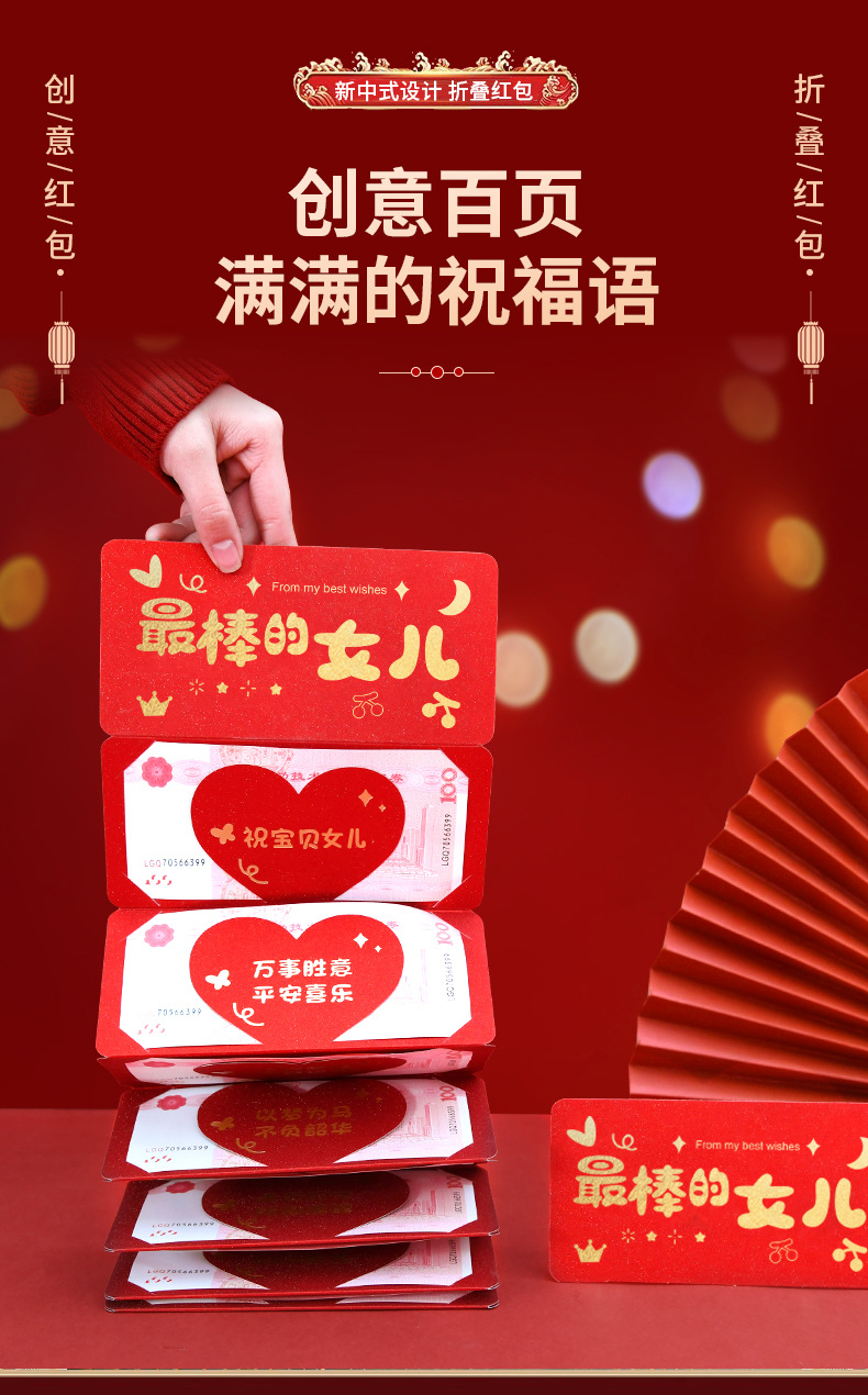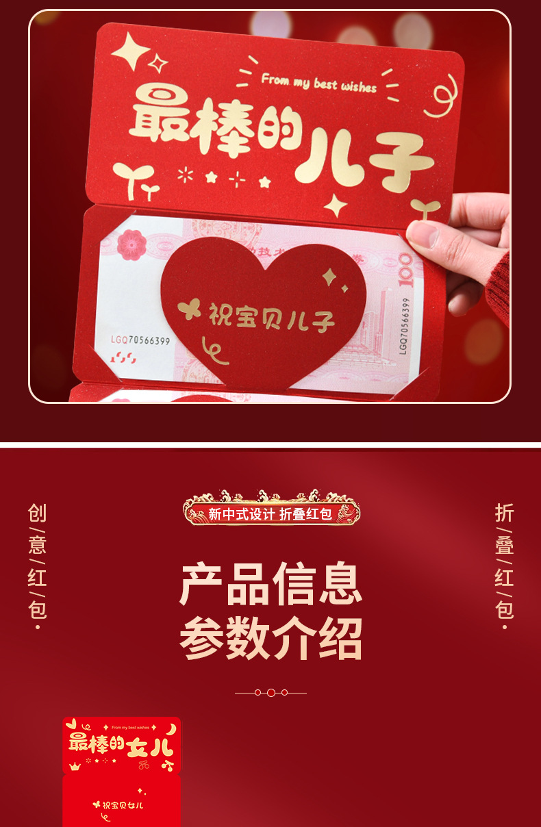 2025新款烫金高级感生日折叠红包送儿子女儿新年春节过年利是封