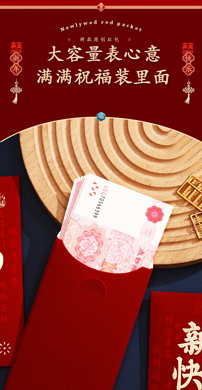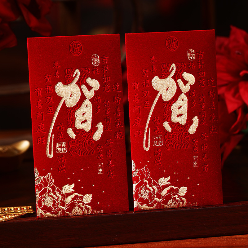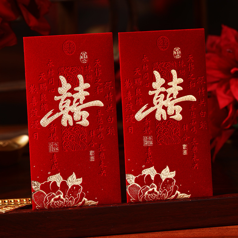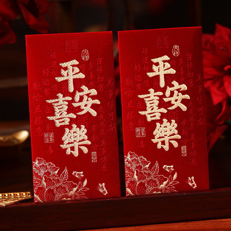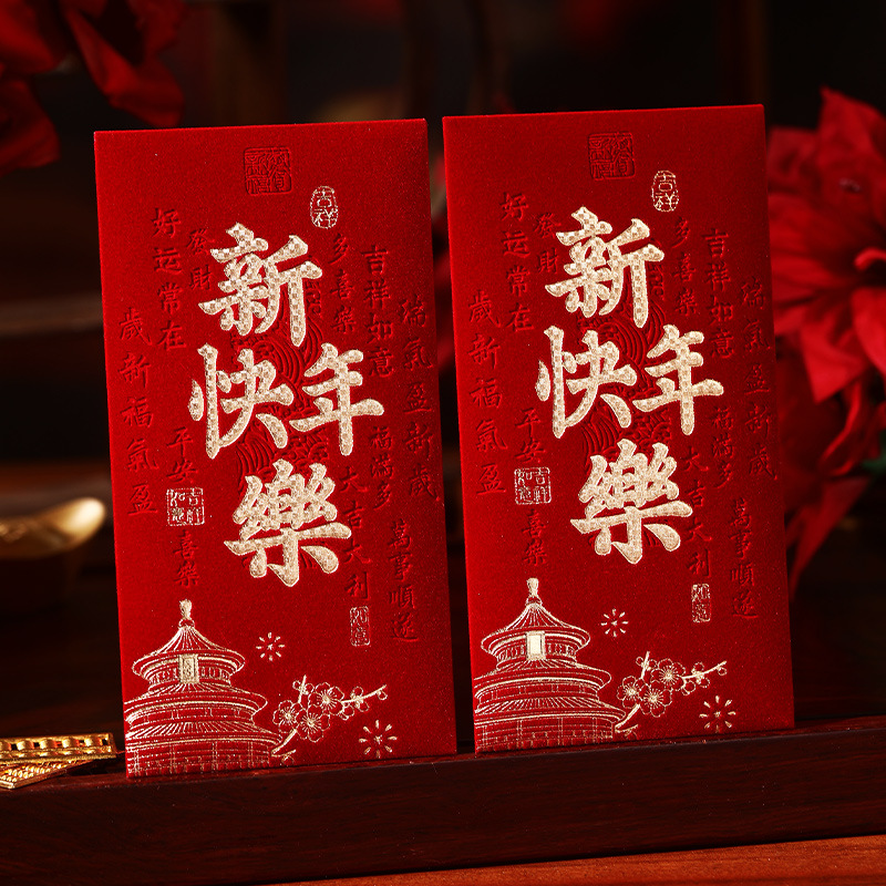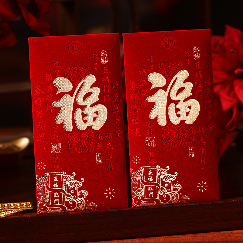 泓信2026绒面烫金回礼红包袋新年春节大吉大利千元红包利是封批发