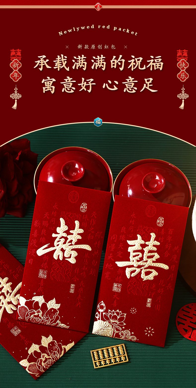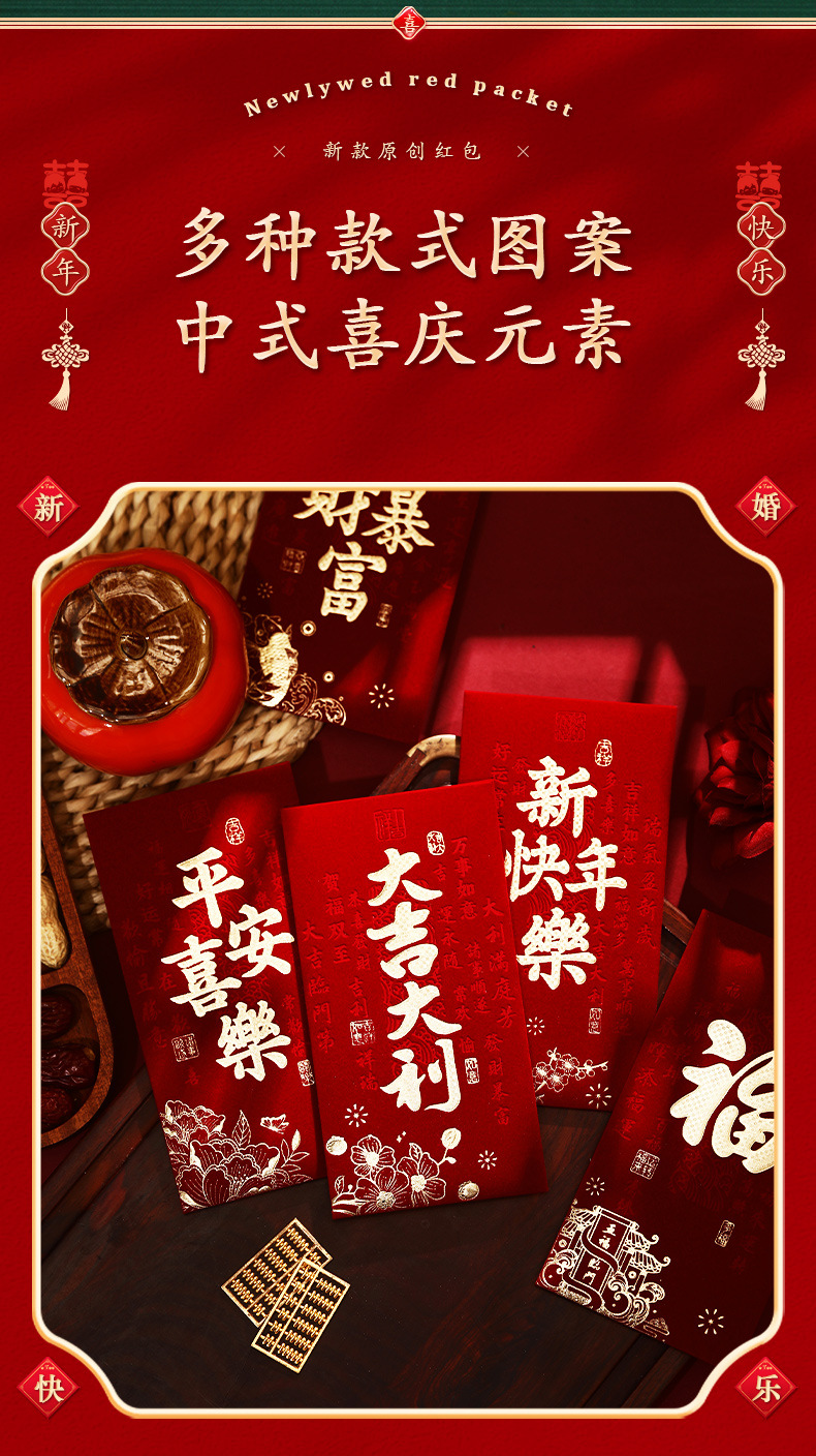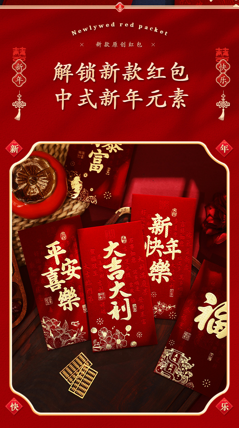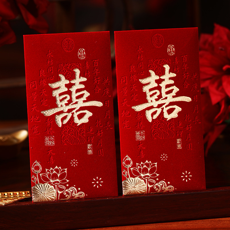 泓信2026绒面烫金回礼红包袋新年春节大吉大利千元红包利是封批发