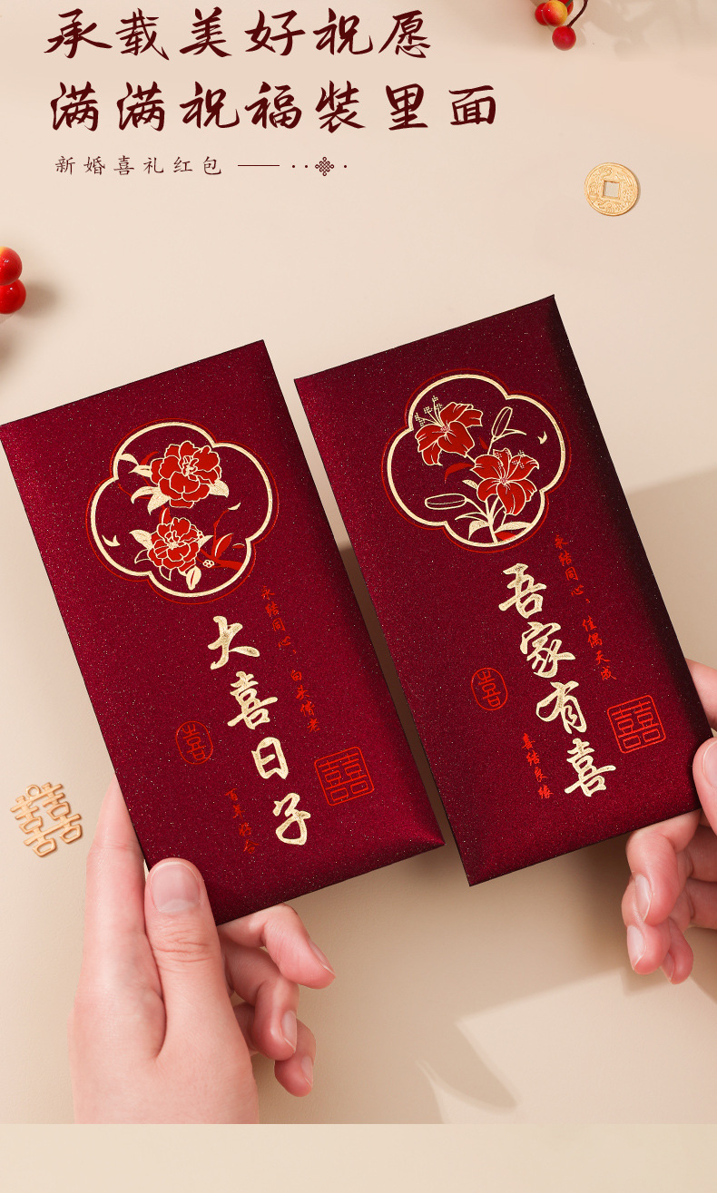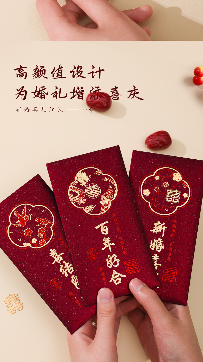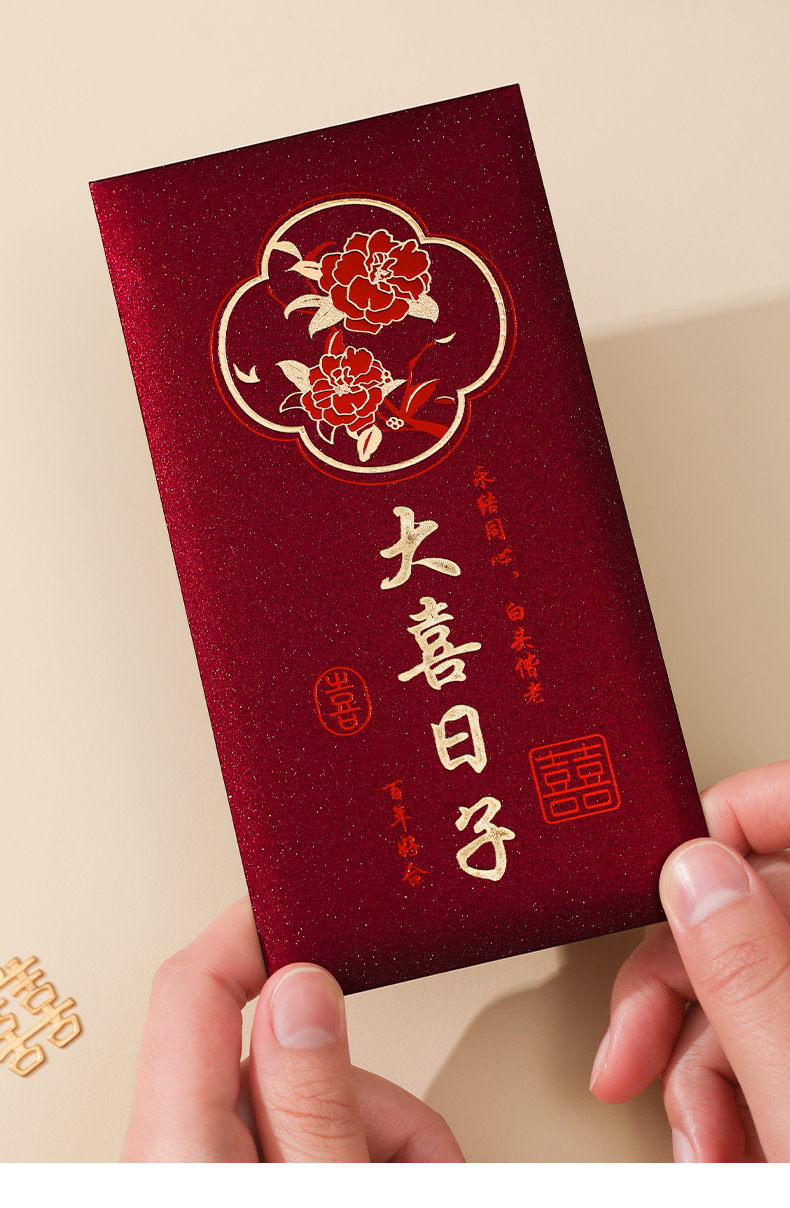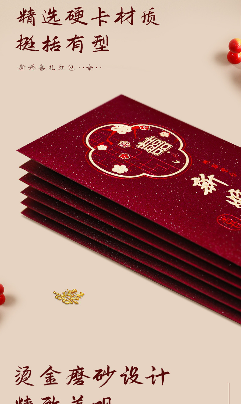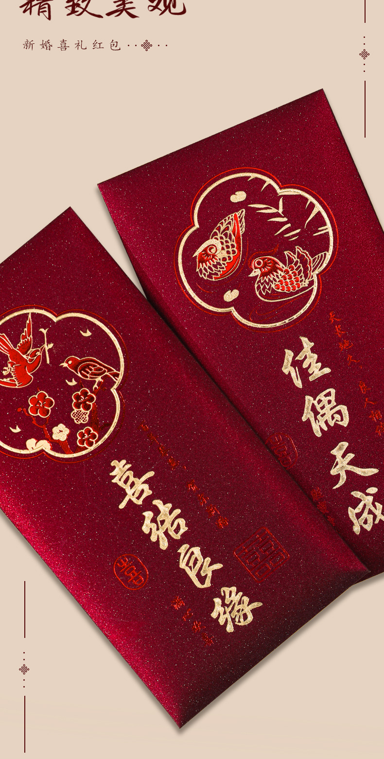 批发2025新款喜鹊创意结婚红包酒红磨砂金葱纸千元利是封婚庆用品