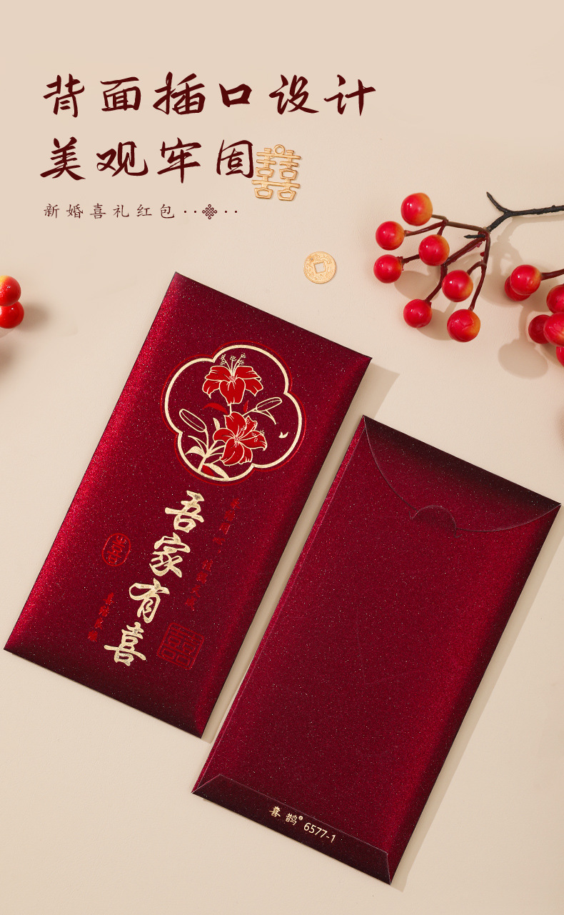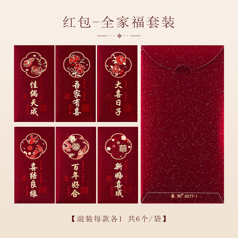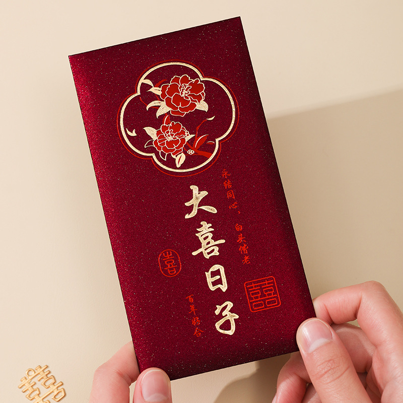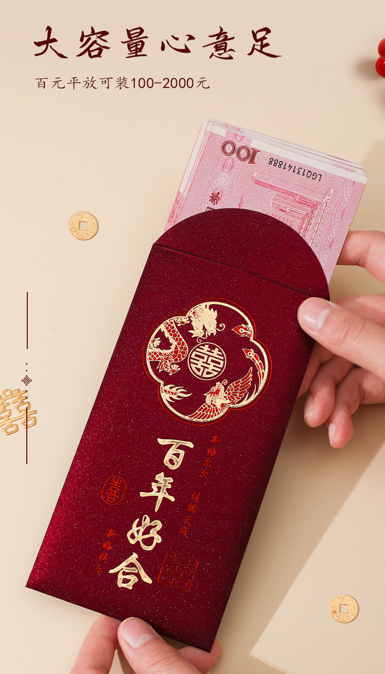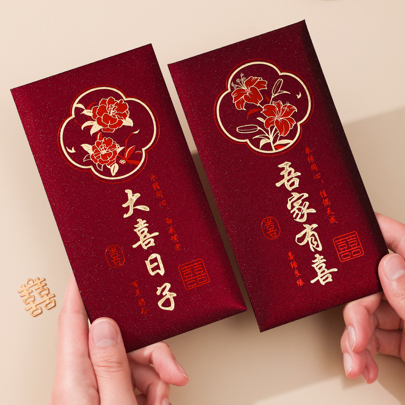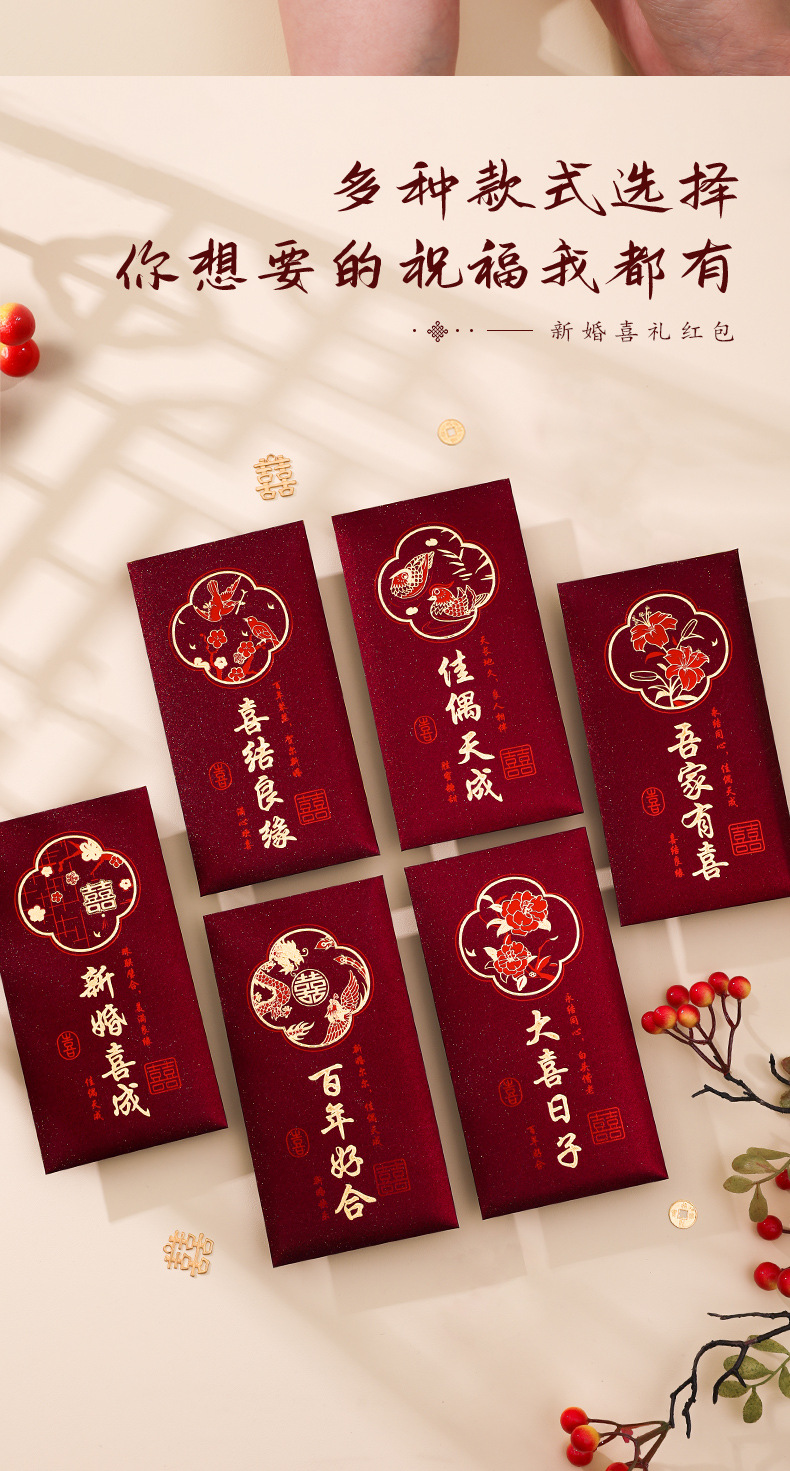 批发2025新款喜鹊创意结婚红包酒红磨砂金葱纸千元利是封婚庆用品