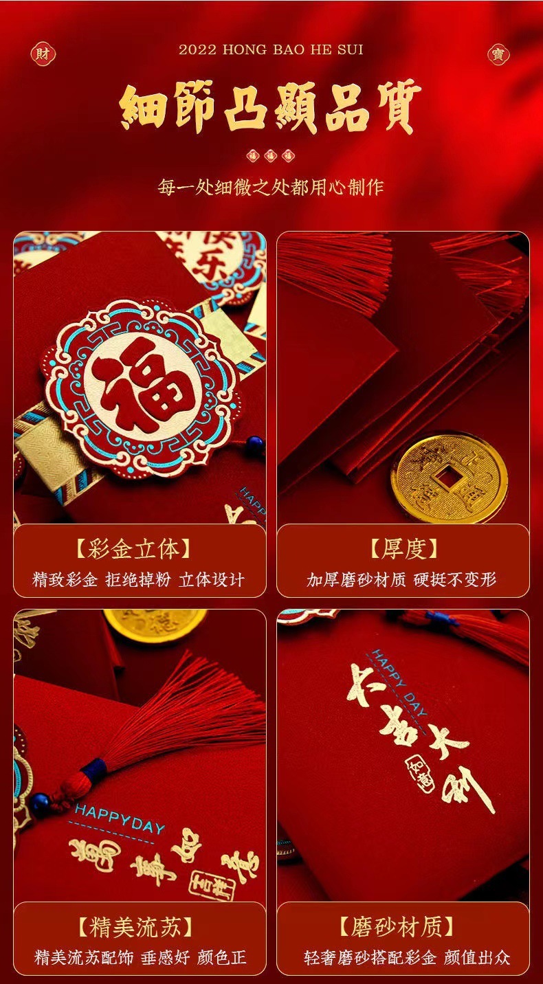 | high-end relief gilding red packet [price increase tomorrow night] buy more at a good price(高档浮雕烫金红包【明晚涨价】多买价优) | USD $5.27 | 652 piece available |