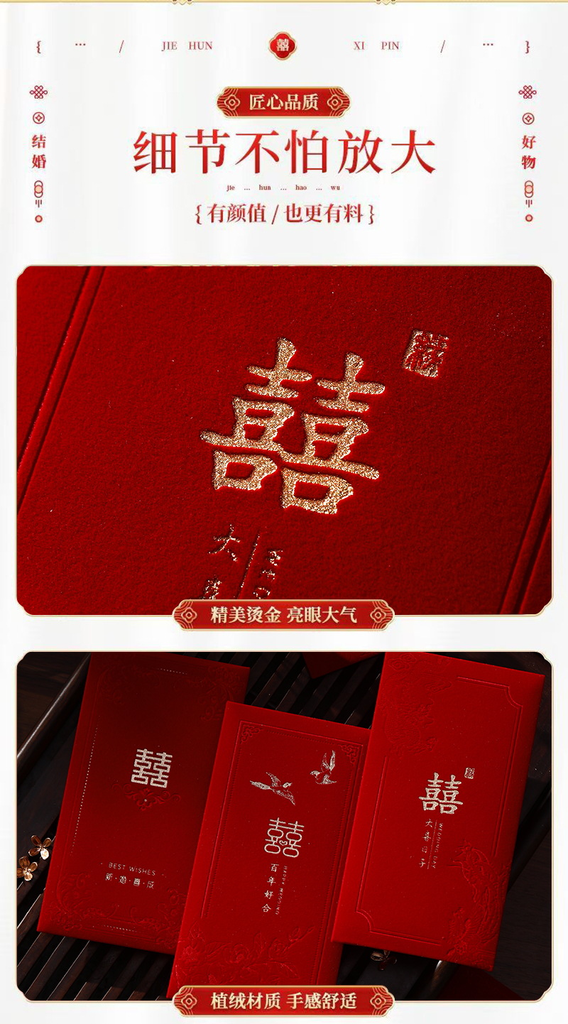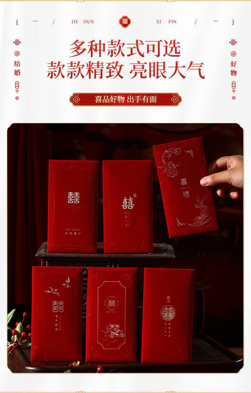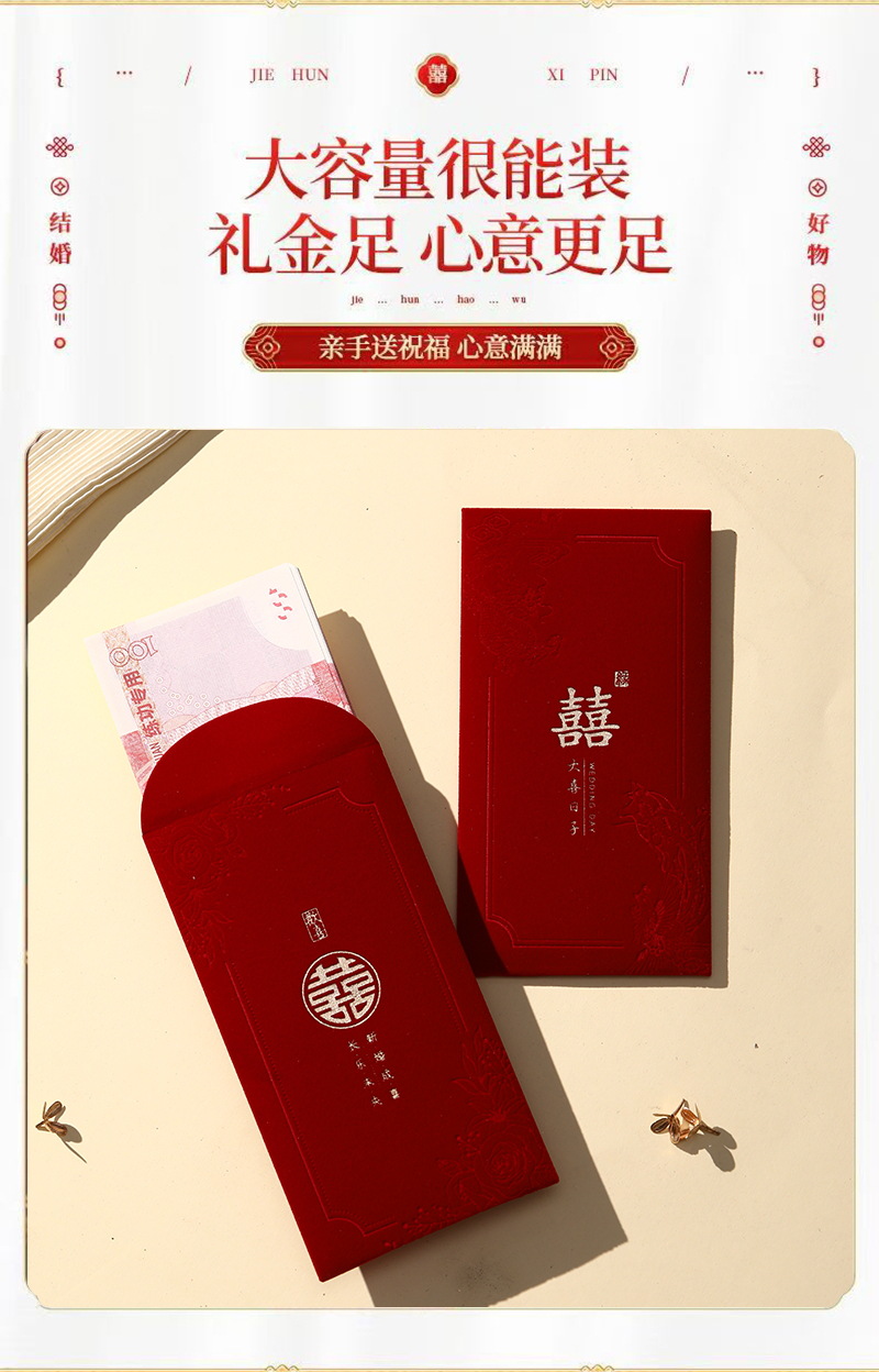 红包2025结婚专用绒面高级感喜字利是封千元婚礼随份子改口红包袋