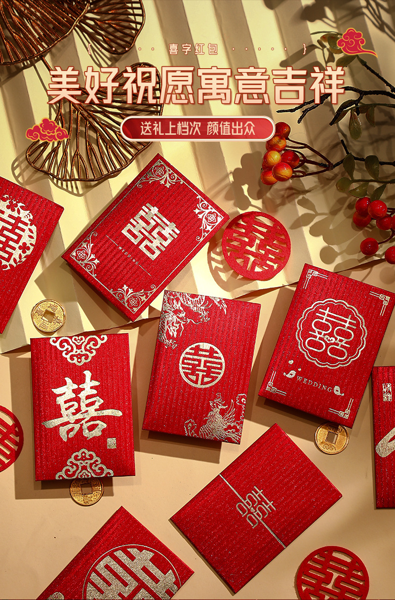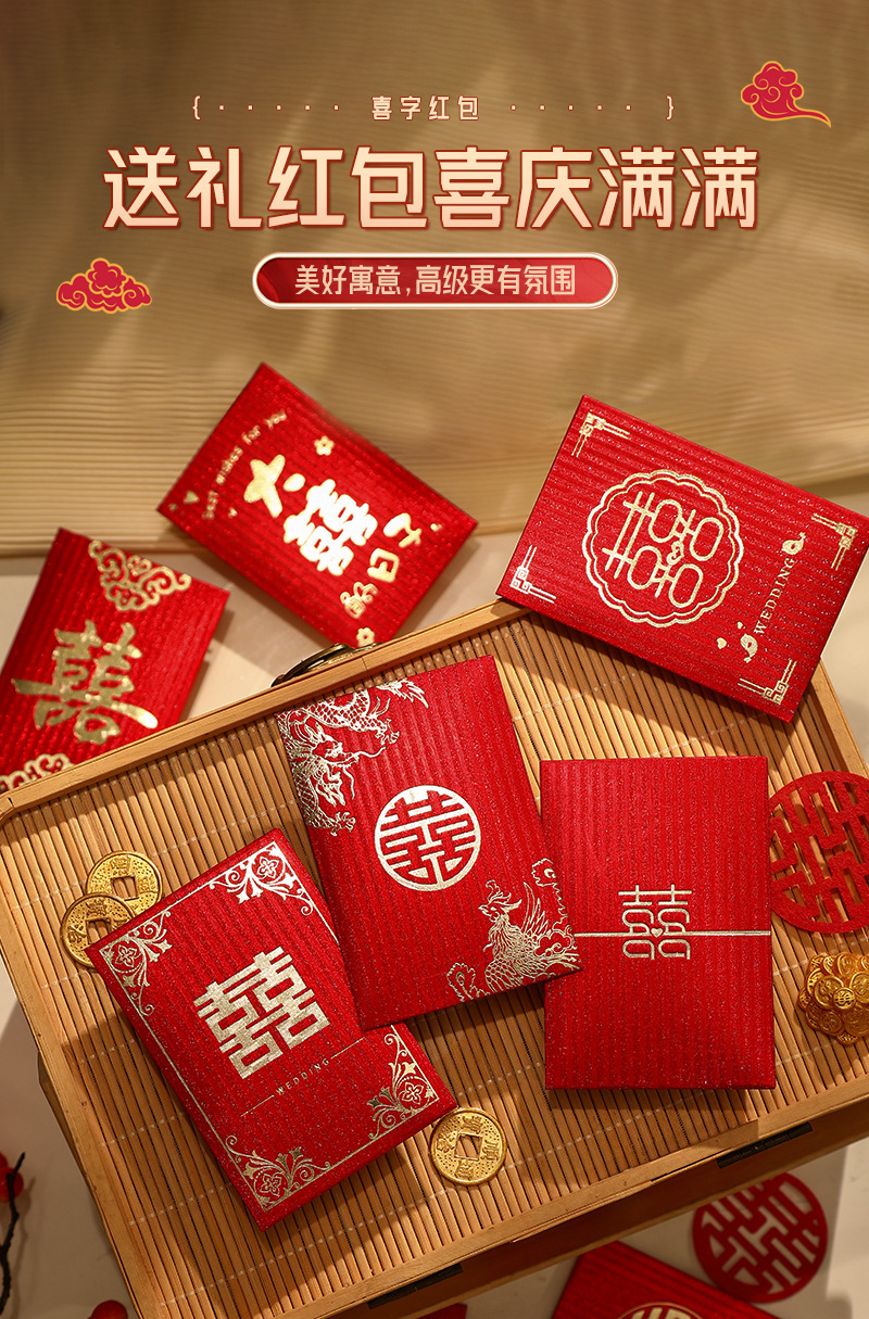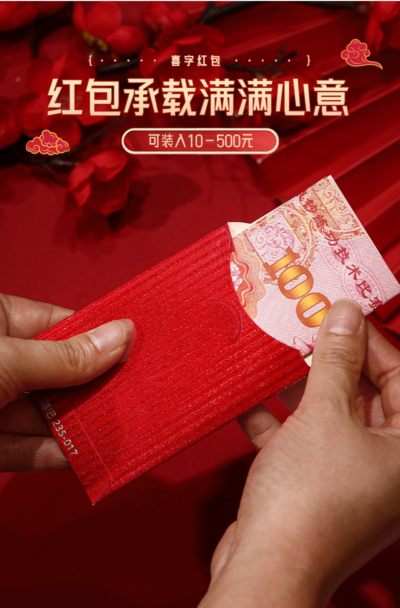 结婚迷你接亲红包婚礼小堵门磨砂喜字小号利是封婚庆用品百元适配