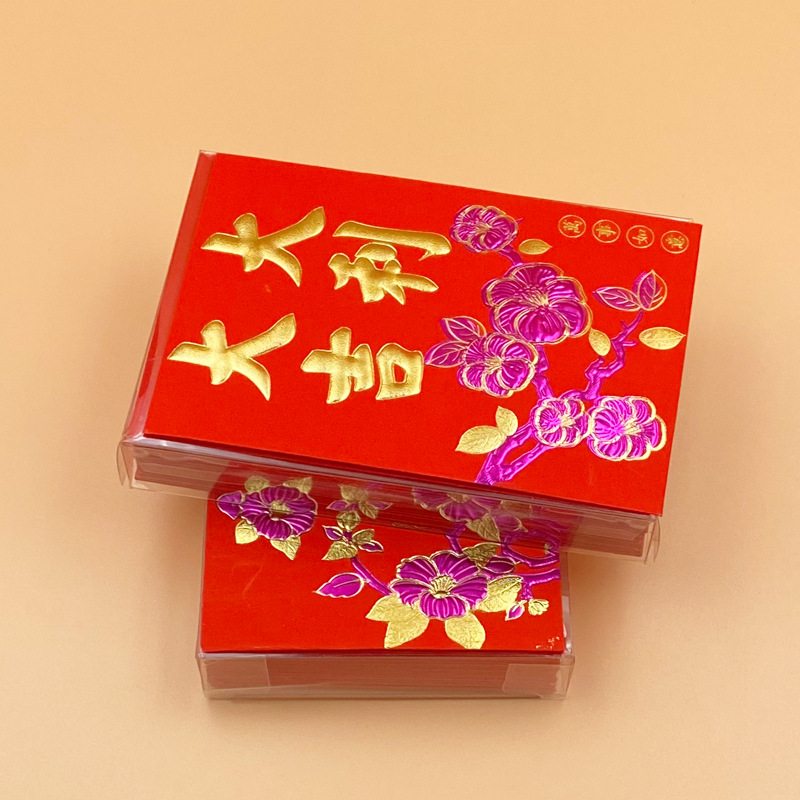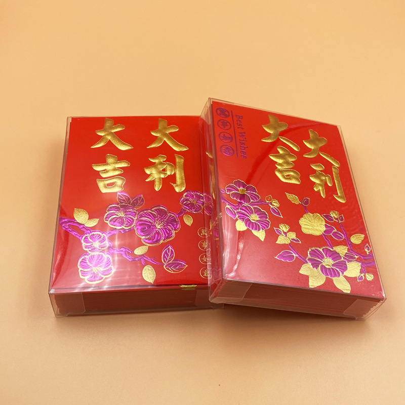 30K紫金盒装广式软纸利是封透明胶合硬壳塑胶盒子浮雕烫金红包袋