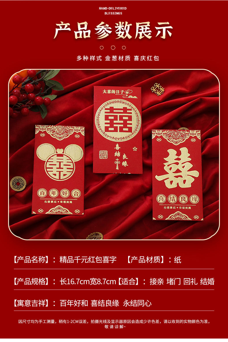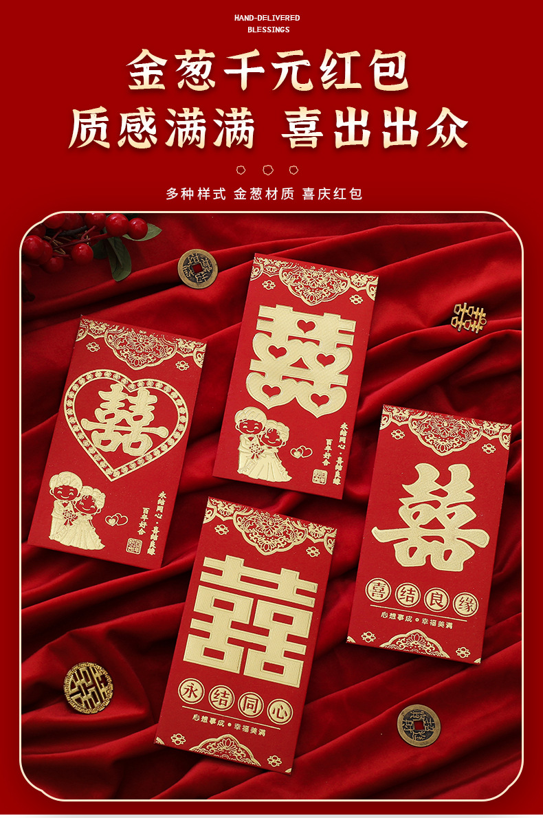 喜字千元红包袋大小号利是封结婚专用高级感烫金婚礼红包批货定制
