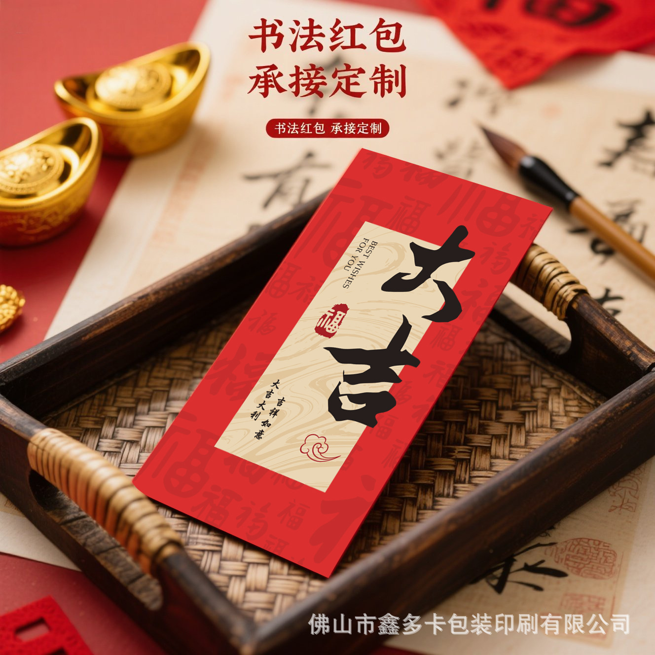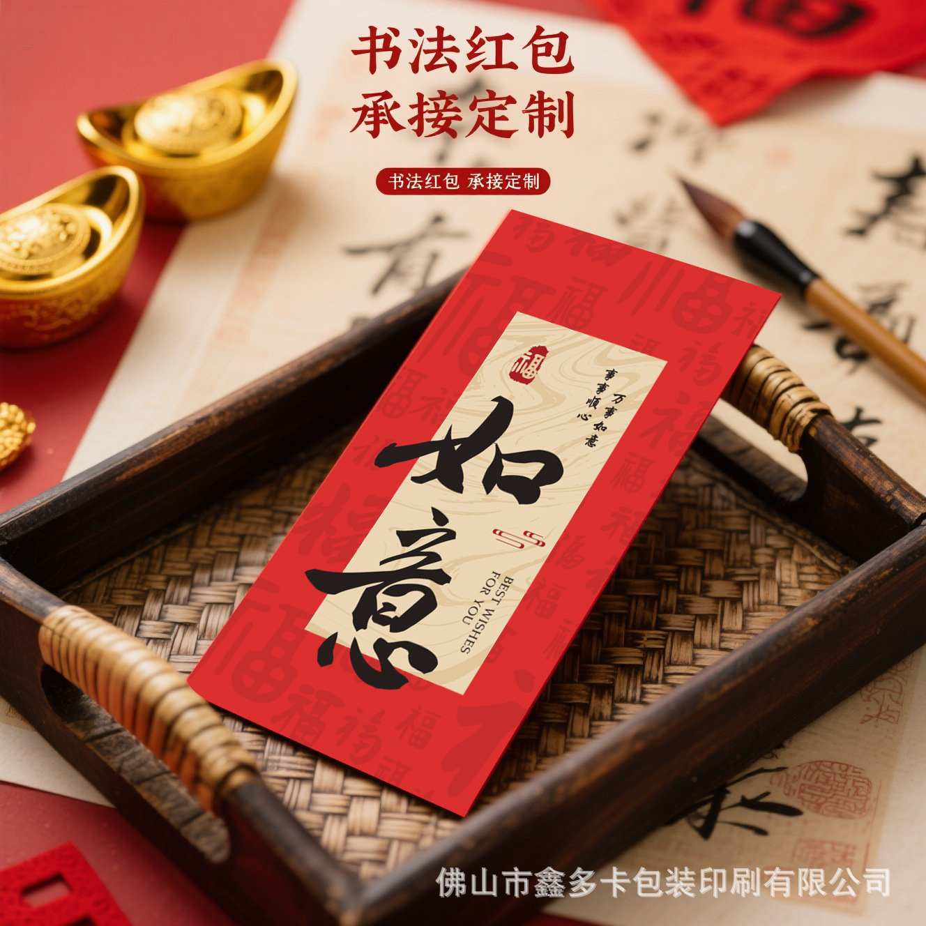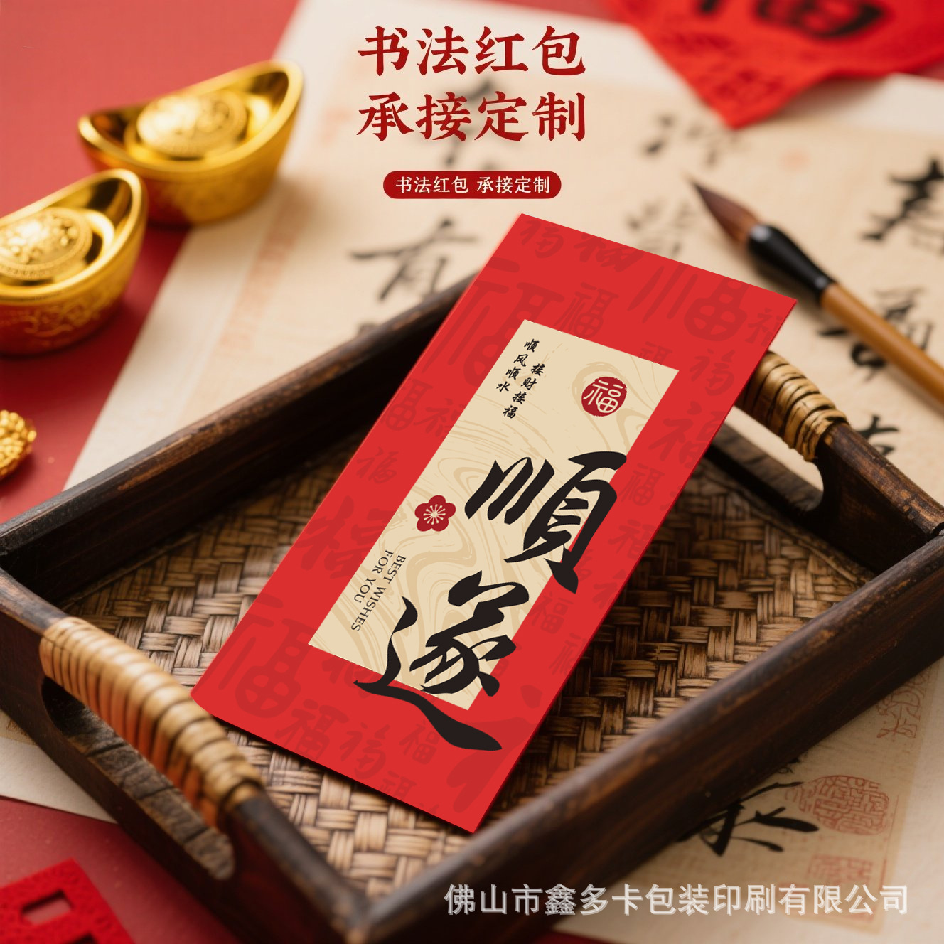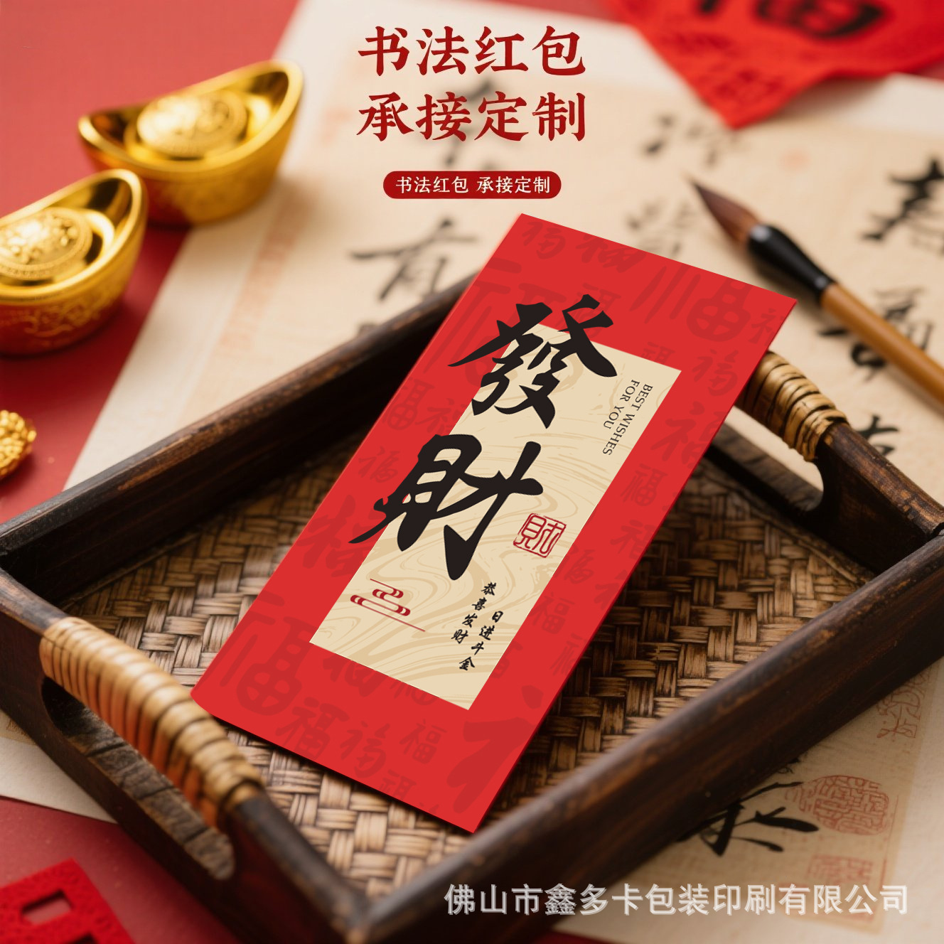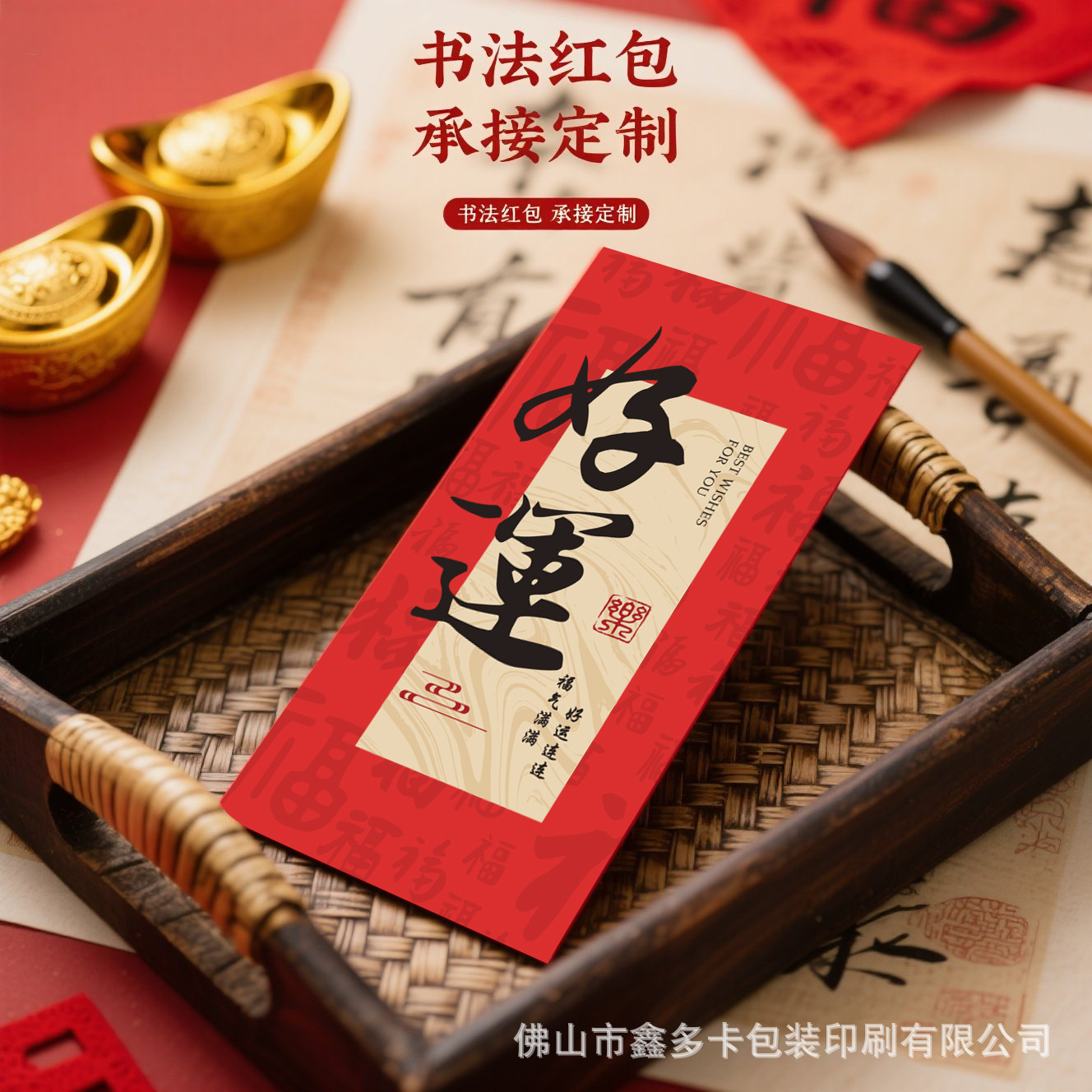 2026马年书法红包制定logo过年压岁包财神利是封烫金红包现货批发