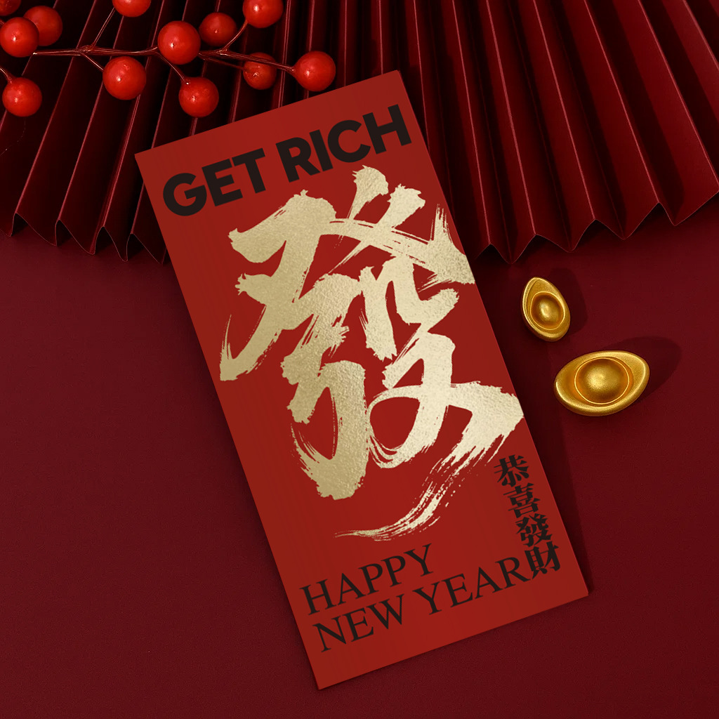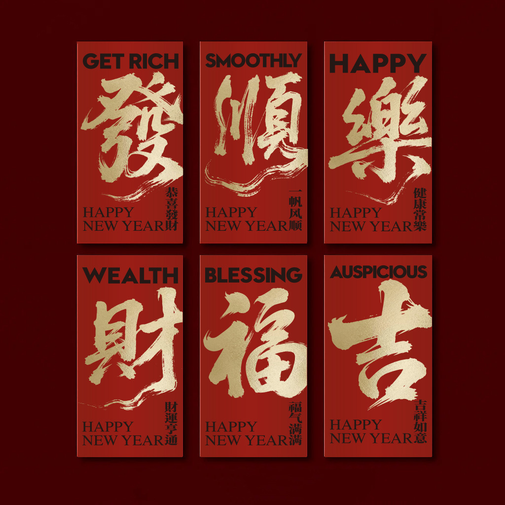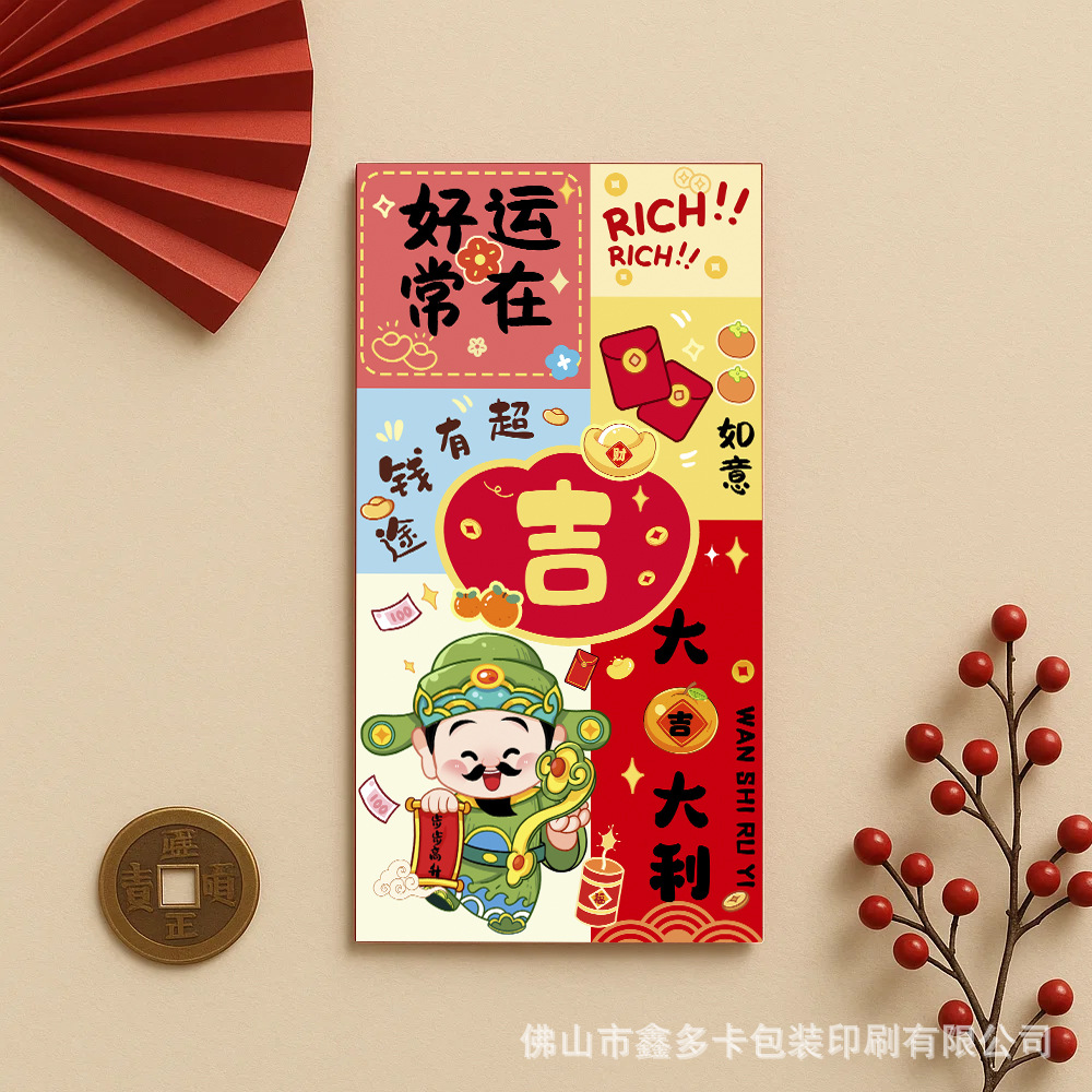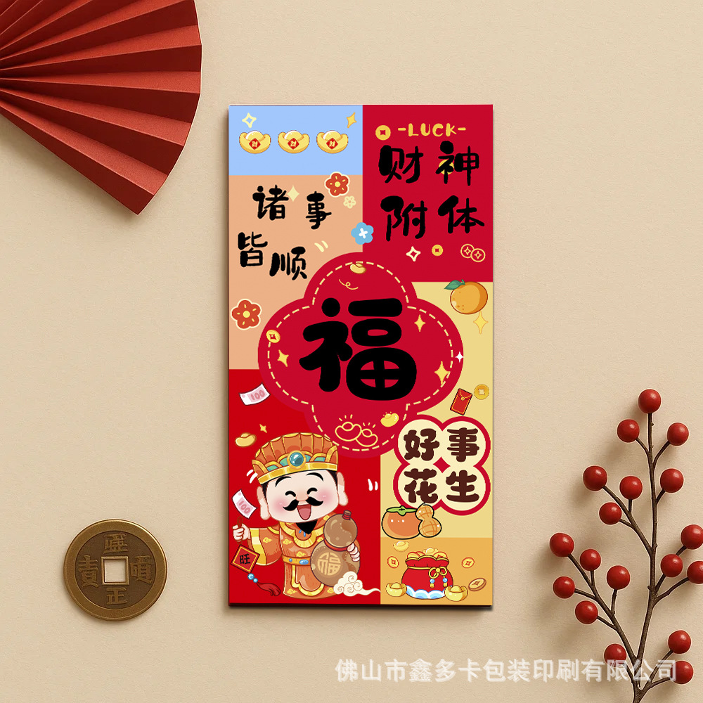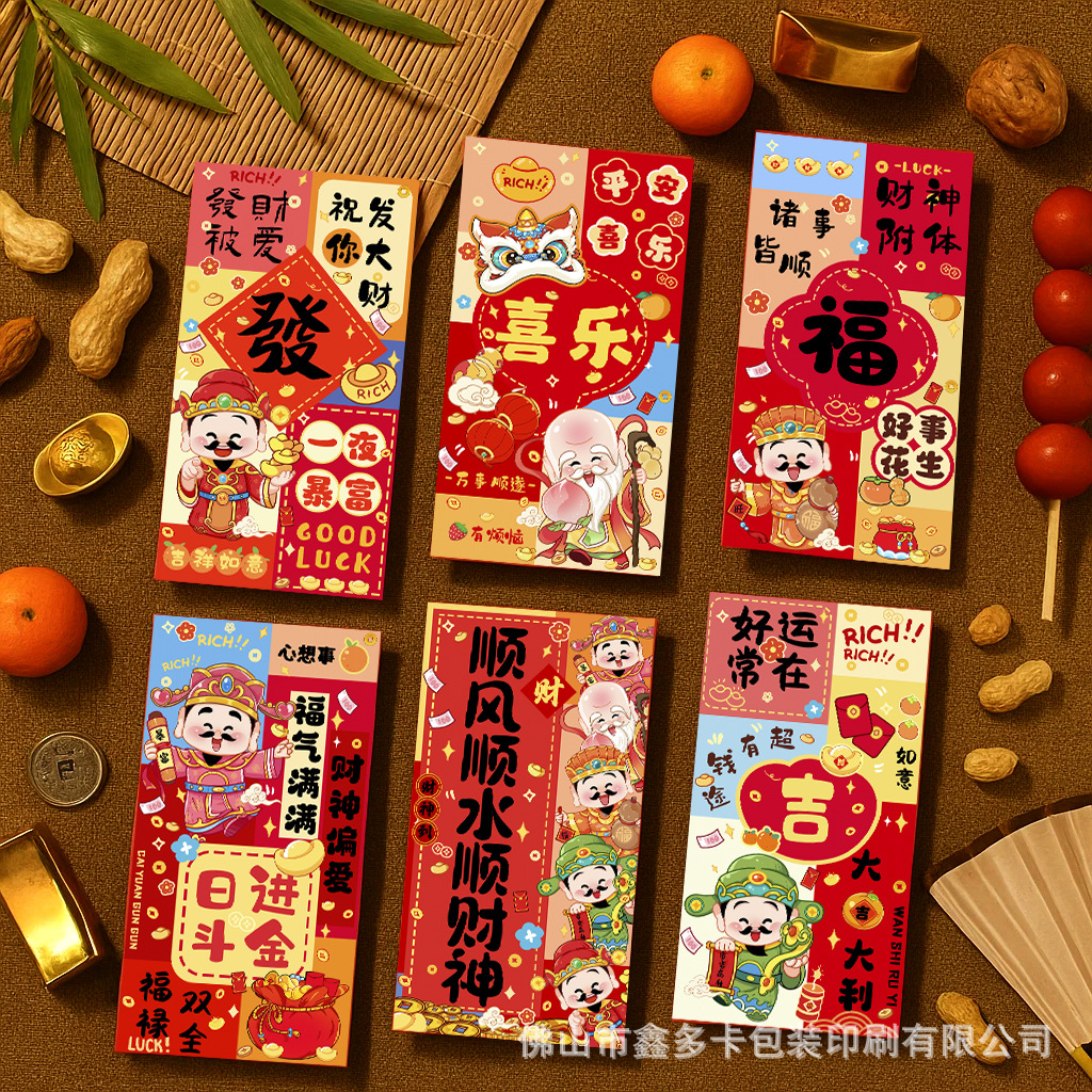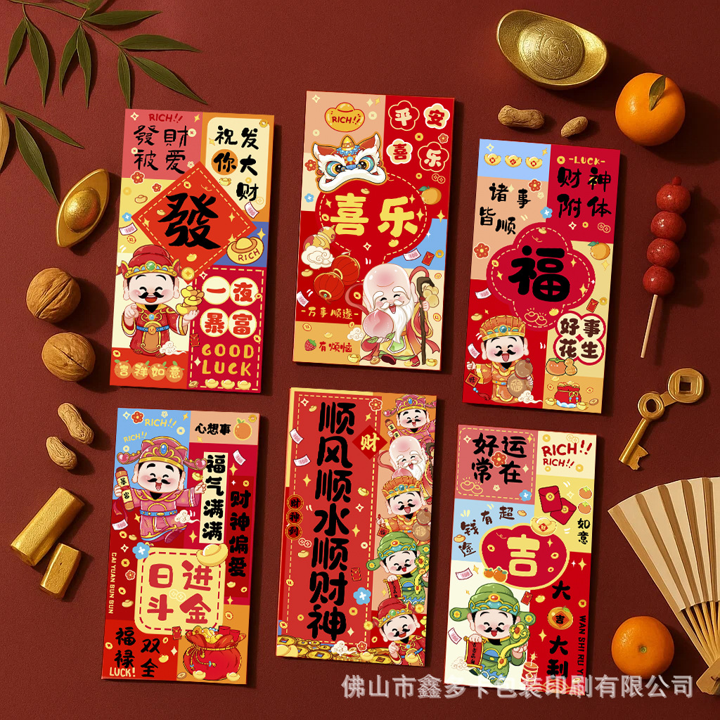 2026马年书法红包制定logo过年压岁包财神利是封烫金红包现货批发