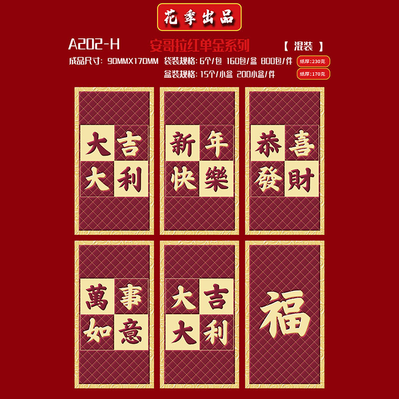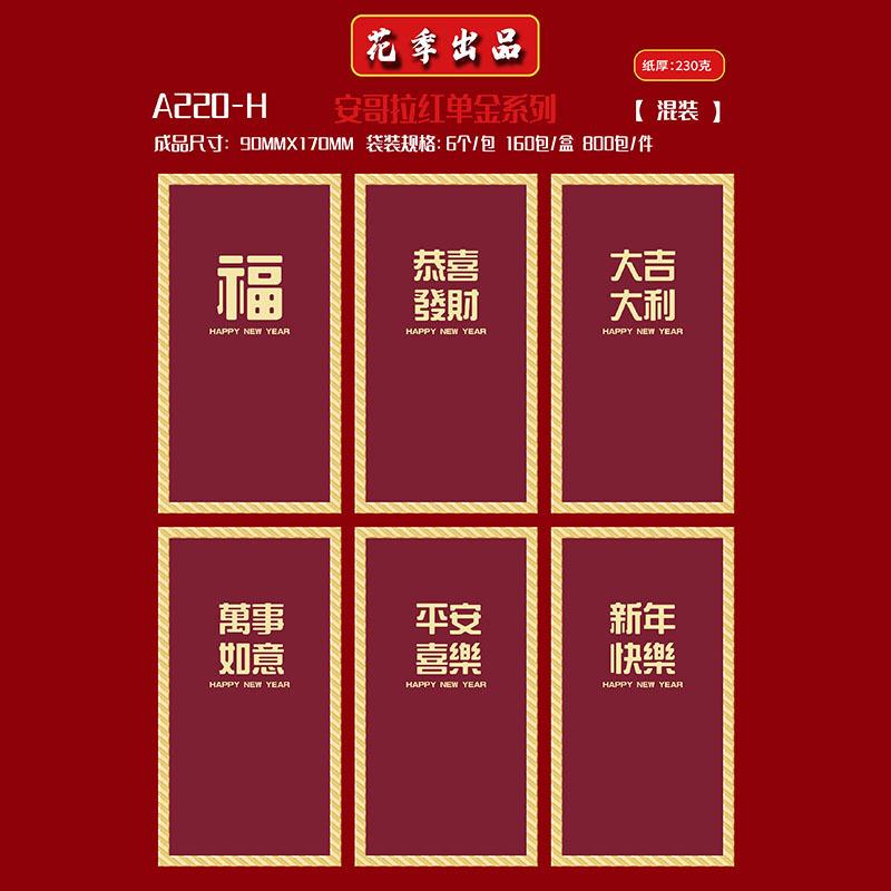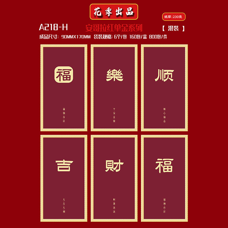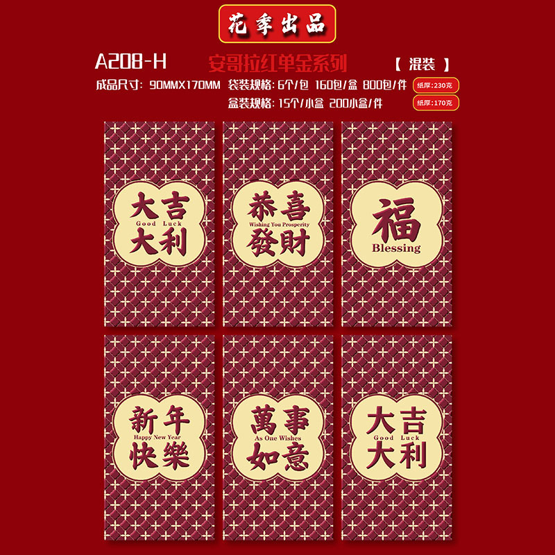| 9 * 17cm (long 1000 yuan red envelope)(9*17CM(长款千元红包)) | USD $0.0 | 3320 piece available |