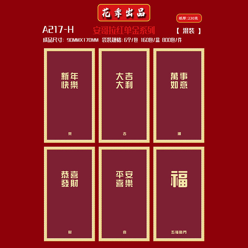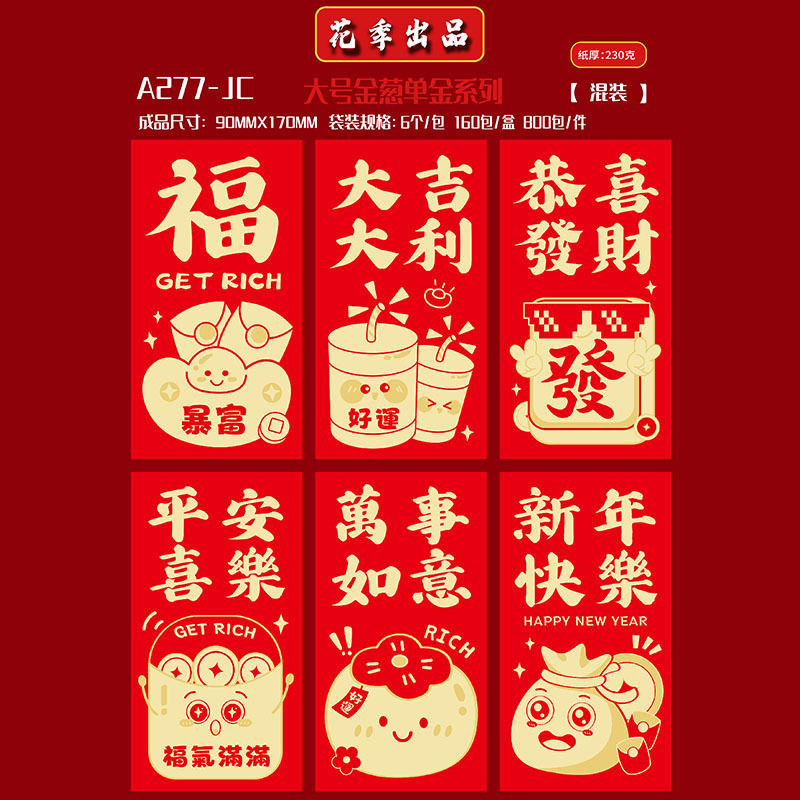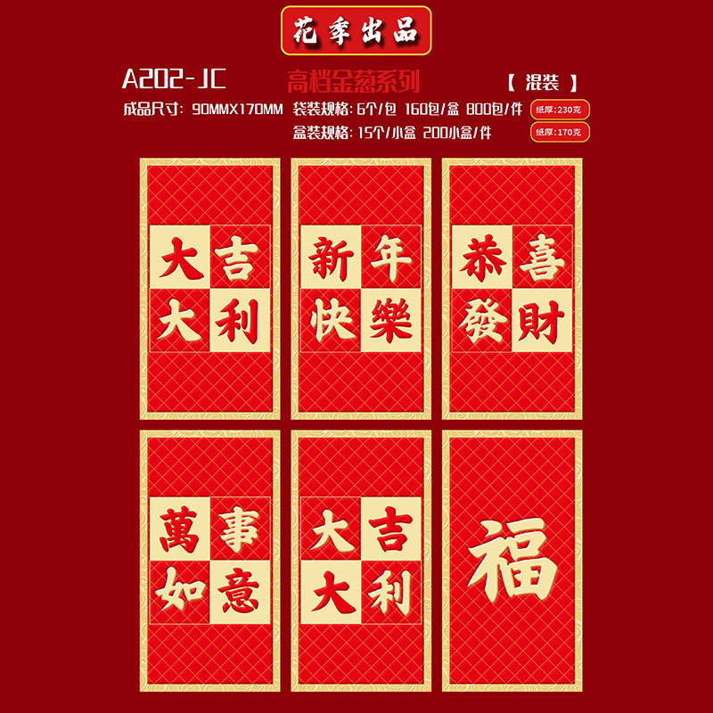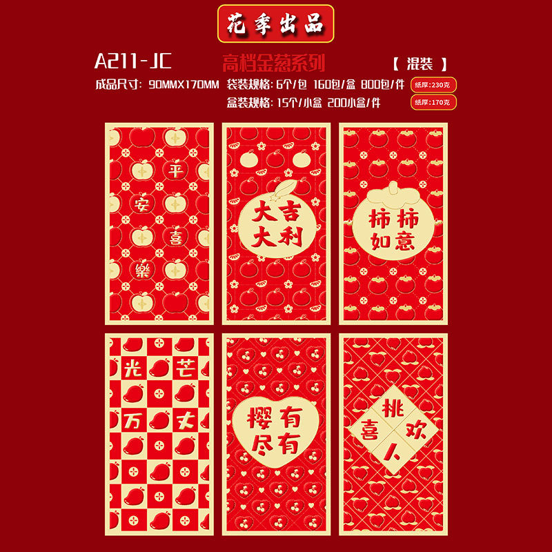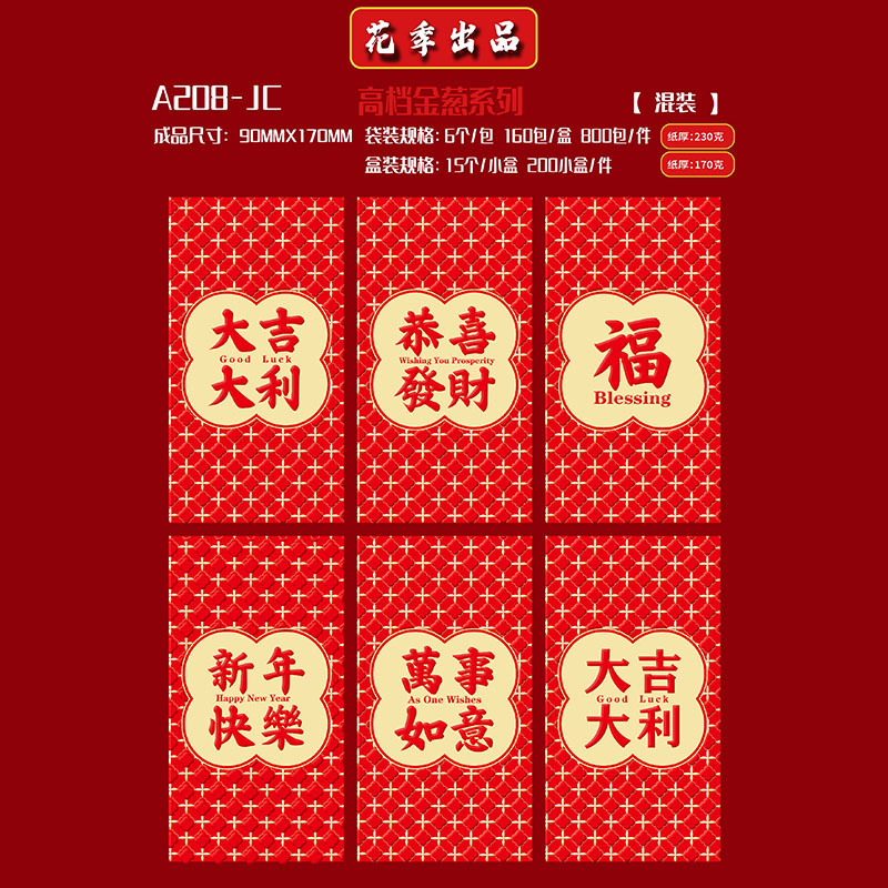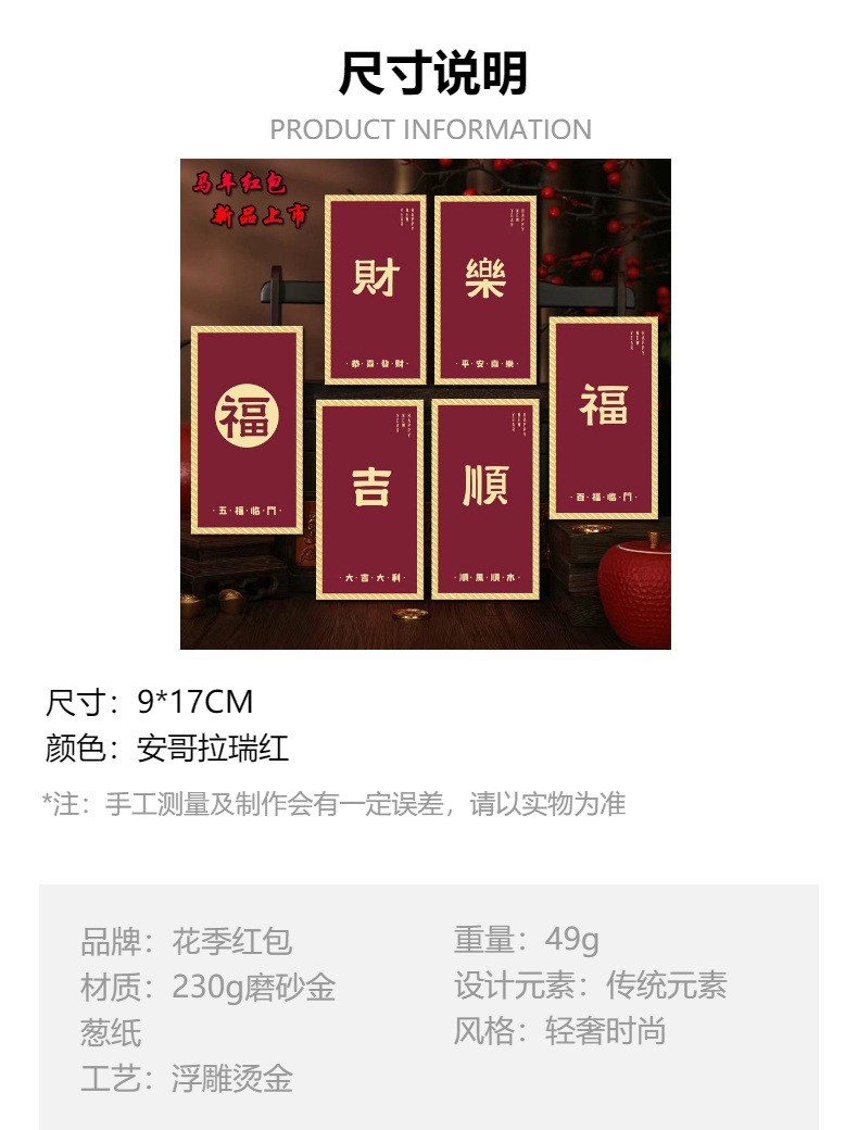 | 9 * 17cm (long 1000 yuan red envelope)(9*17CM(长款千元红包)) | USD $0.0 | 4880 piece available |