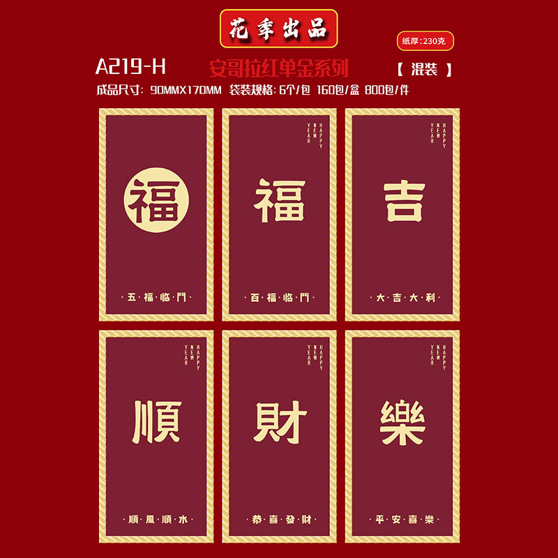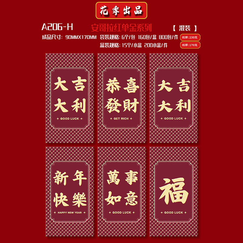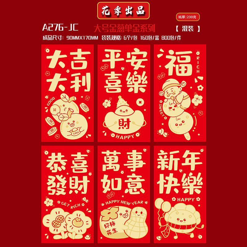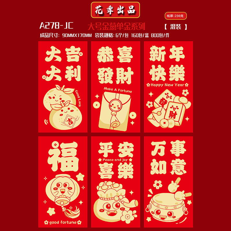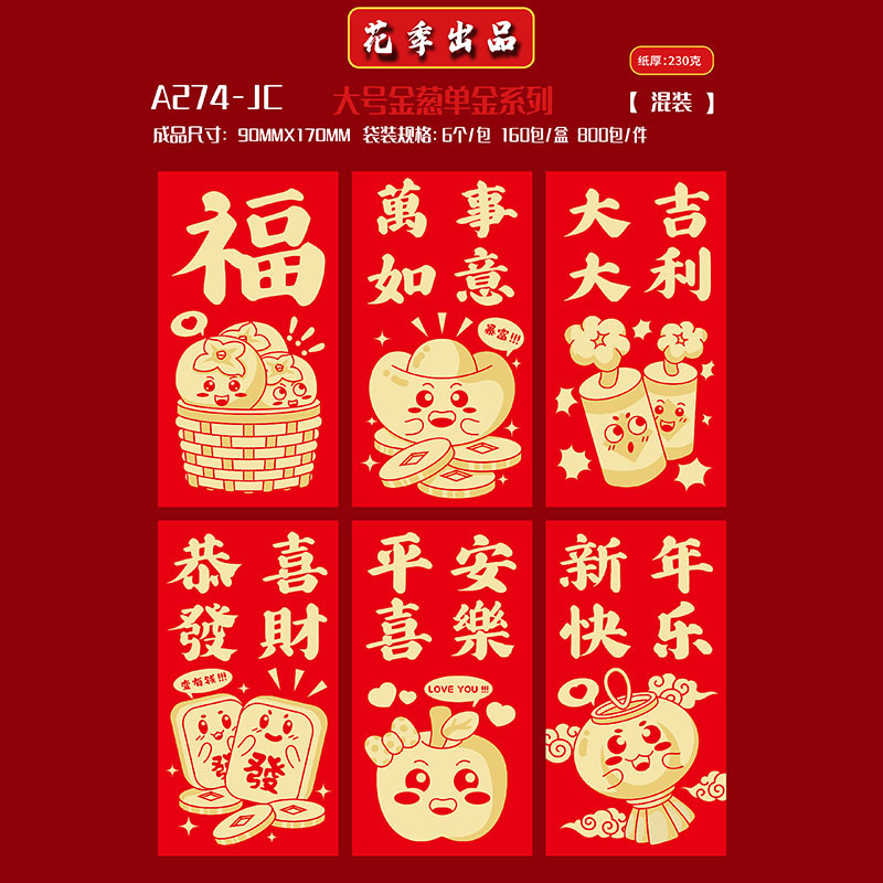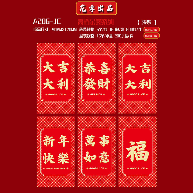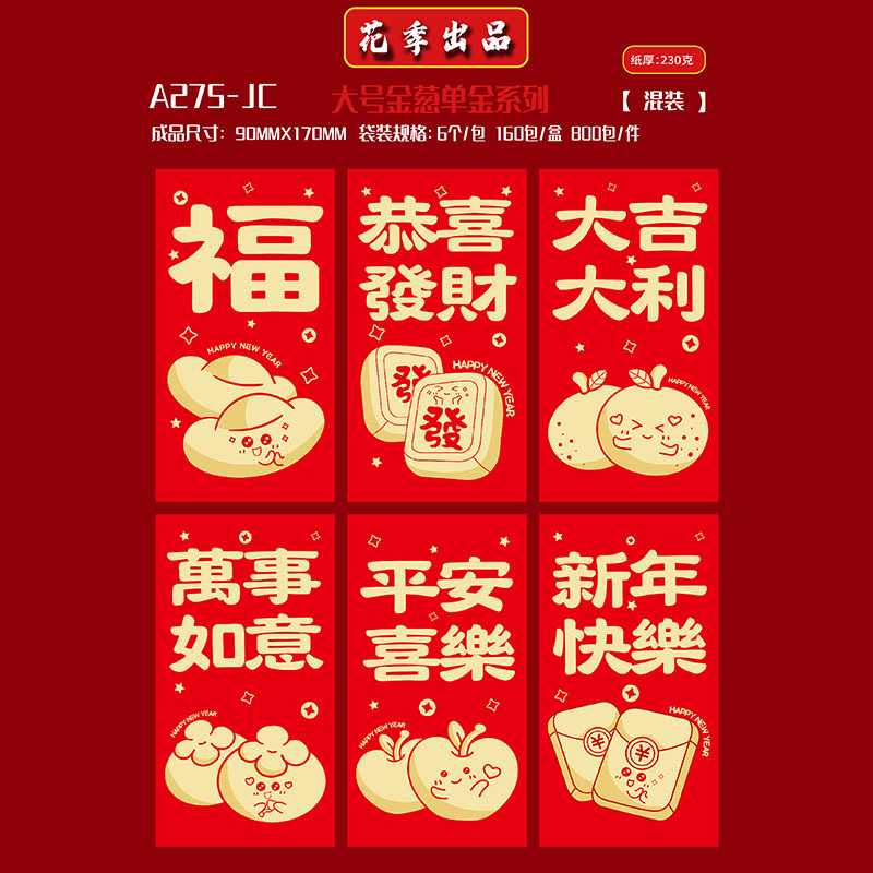 | 9 * 17cm (long 1000 yuan red envelope)(9*17CM(长款千元红包)) | USD $0.0 | 4880 piece available |