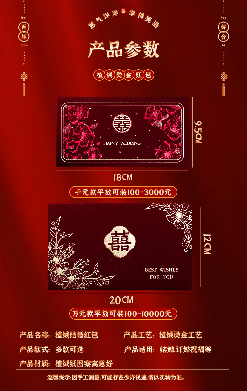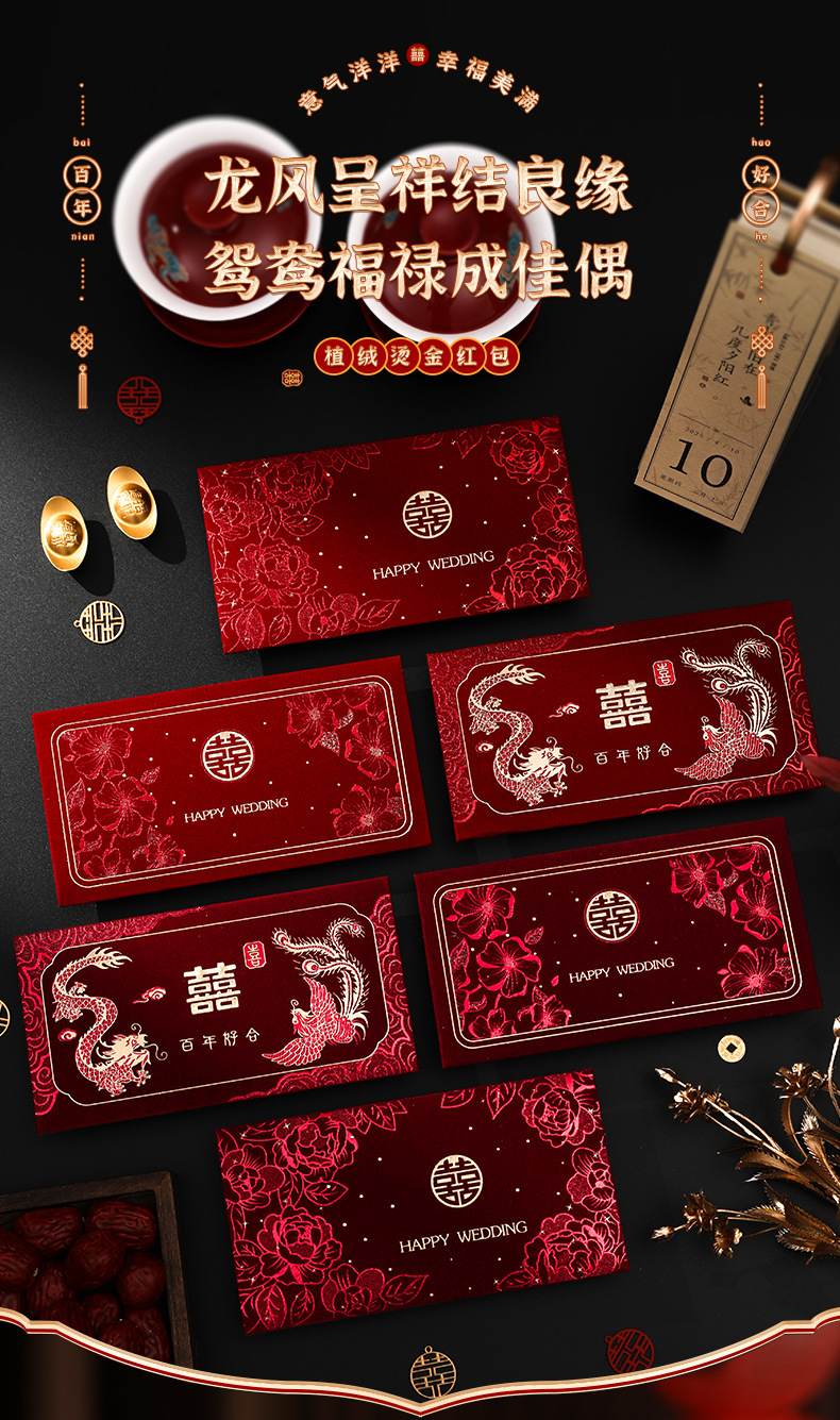 2025新款植绒喜字结婚红包高级感万元大喜包敬茶改口费千元利是封