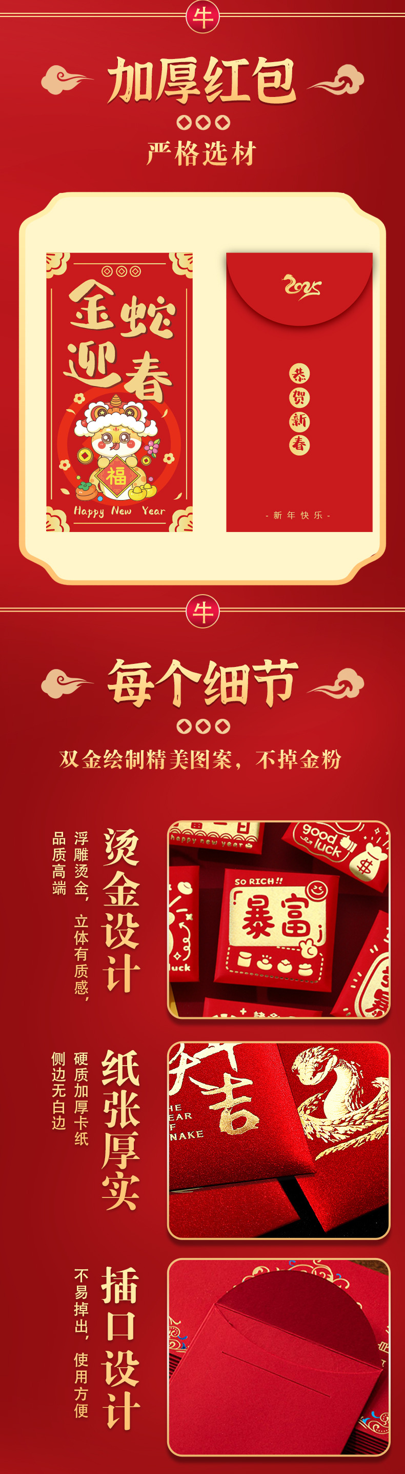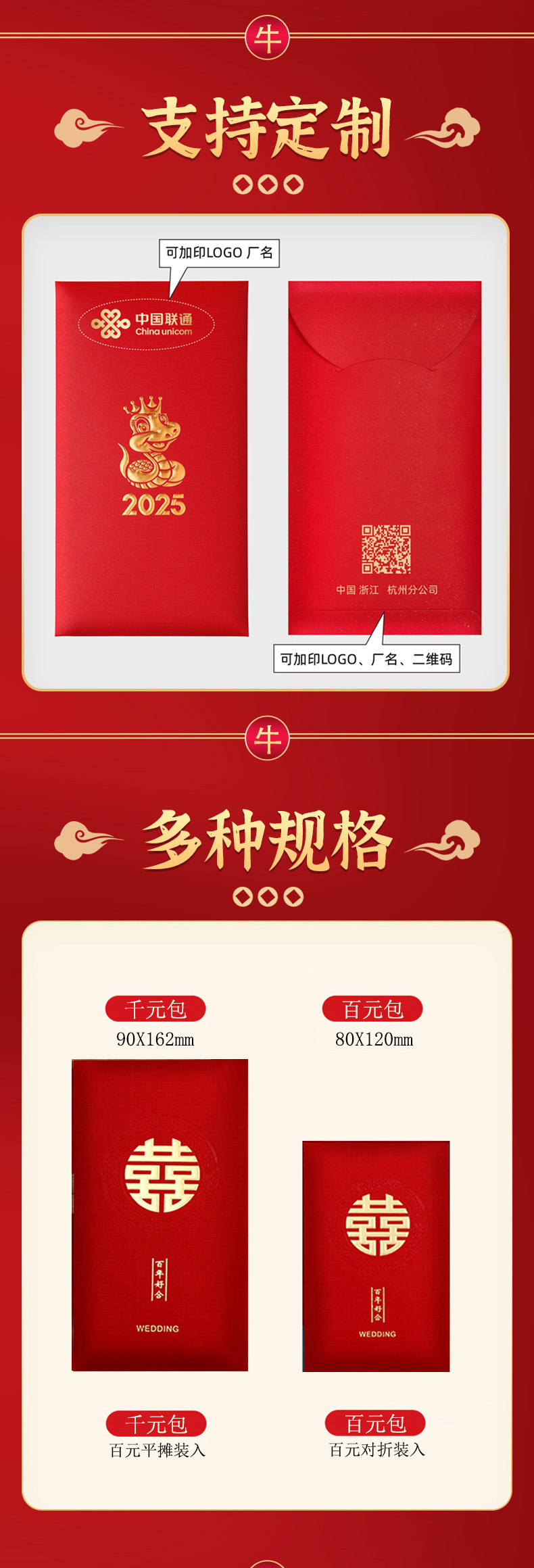 马年新款红包定制烫金生肖卡通文字利是封企业logo定做红包2026年