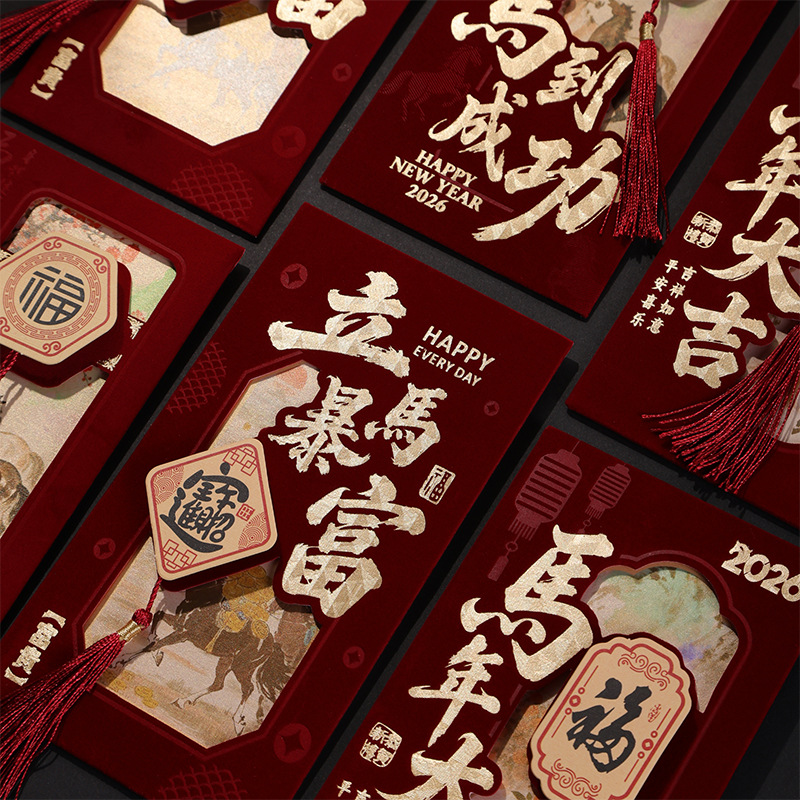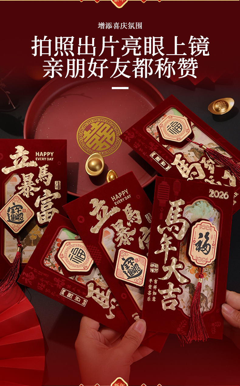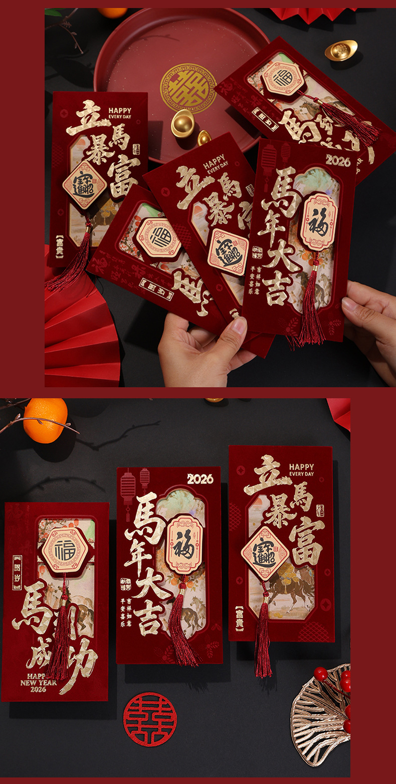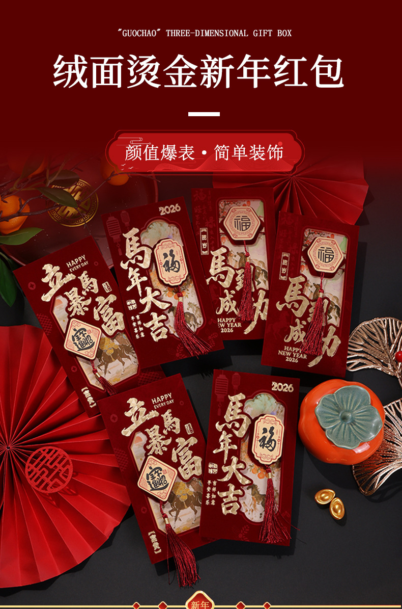 新品首发马年创意红包批发2026过年拜年压岁包高档绒面新年红包袋