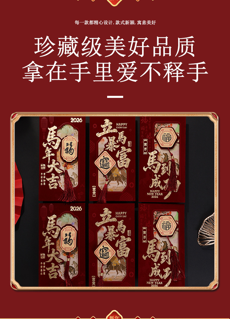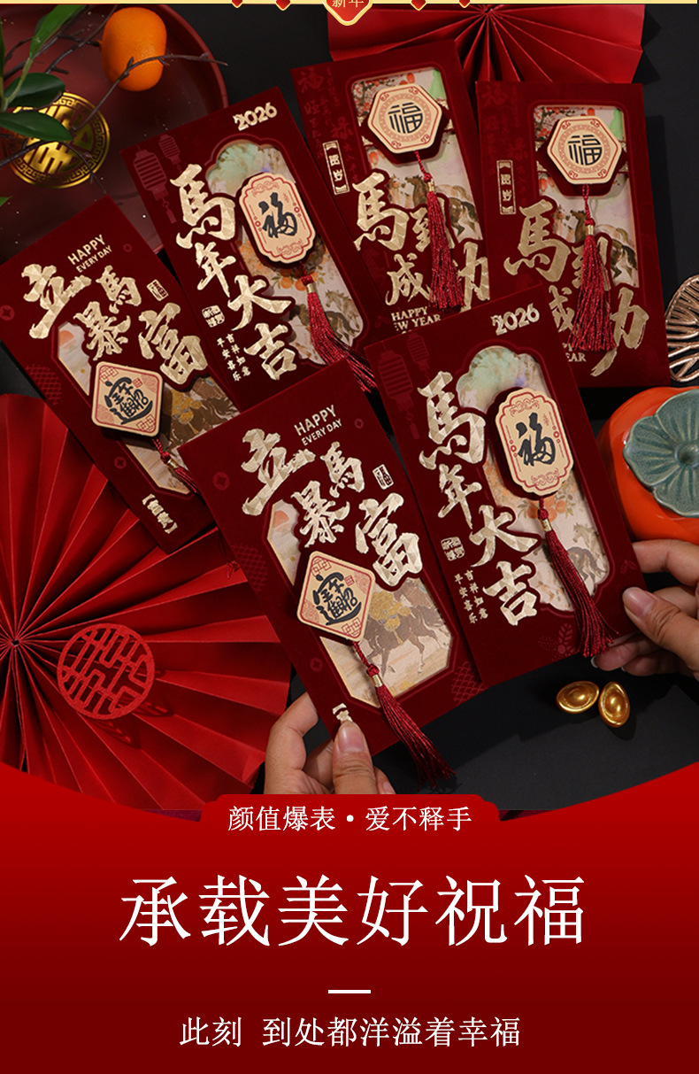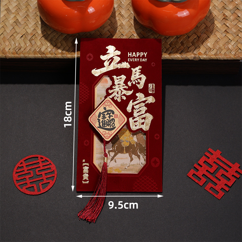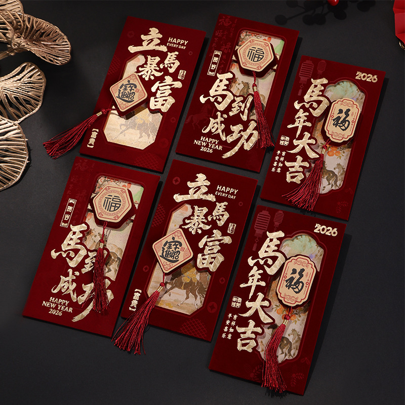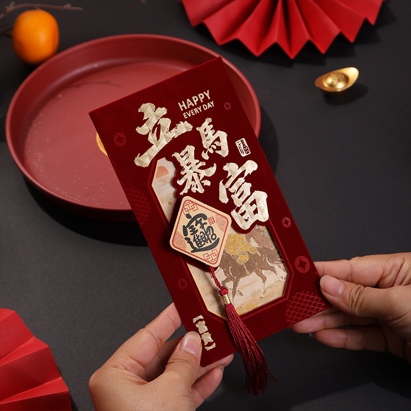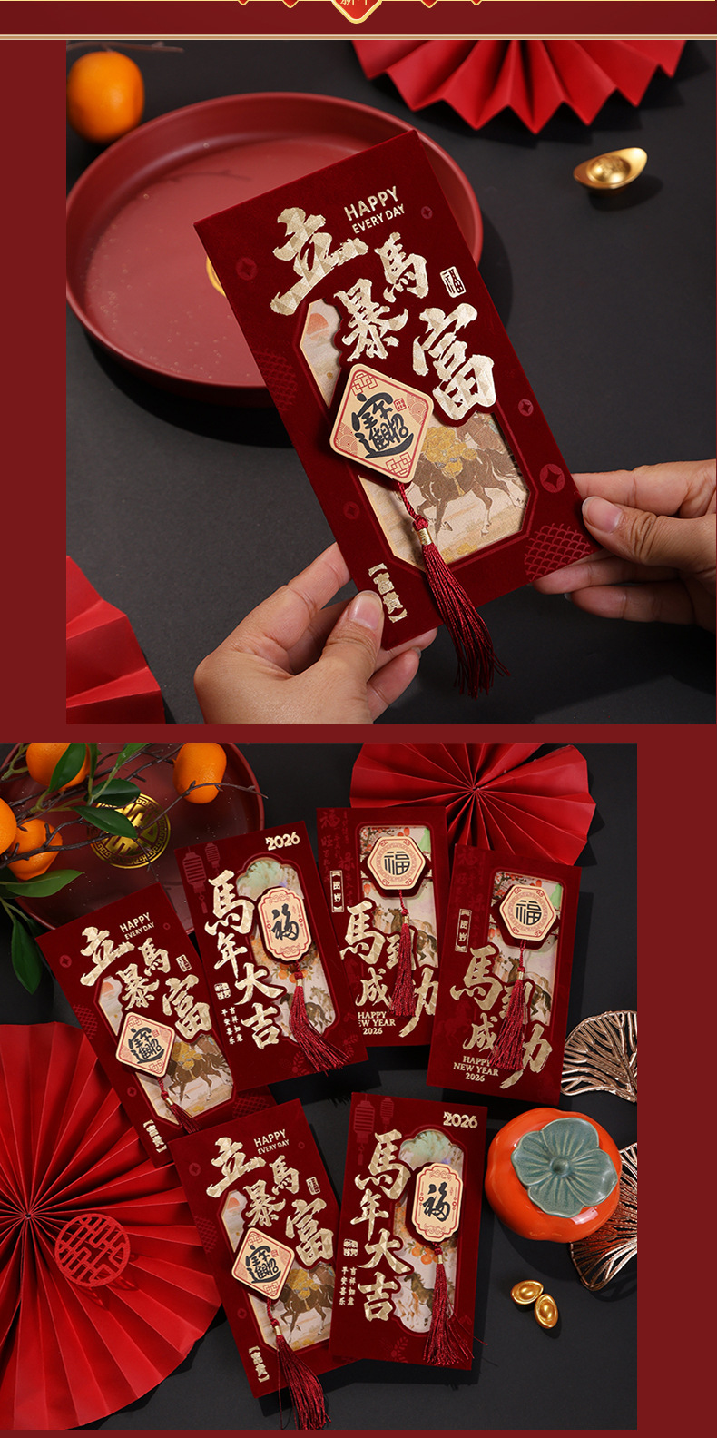 新品首发马年创意红包批发2026过年拜年压岁包高档绒面新年红包袋