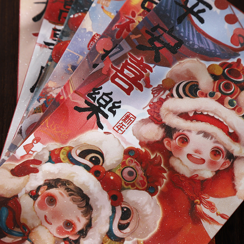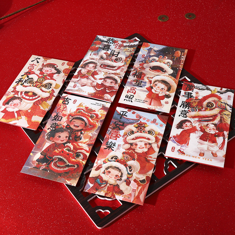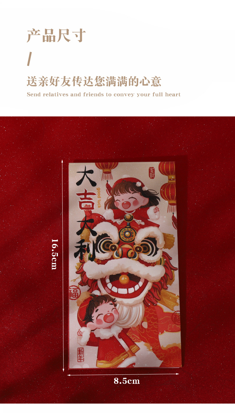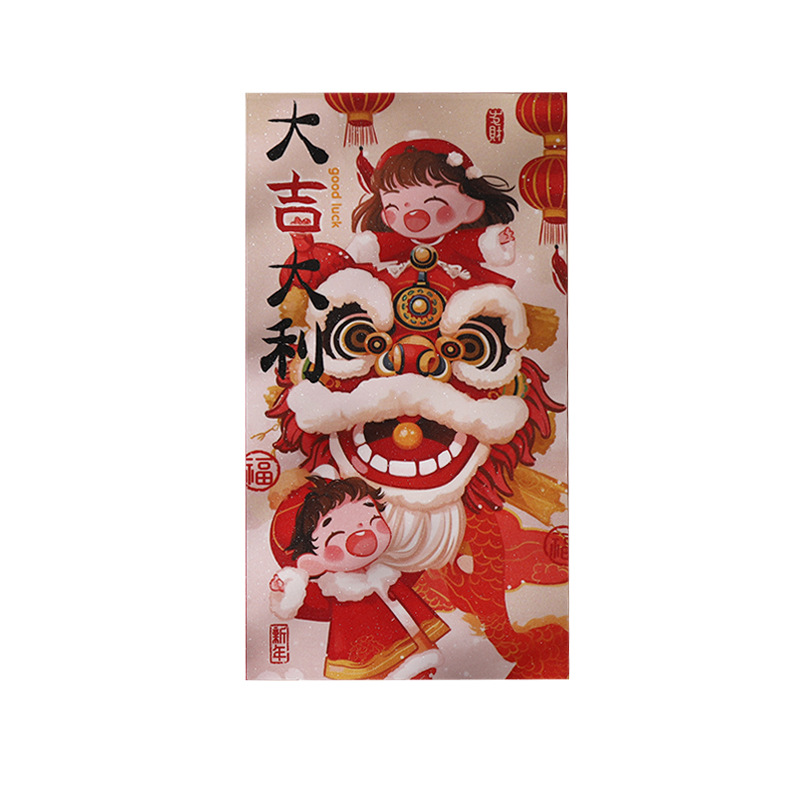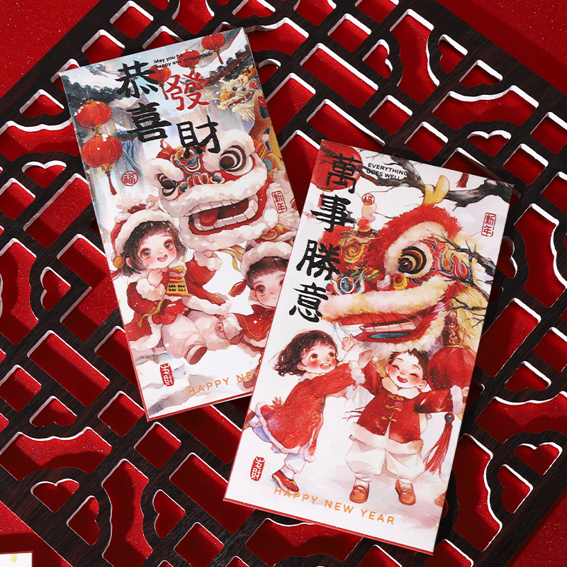 2025抖音爆款红包国潮蛇年复古醒狮萌娃金聪膜磨砂面红包利是封袋