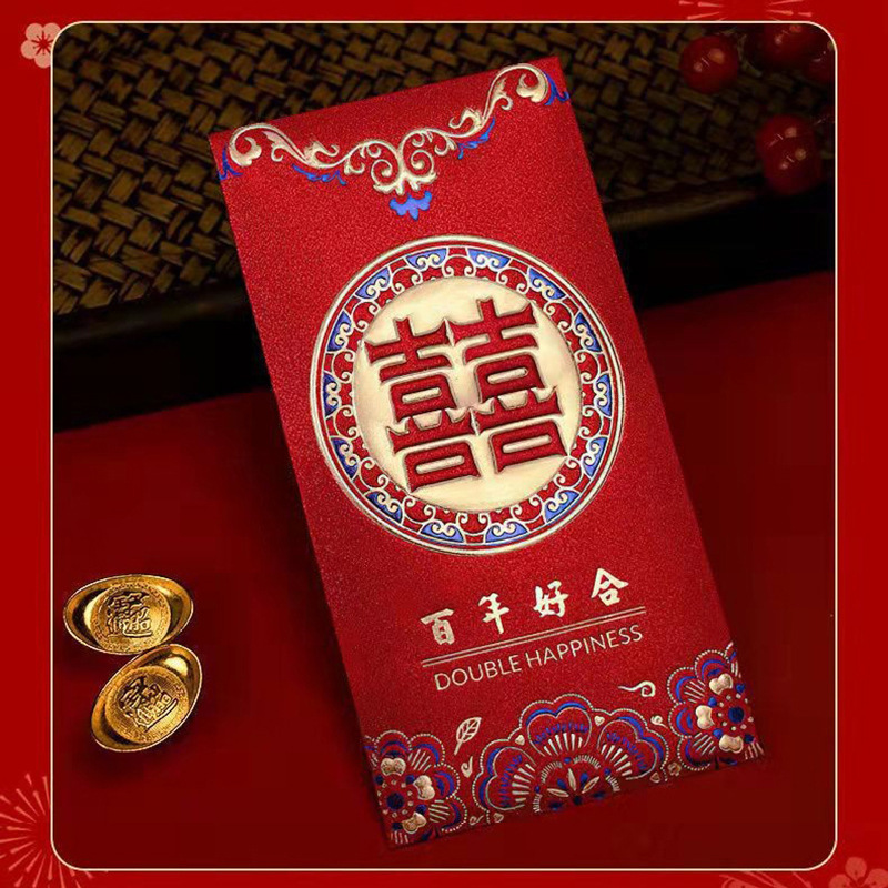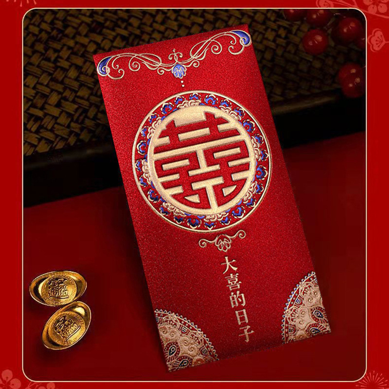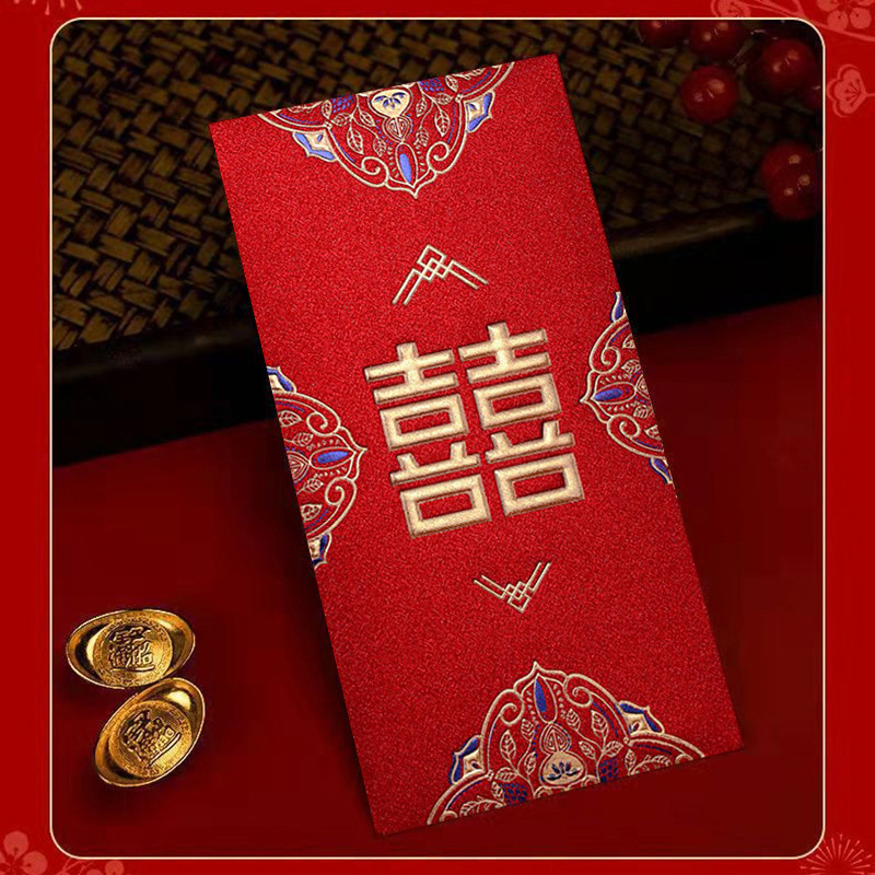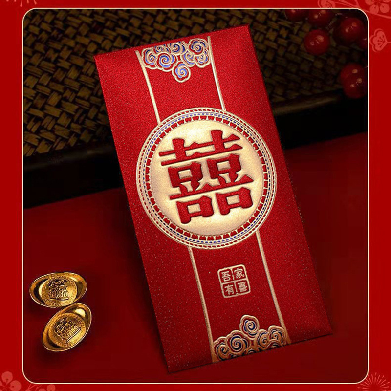 2025蛇年烫金磨砂加厚金葱红包袋结婚新年快乐千元喜字创意利是封