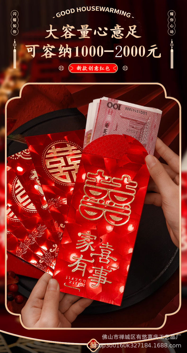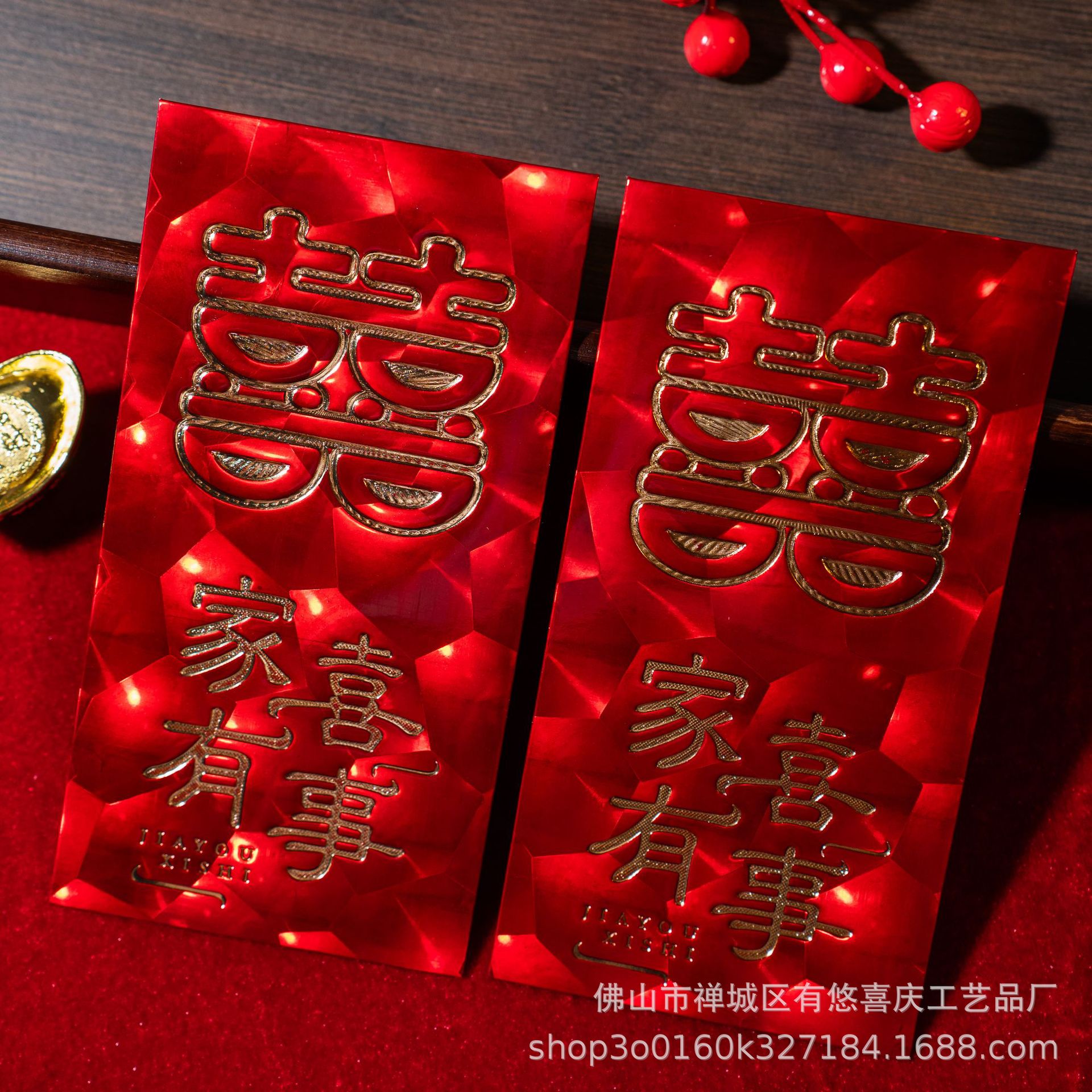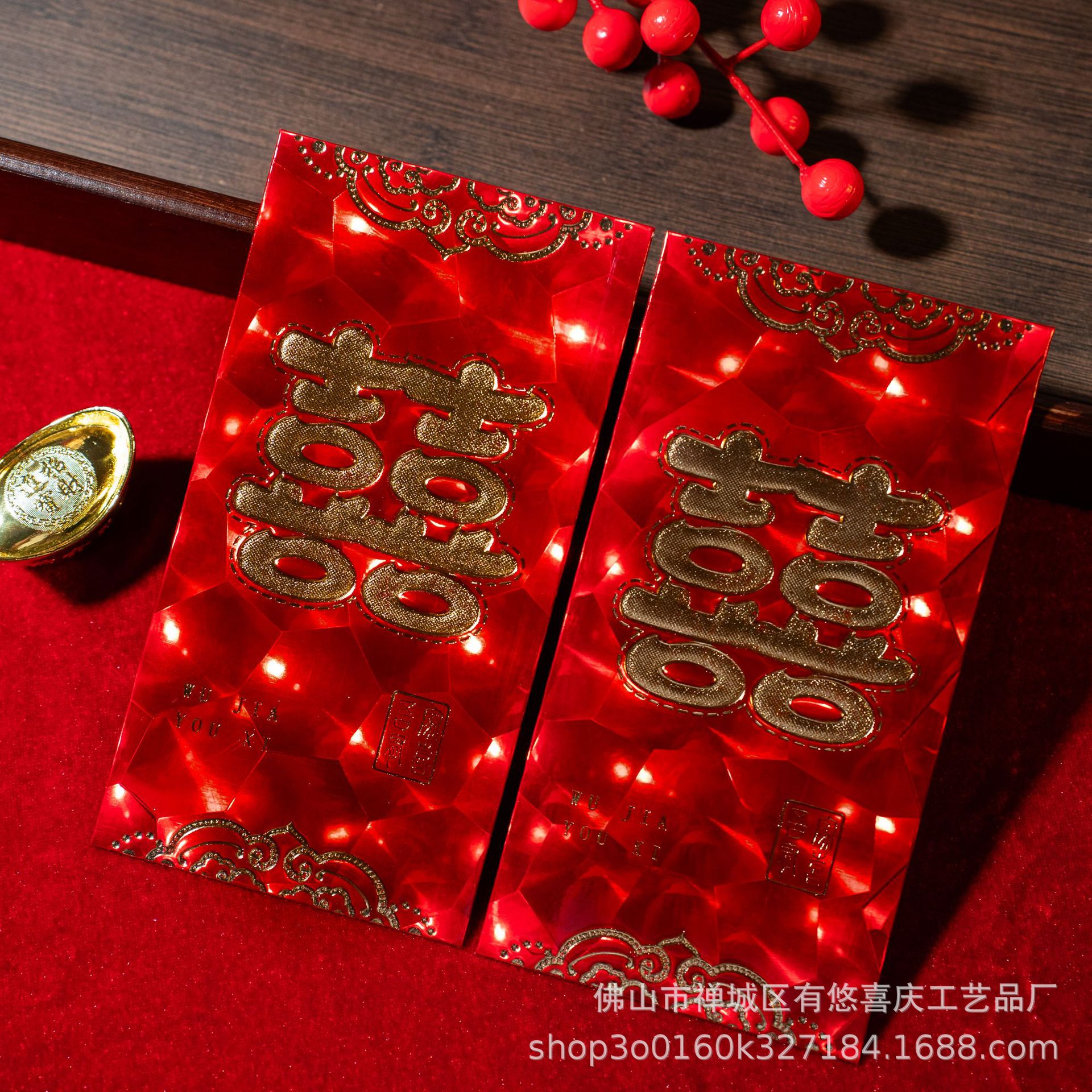 结婚千元3D磨砂红包婚礼女方改口送礼镭射烫金婚庆喜字利是封潮