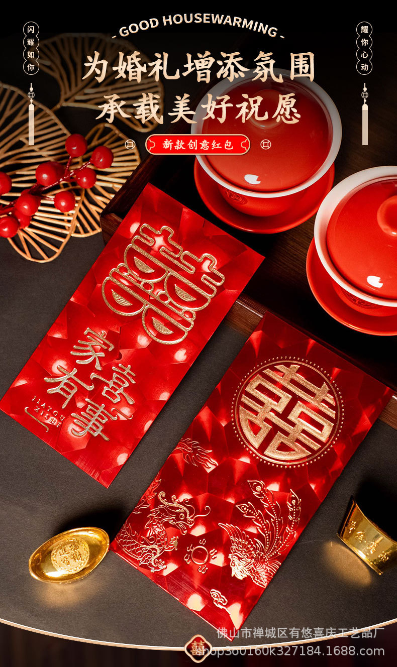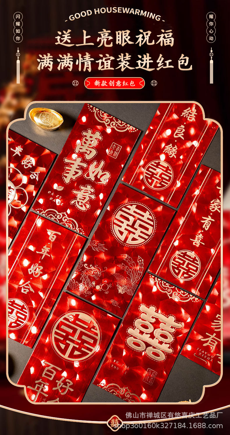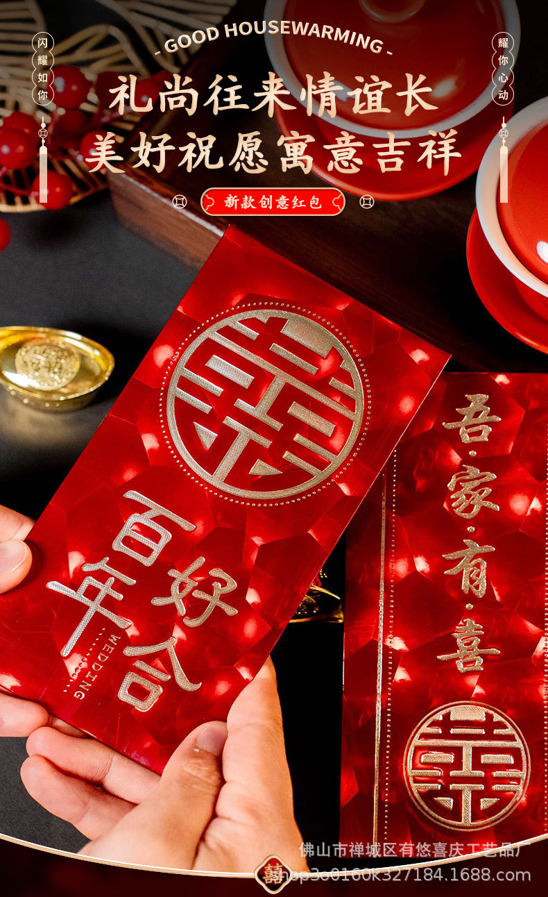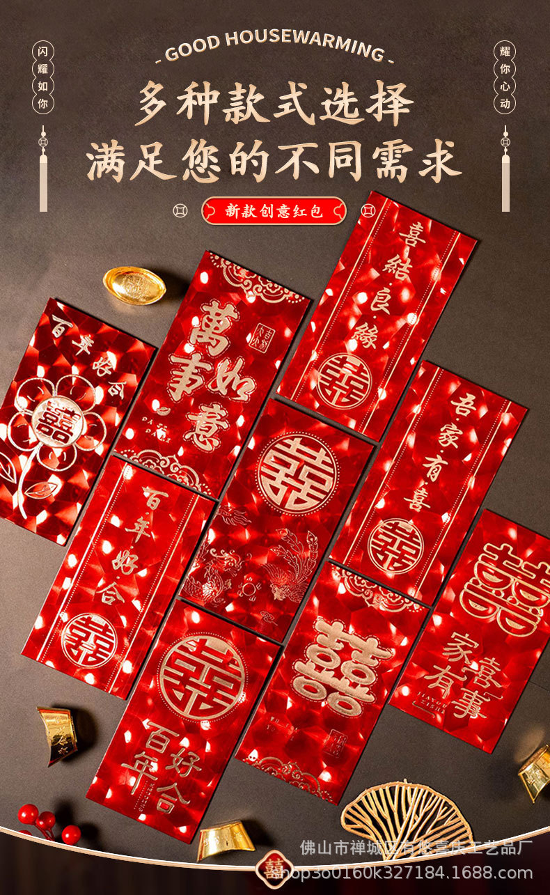 结婚千元3D磨砂红包婚礼女方改口送礼镭射烫金婚庆喜字利是封潮