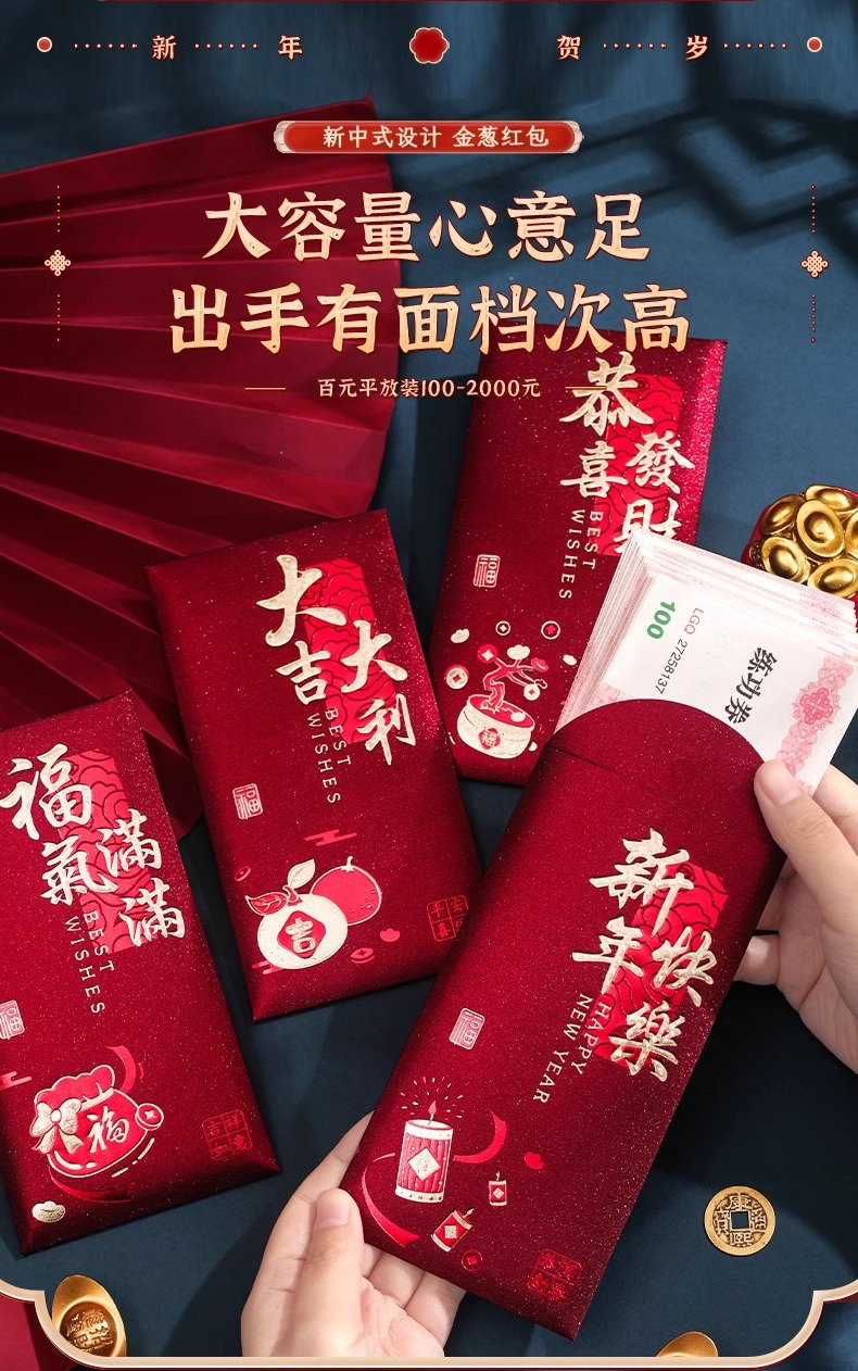 | 1000 yuan red envelope 17 * 9cm [one hundred yuan flat can hold 2000 yuan]](千元红包17*9cm【百元平放可装2000元】) | USD $0.0 | 93781 pack available |
