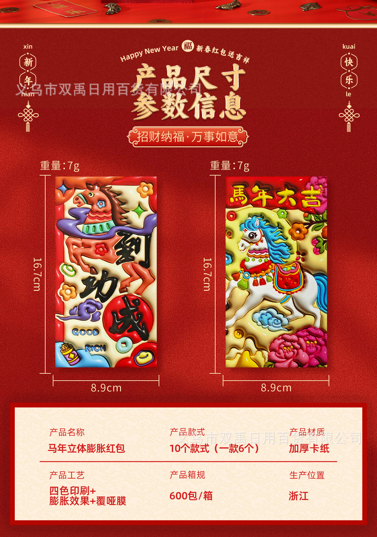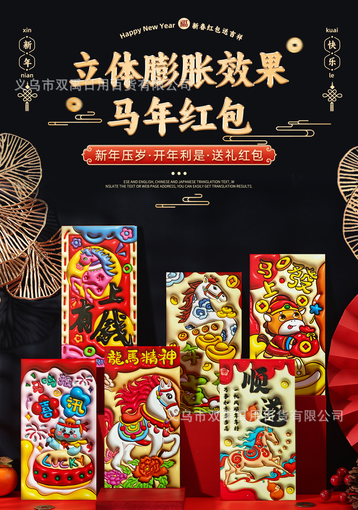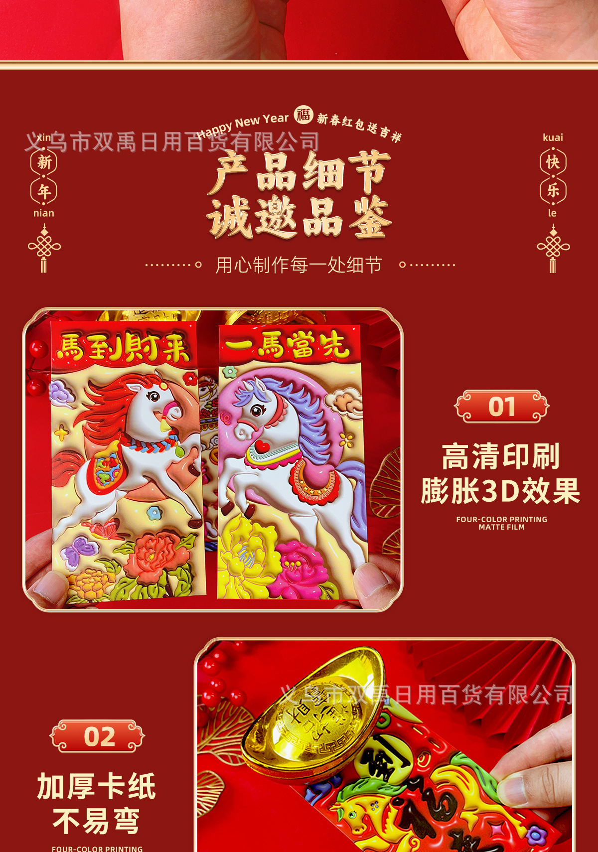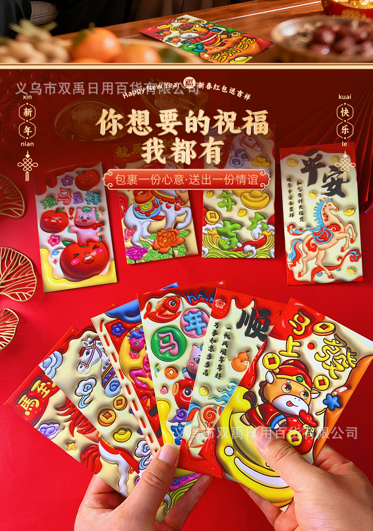 2026年新年爆款红包立体膨胀工艺高档个性马年生肖春节压岁红包