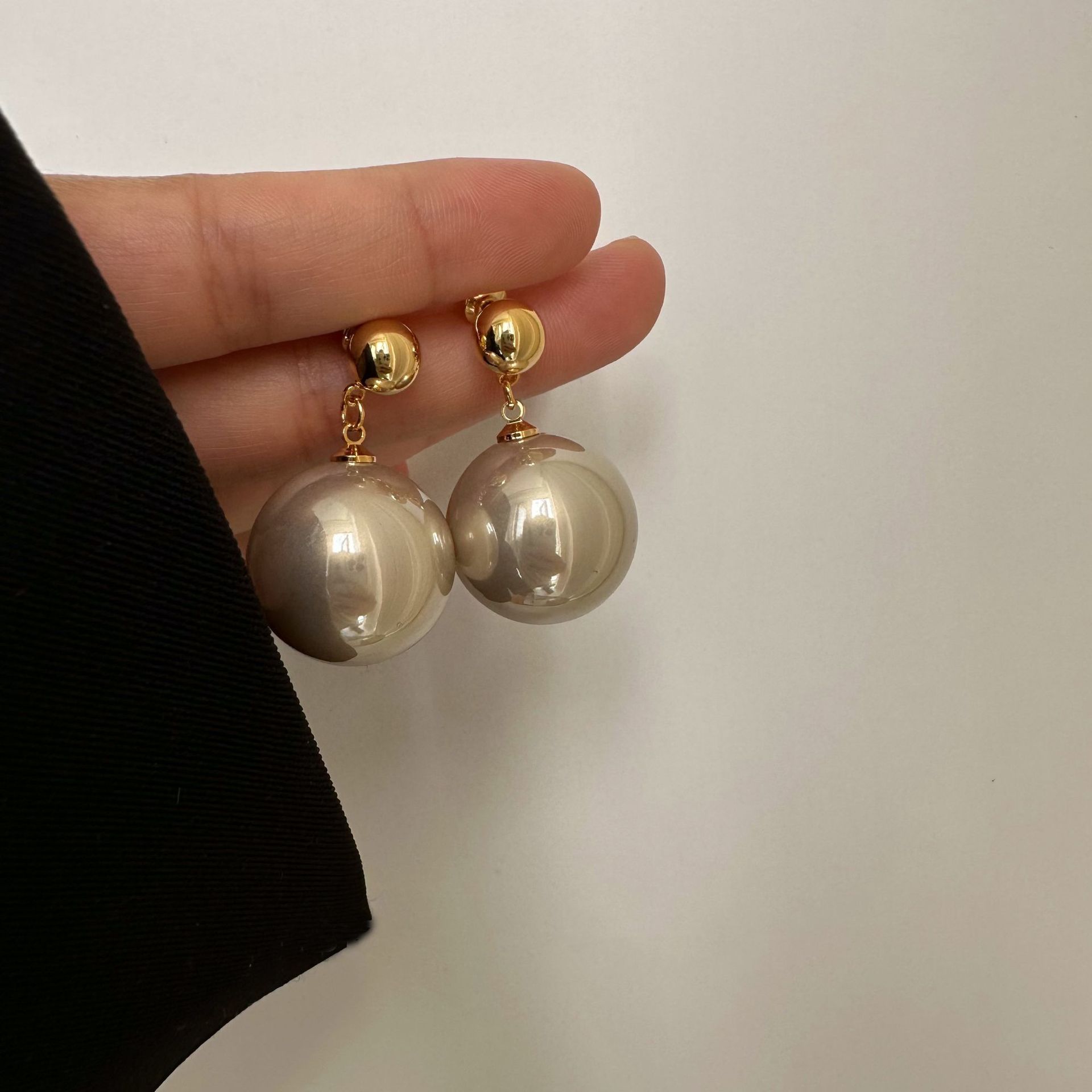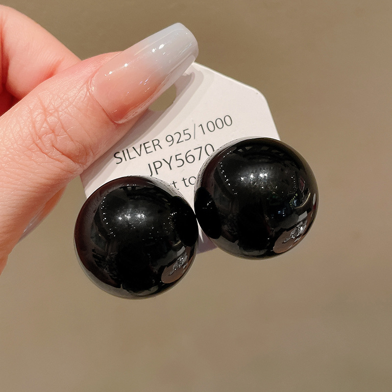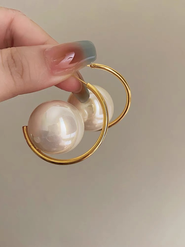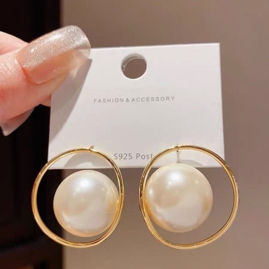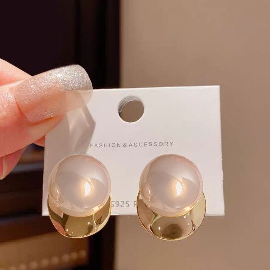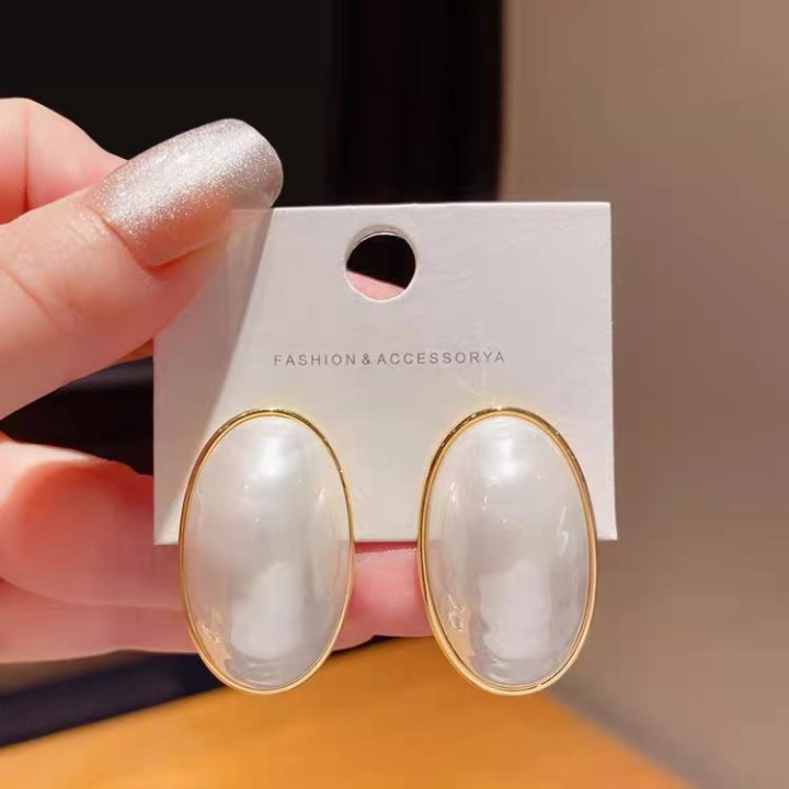 真金电镀银针椭圆珍珠耳环冬季复古百搭耳钉时尚高级感耳饰批发女