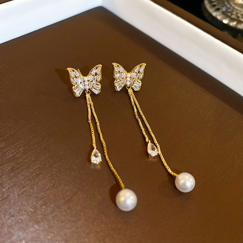 银针锆石圆形人造珍珠耳环高级感轻奢复古耳坠独特法式设计耳饰女
