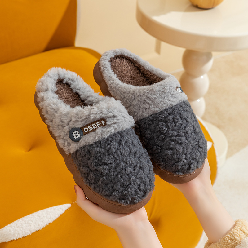 棉拖鞋女秋冬季月子室内家居家防滑厚底踩屎感毛绒拖鞋情侣棉拖男