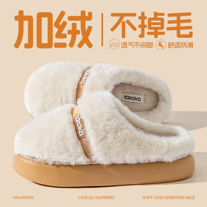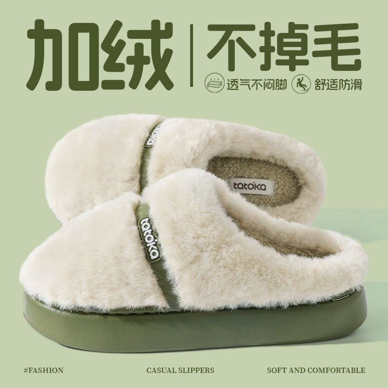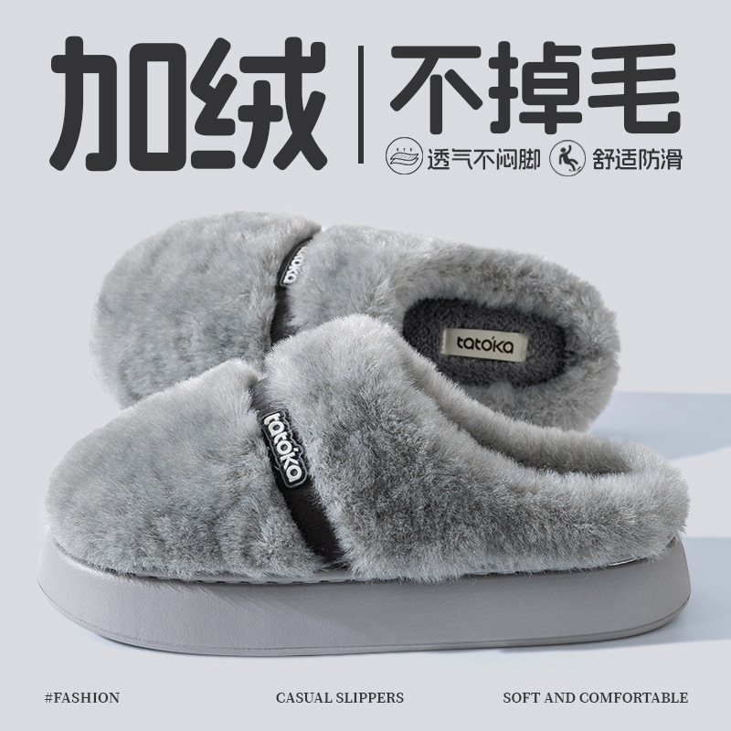 加绒棉拖鞋女居家棉拖秋冬季室内家用防滑情侣拖鞋男月子鞋包头鞋