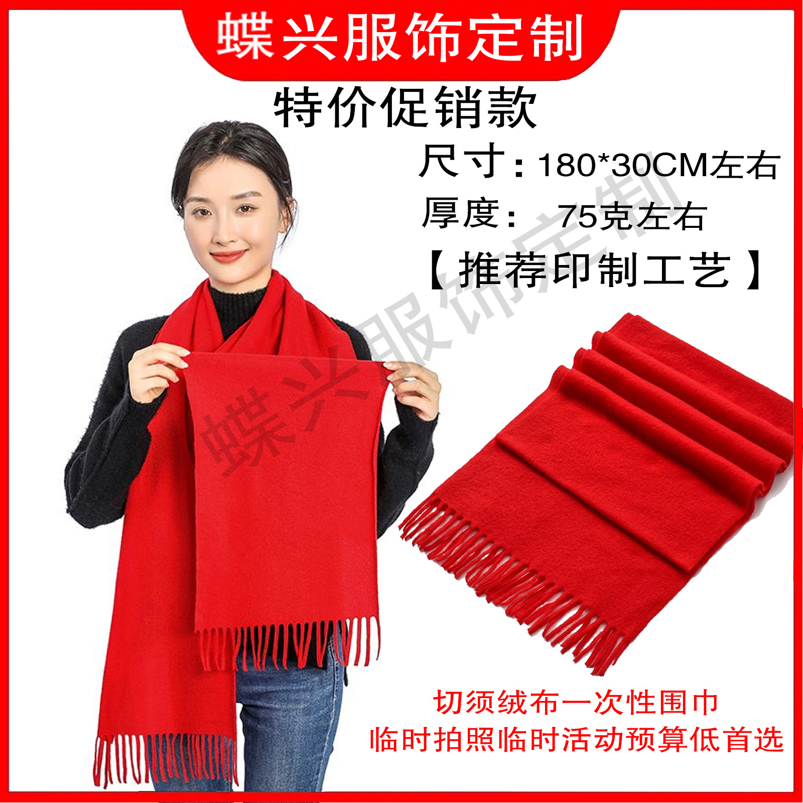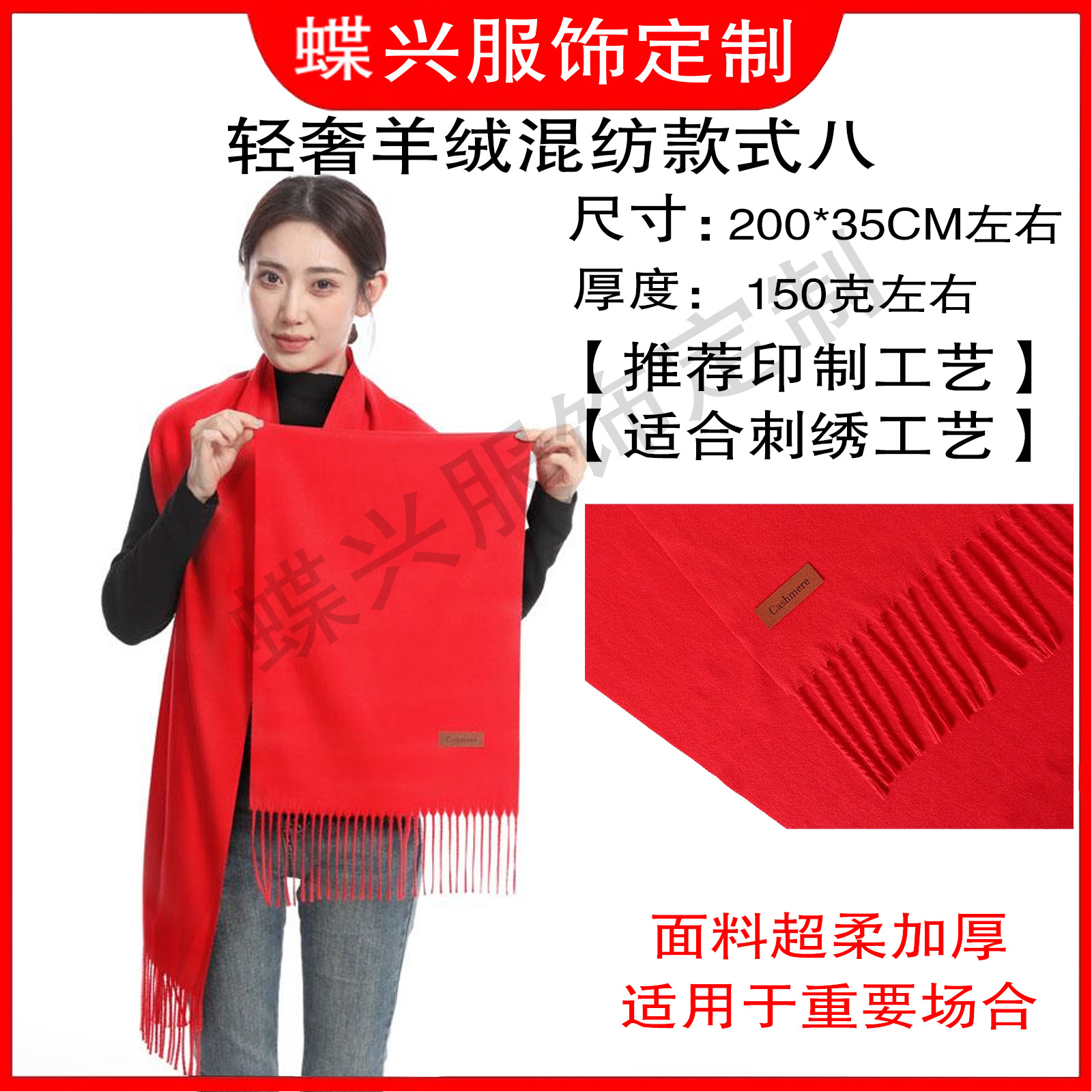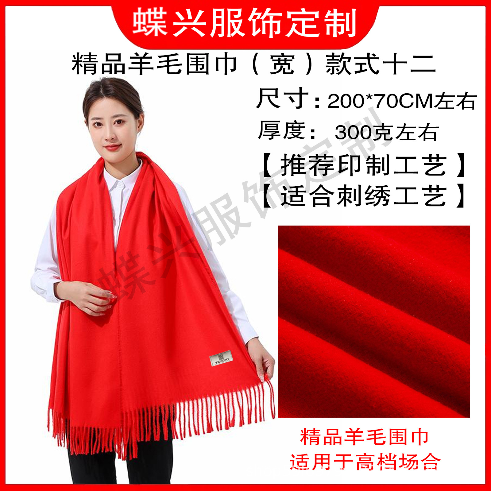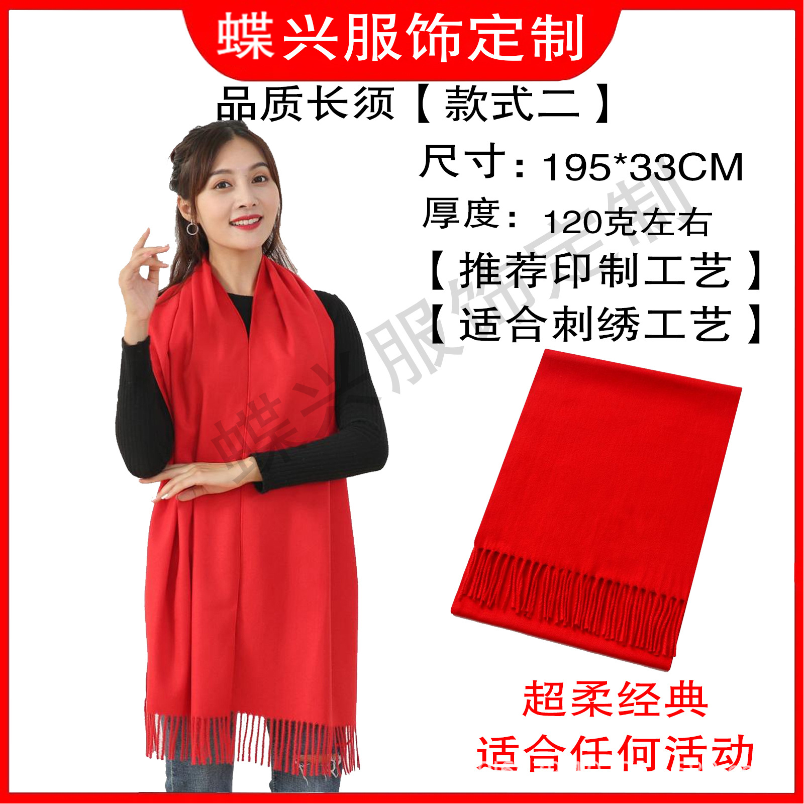 中国红围巾定制LOGO印字商务会议开业活动仿羊绒年会礼品围巾刺绣