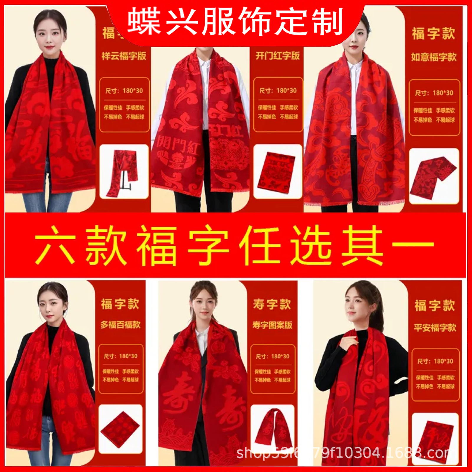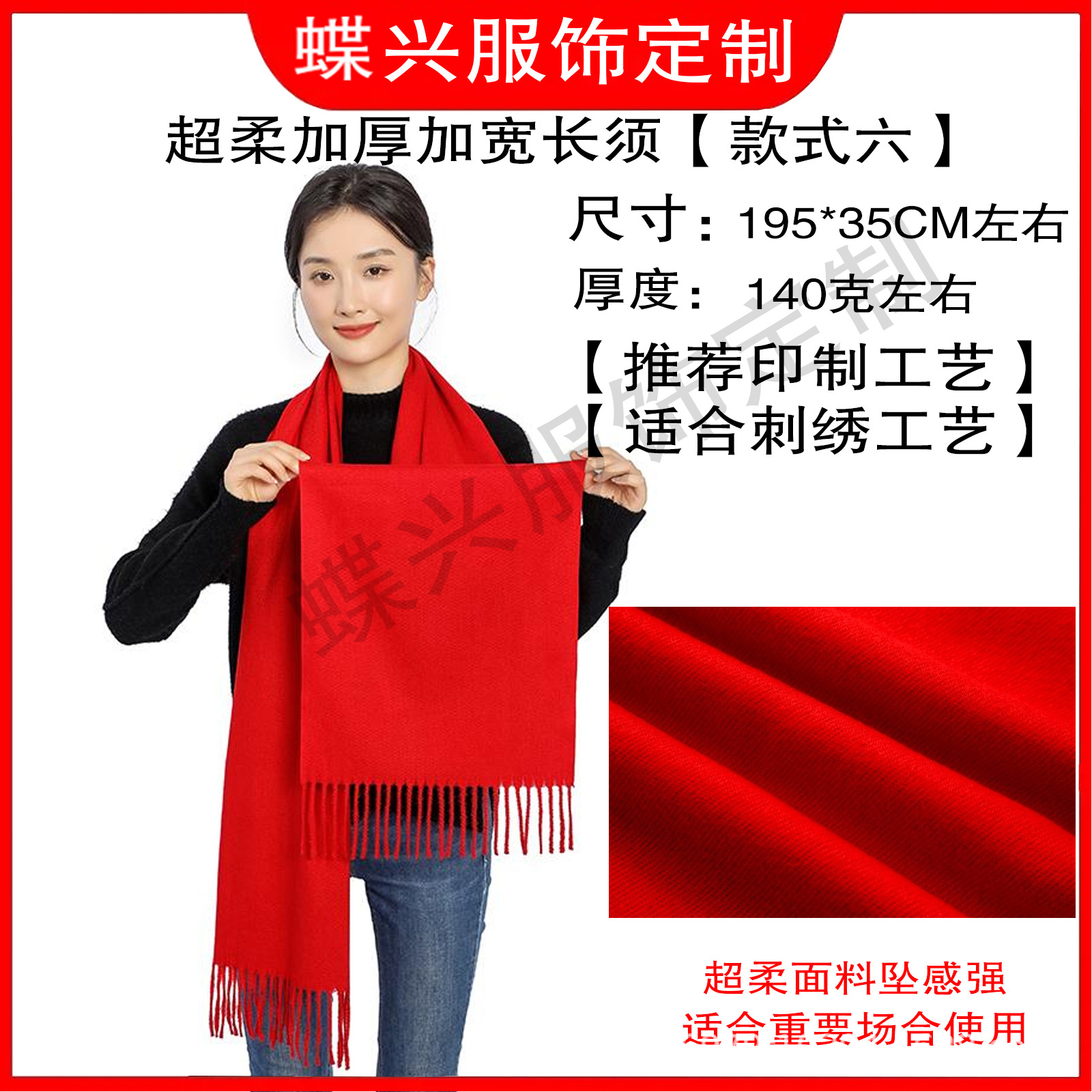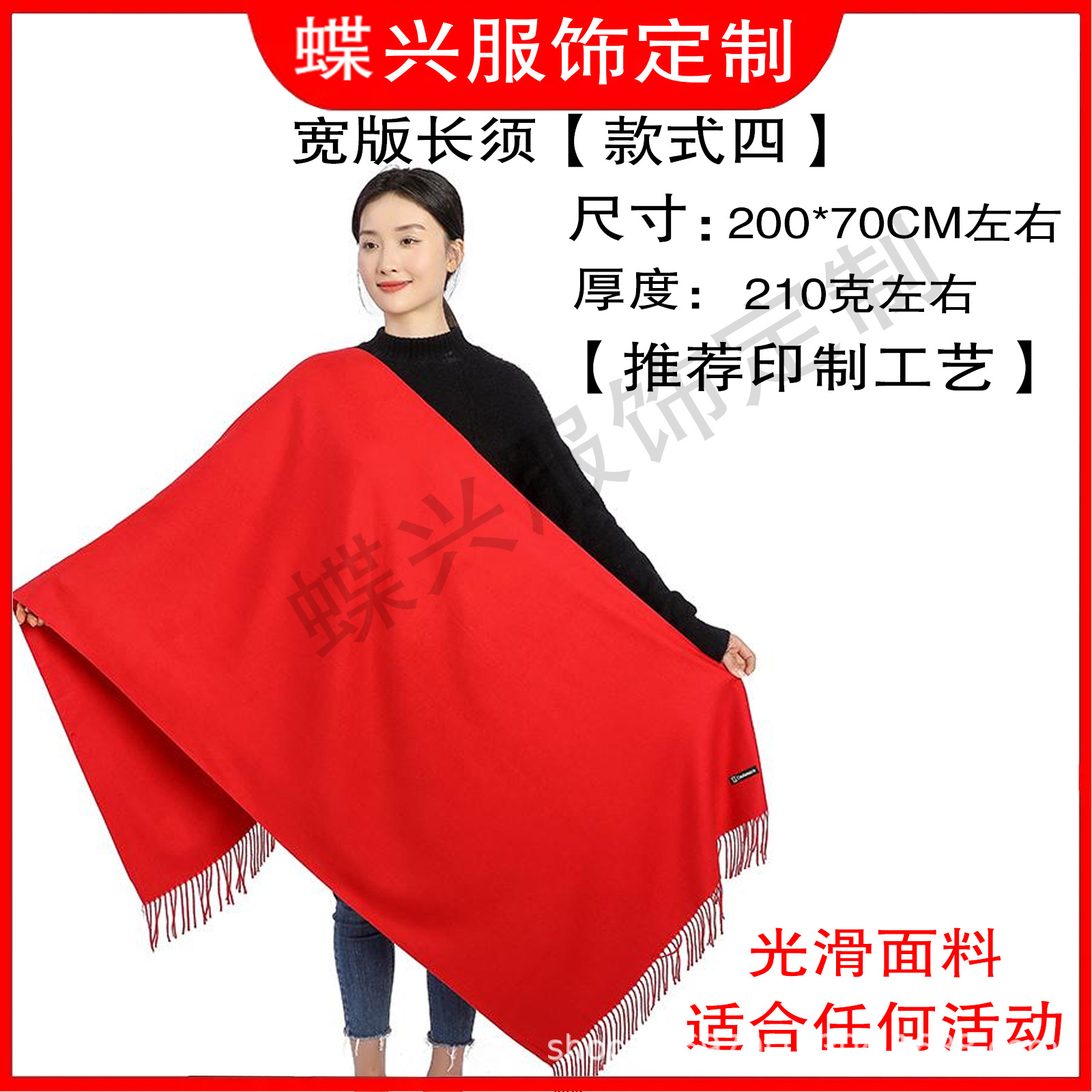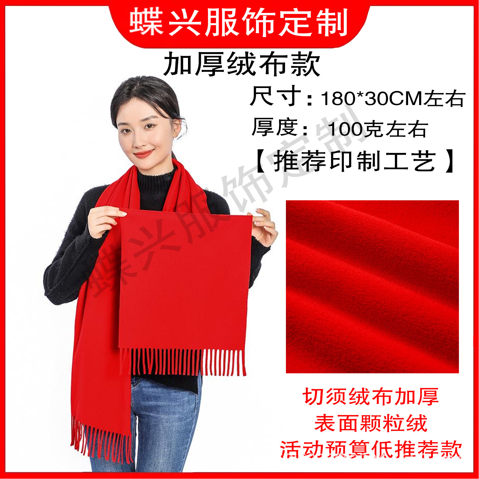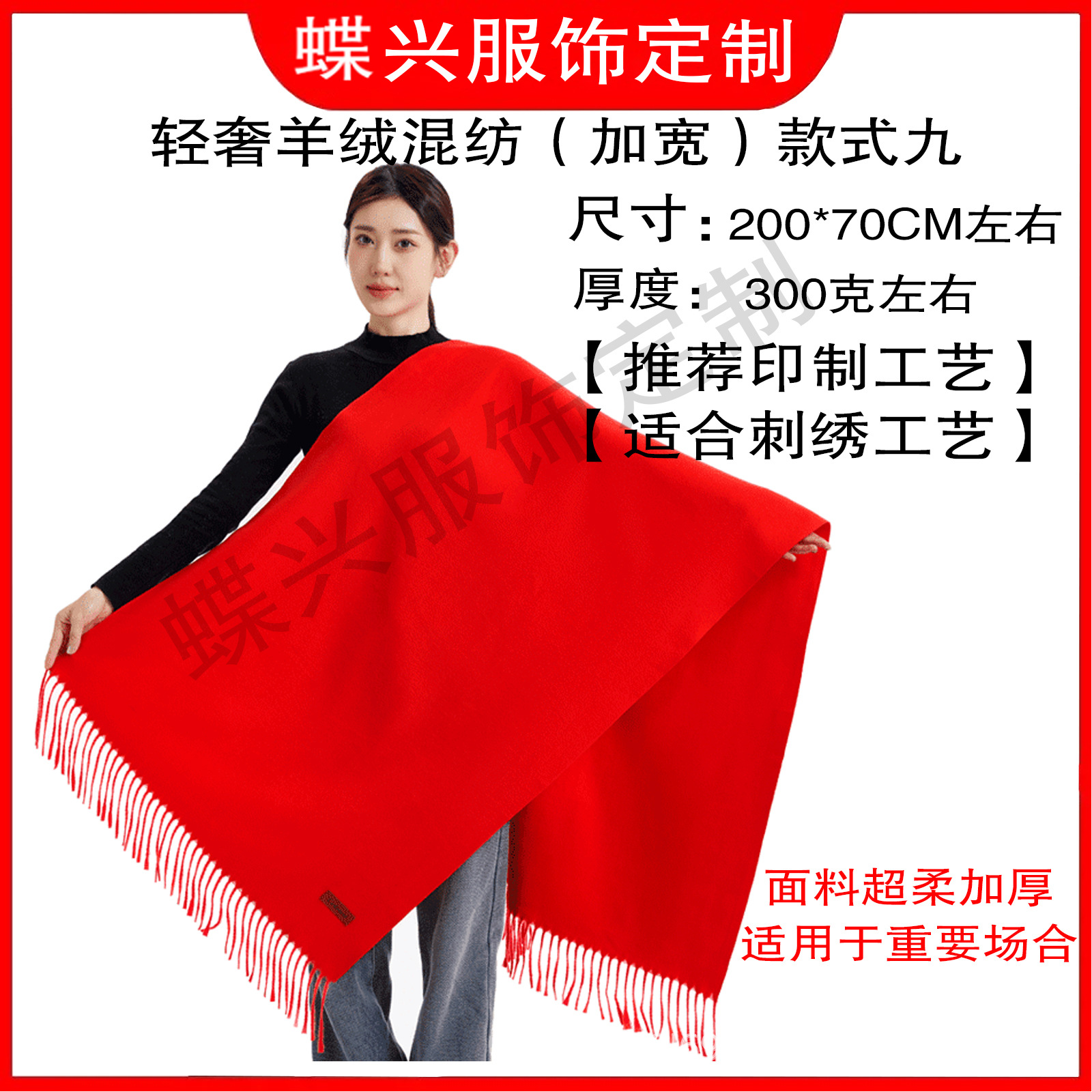 中国红围巾定制LOGO印字商务会议开业活动仿羊绒年会礼品围巾刺绣