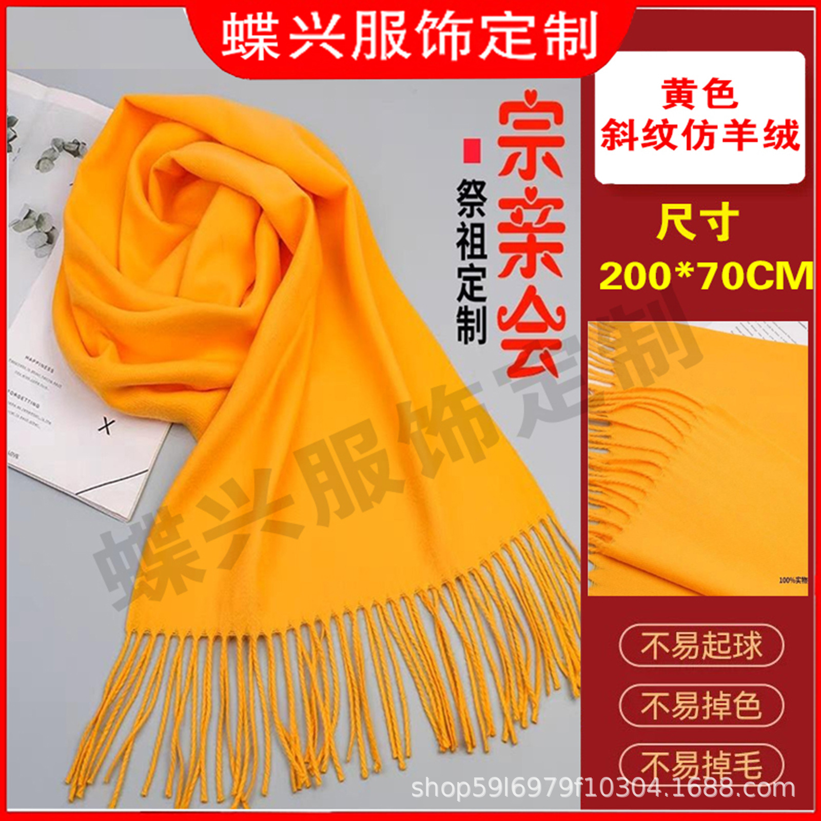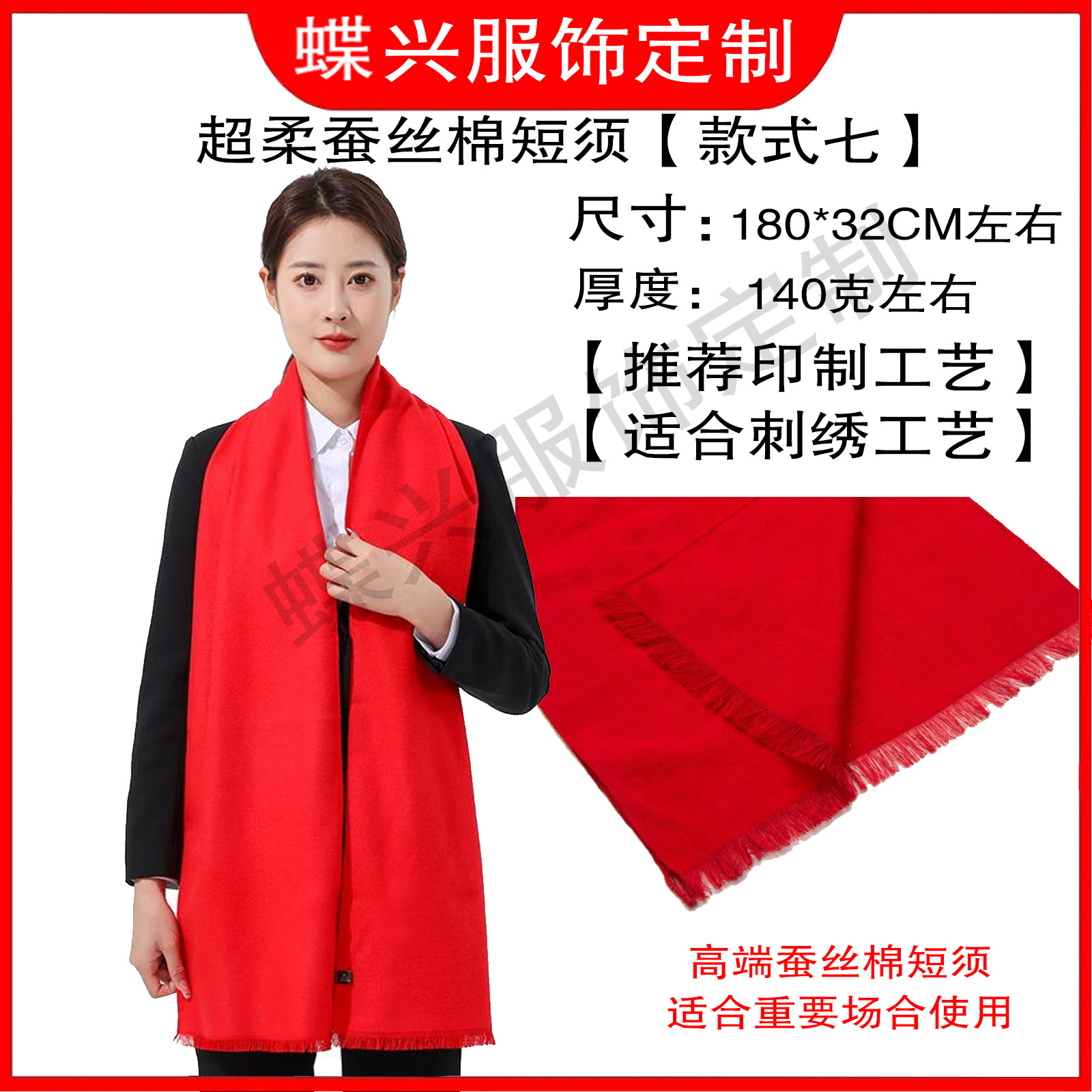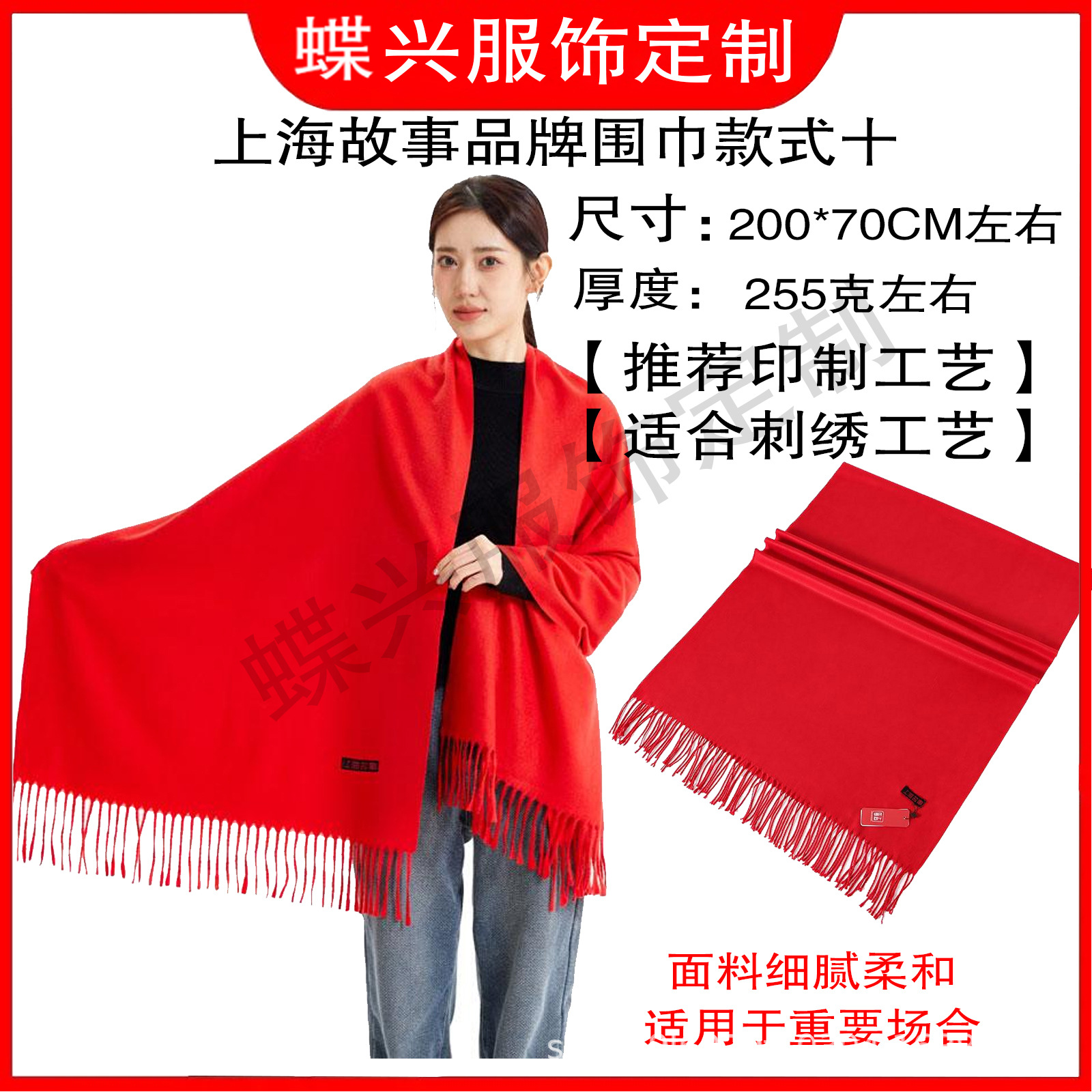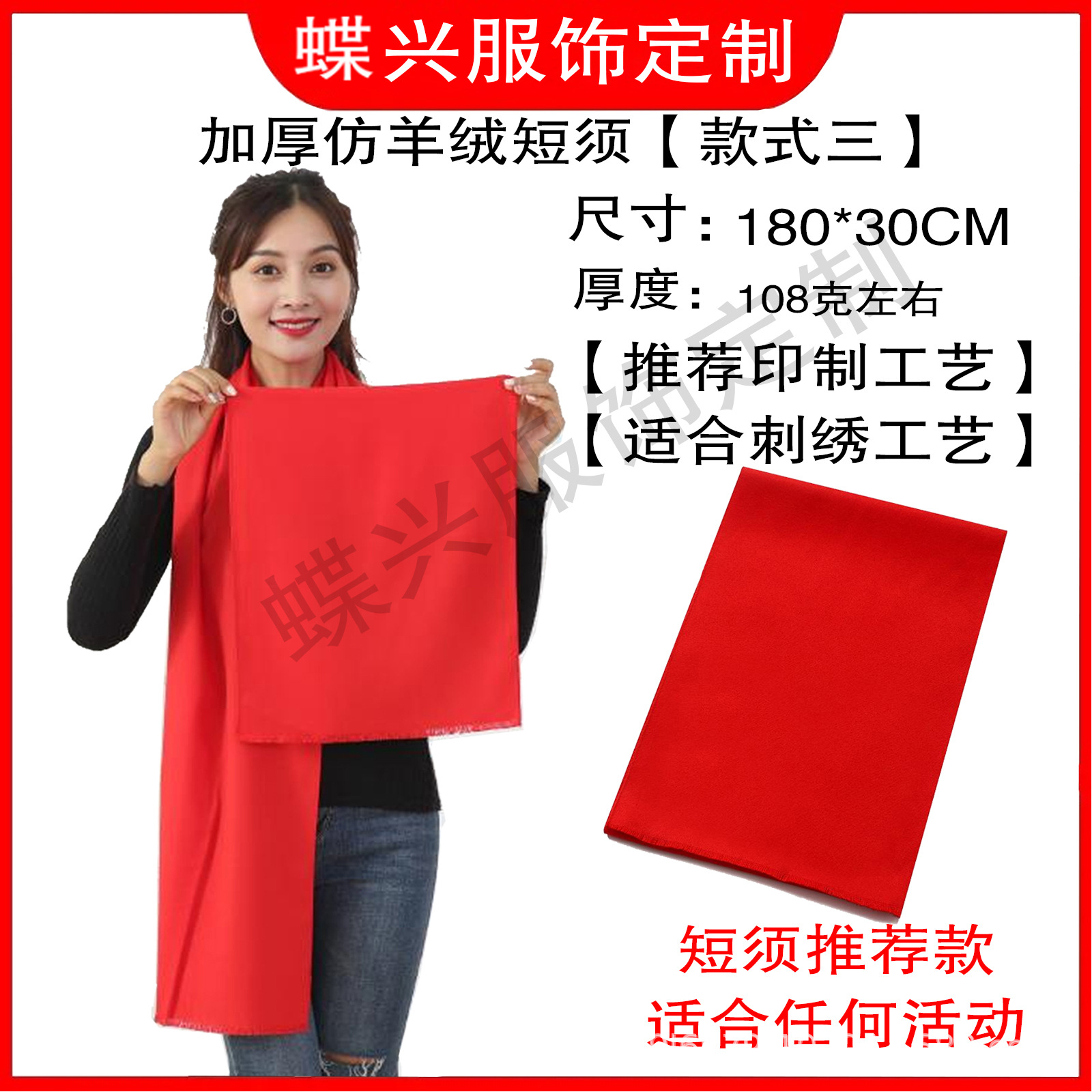 中国红围巾定制LOGO印字商务会议开业活动仿羊绒年会礼品围巾刺绣
