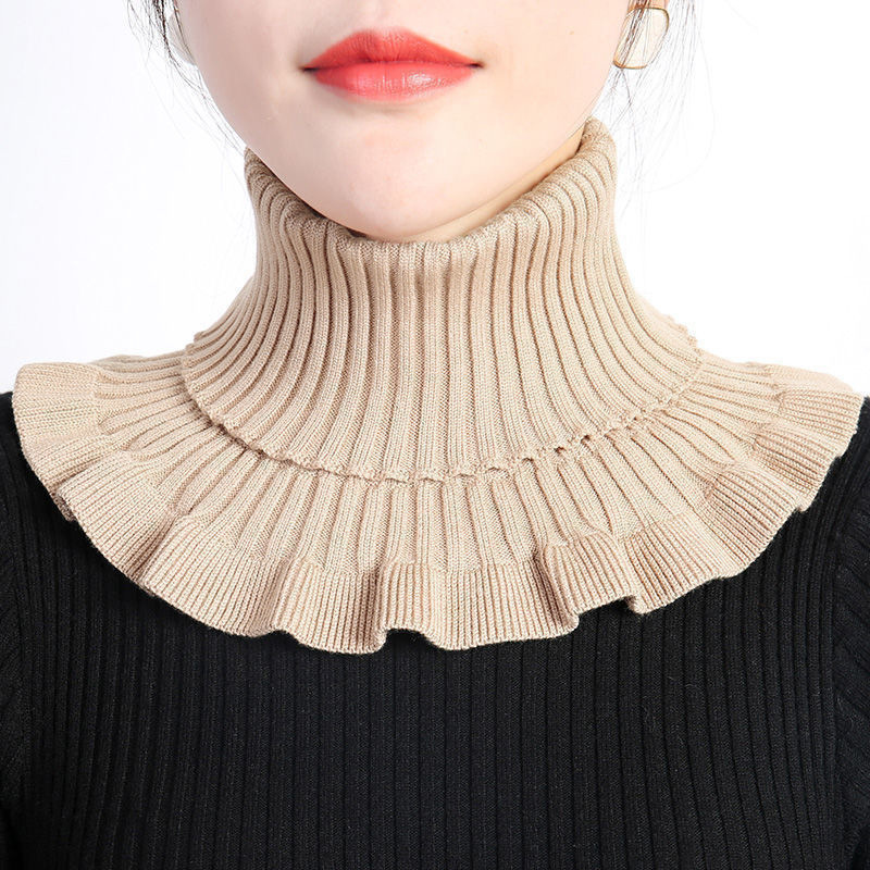 韩版纯色针织小围巾女秋冬交叉蝴蝶结百搭装饰毛线围脖假领子围脖