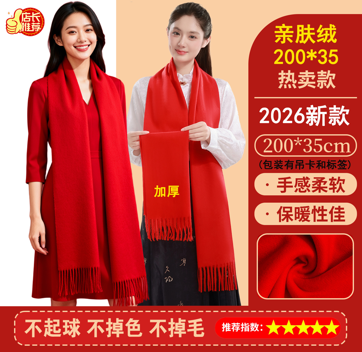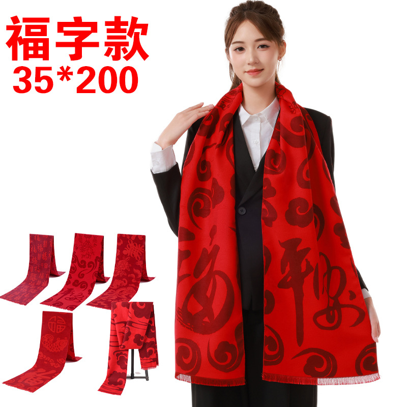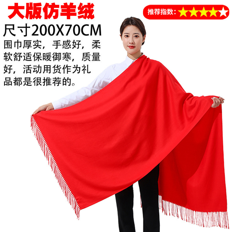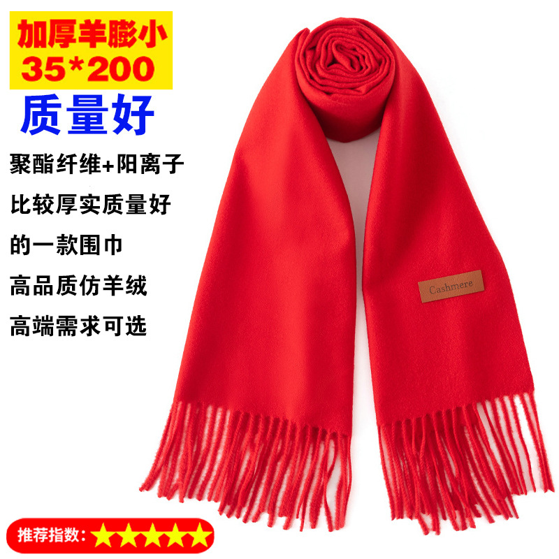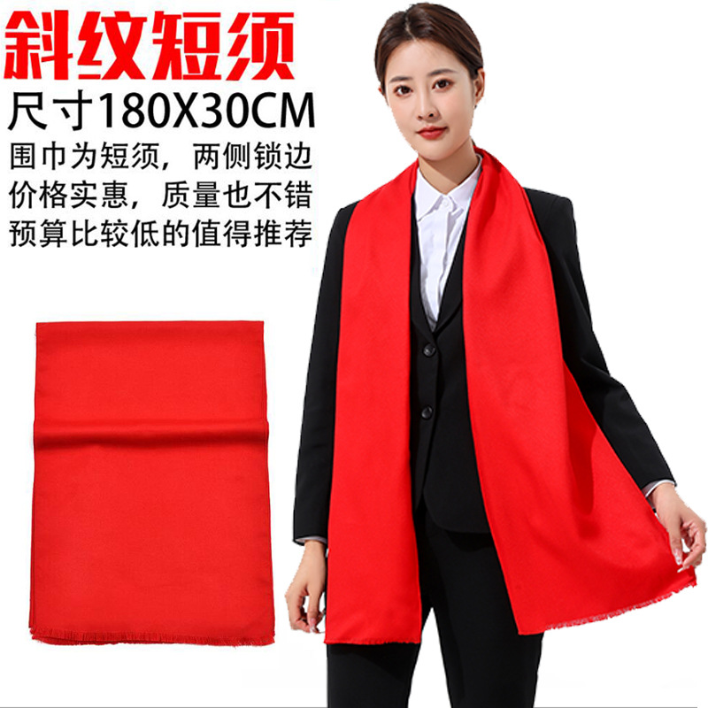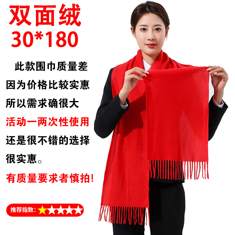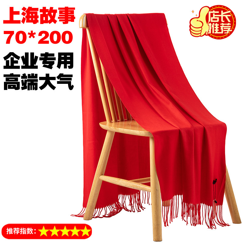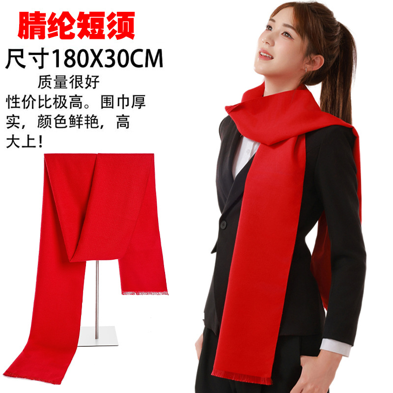 年会围巾定制印logo刺绣批发中国红公司同学聚会活动大红色红围巾